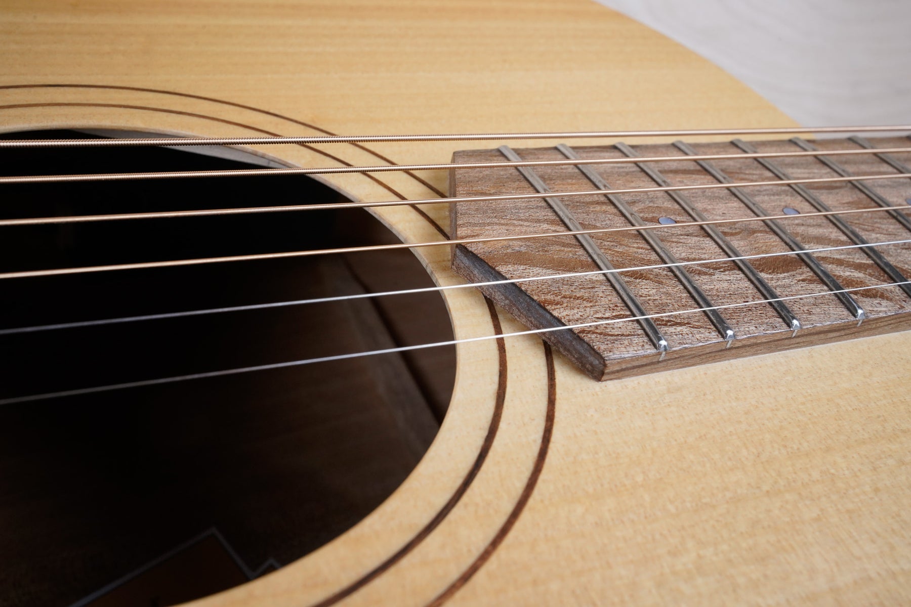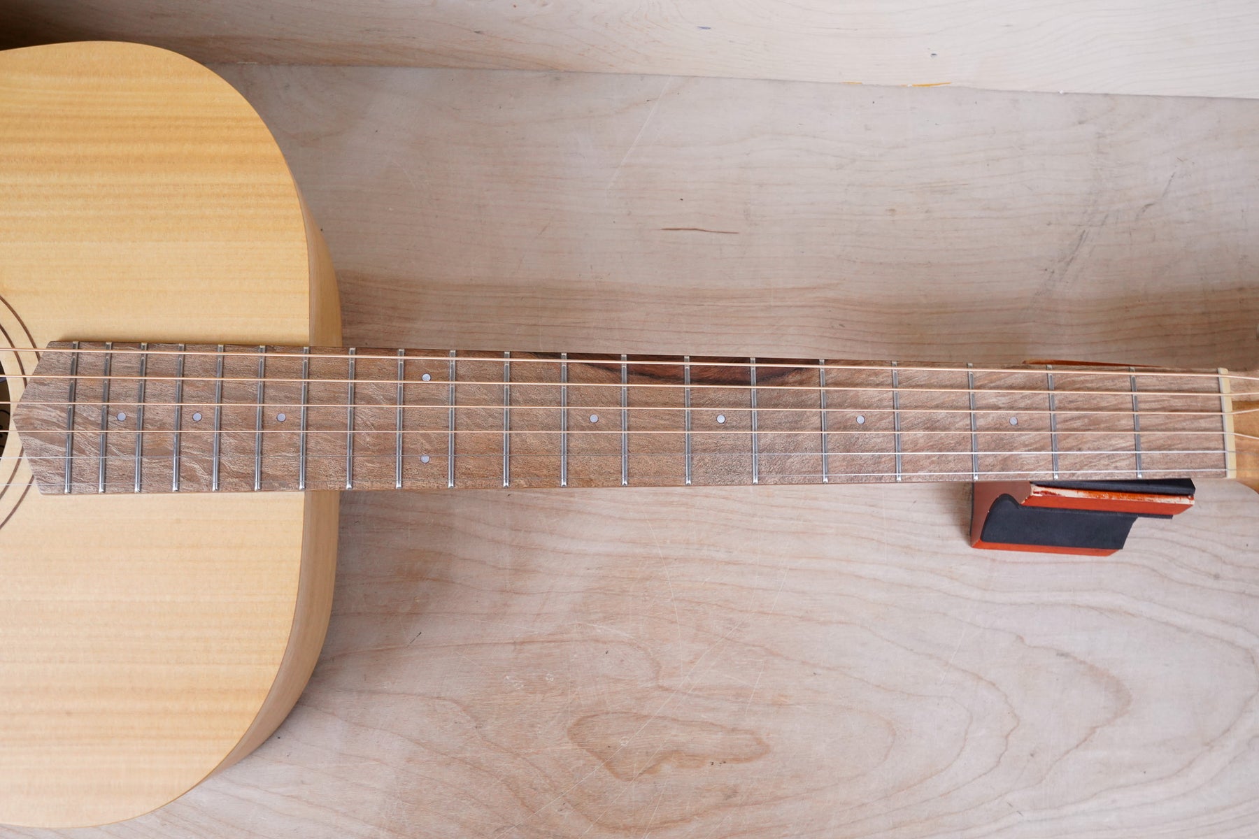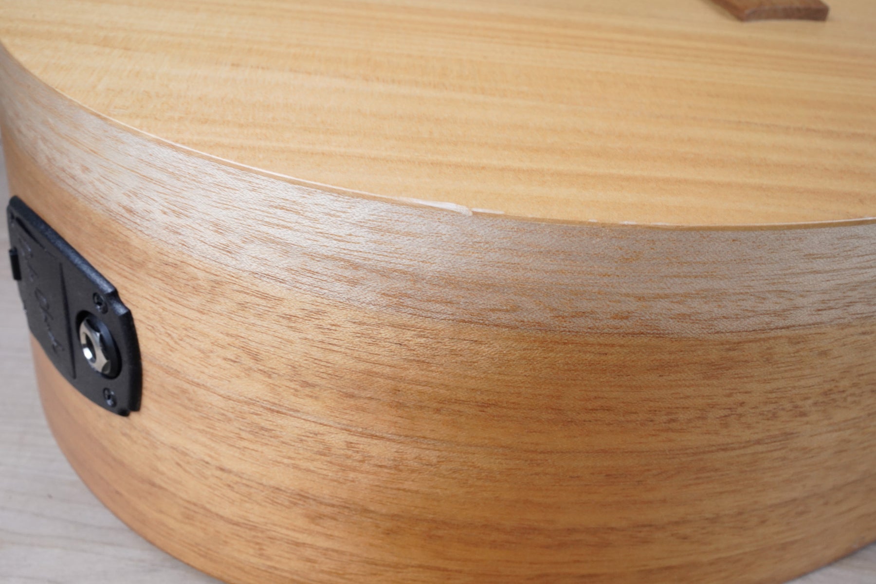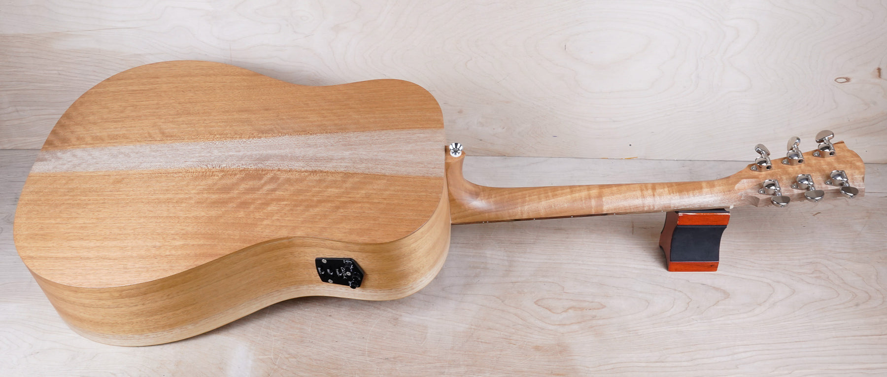 This Cole Clark CCFL1EC acoustic guitar is a very unique instrument and is made entirely from sustainably sourced timbers in Australia. The tone woods include a bunya top, Queensland maple neck, back, and sides, and a she oak fretboard. The electronics include the Cole Clark PG3 pickup system. The guitar plays great and has rich low end.