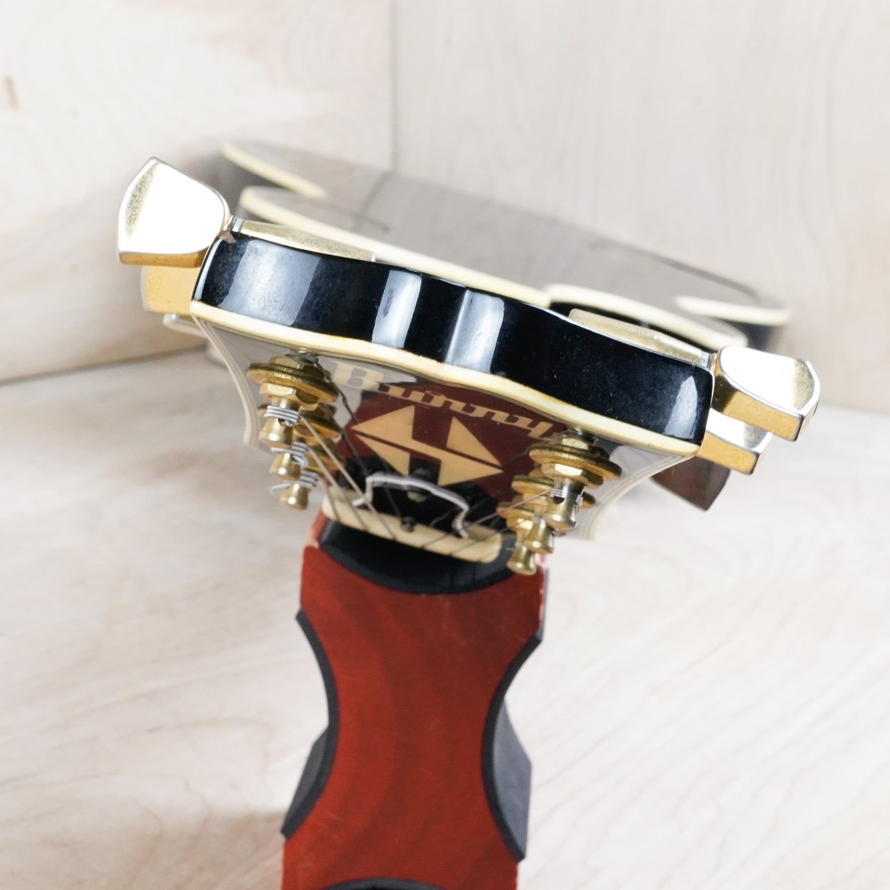 This Burny RLC-65 plays and sounds great! This is a great example of a Japanese replica '60s style Les Paul Custom. Burny guitars are notoriously difficult to date, but this one is likely from around 1990 based on the VH-1 pickups and info found in the Burny catalogs.