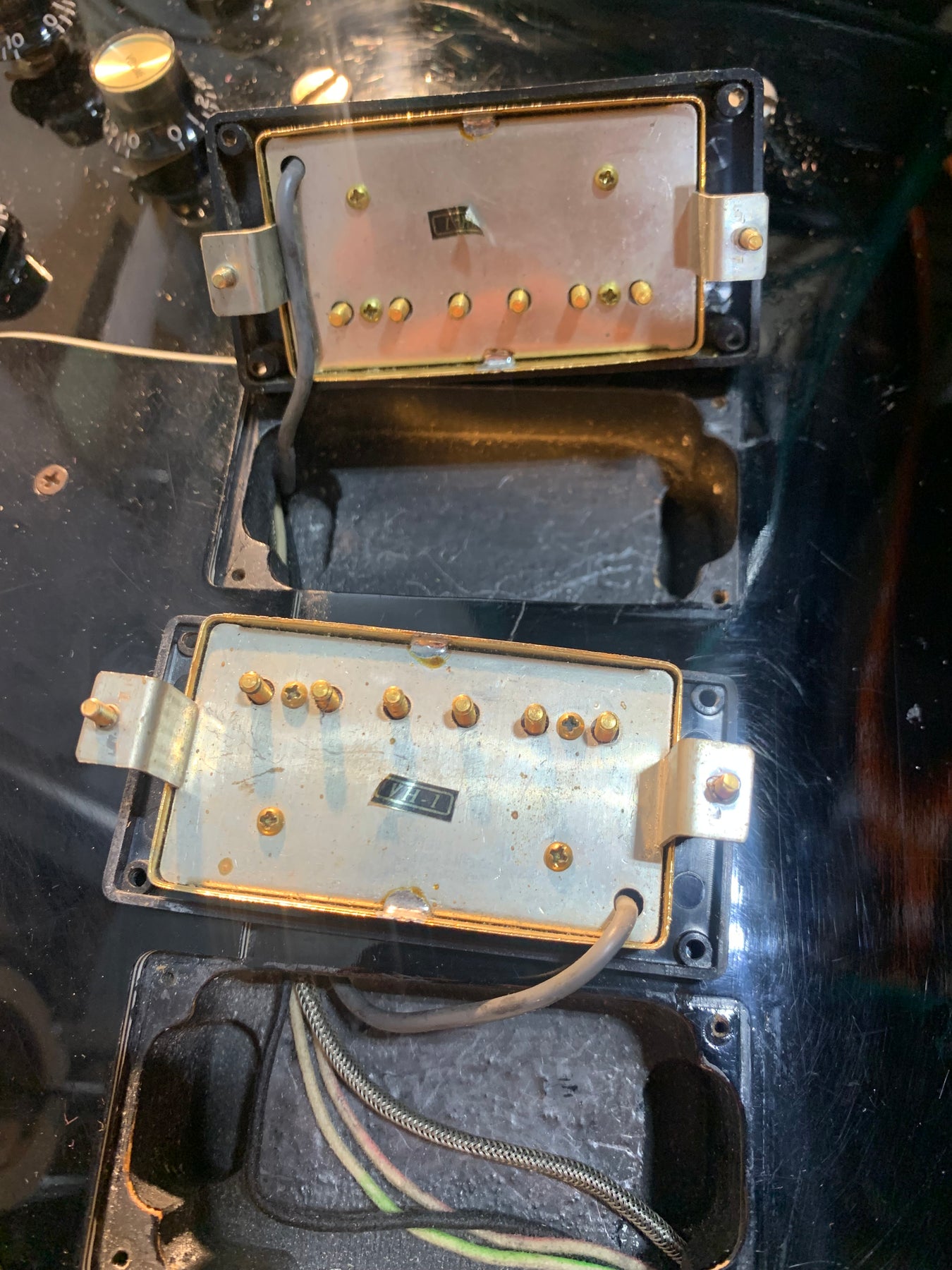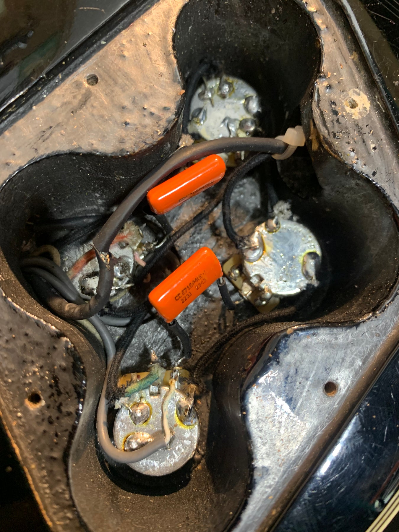 The truss rod cover and capacitors inside the electronics have been replaced. This guitar otherwise appears to be original.
