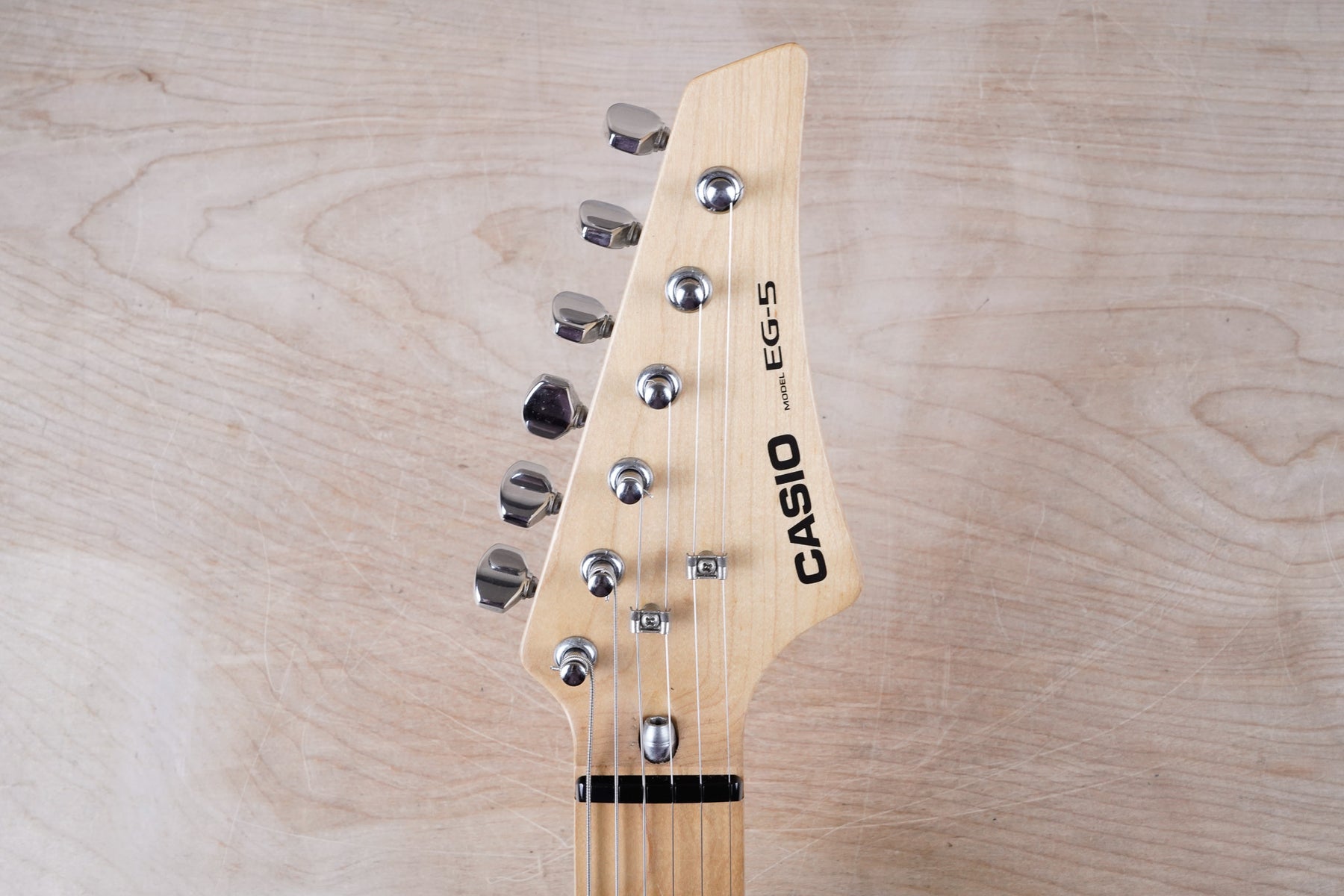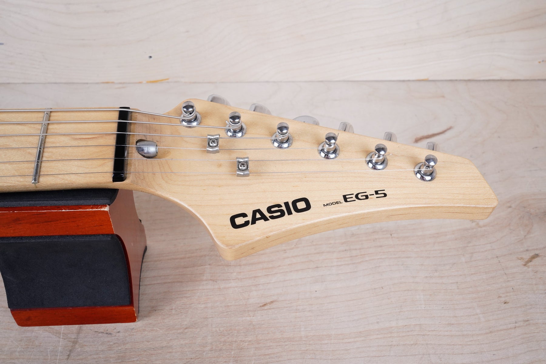 This is a very rare and hard to find 1980s Casio EG-5 with an onboard cassette deck and amplifier. The guitar is very fun to play and the cassette deck feature is great for those who enjoying playing along with a track.