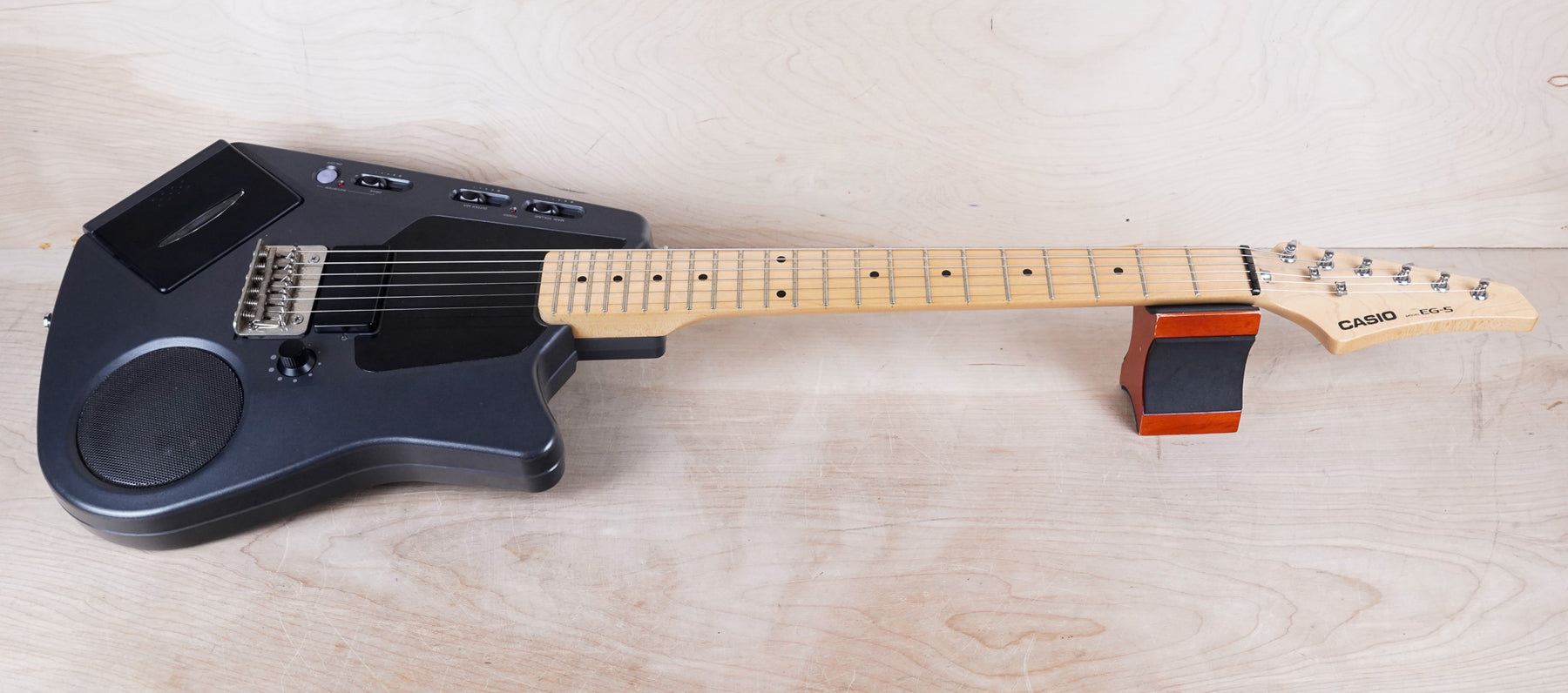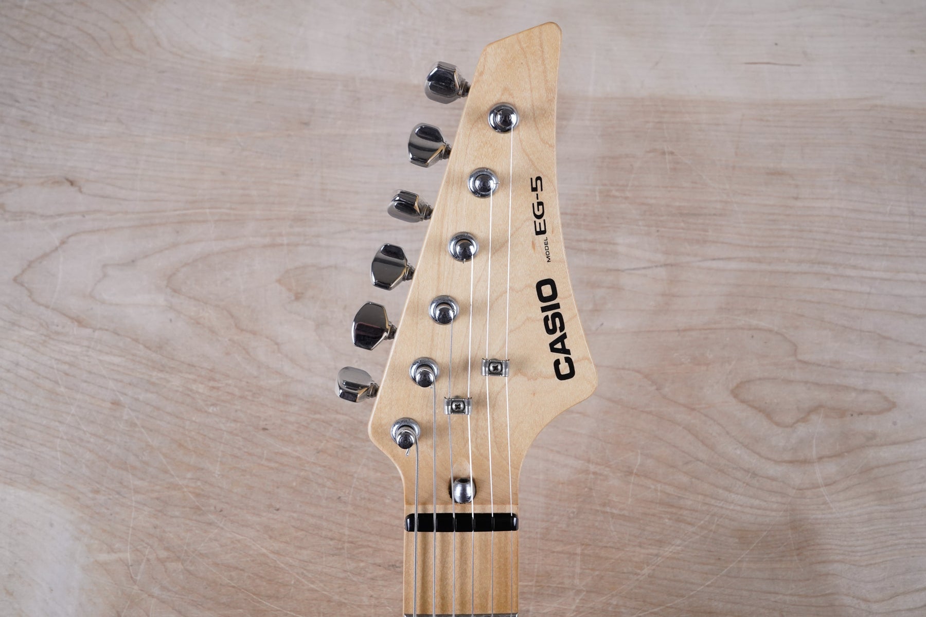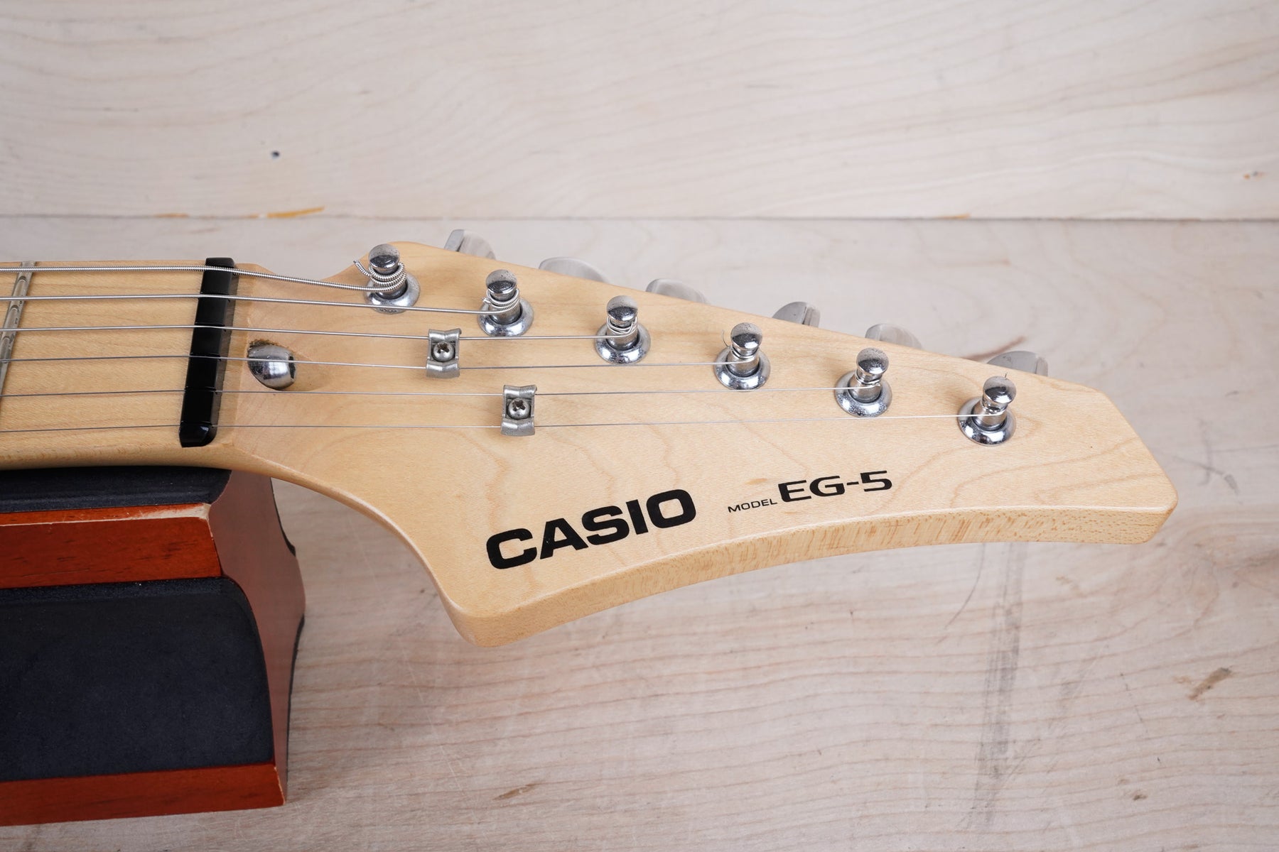 This is a very rare and hard to find 1980s Casio EG-5 with an onboard cassette deck and amplifier. The guitar is very fun to play and the cassette deck feature is great for those who enjoying playing along with a track.