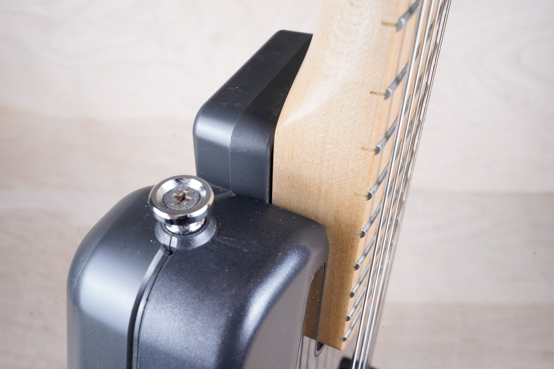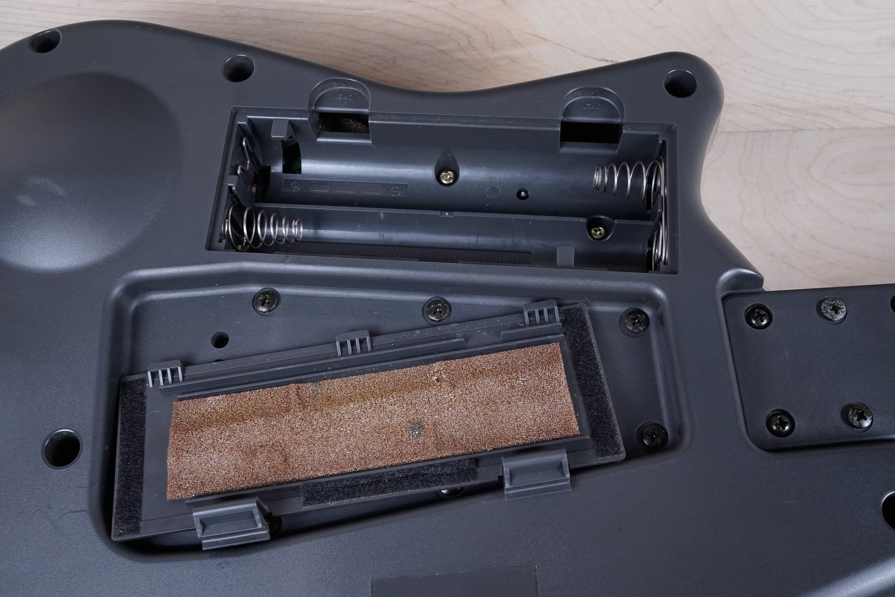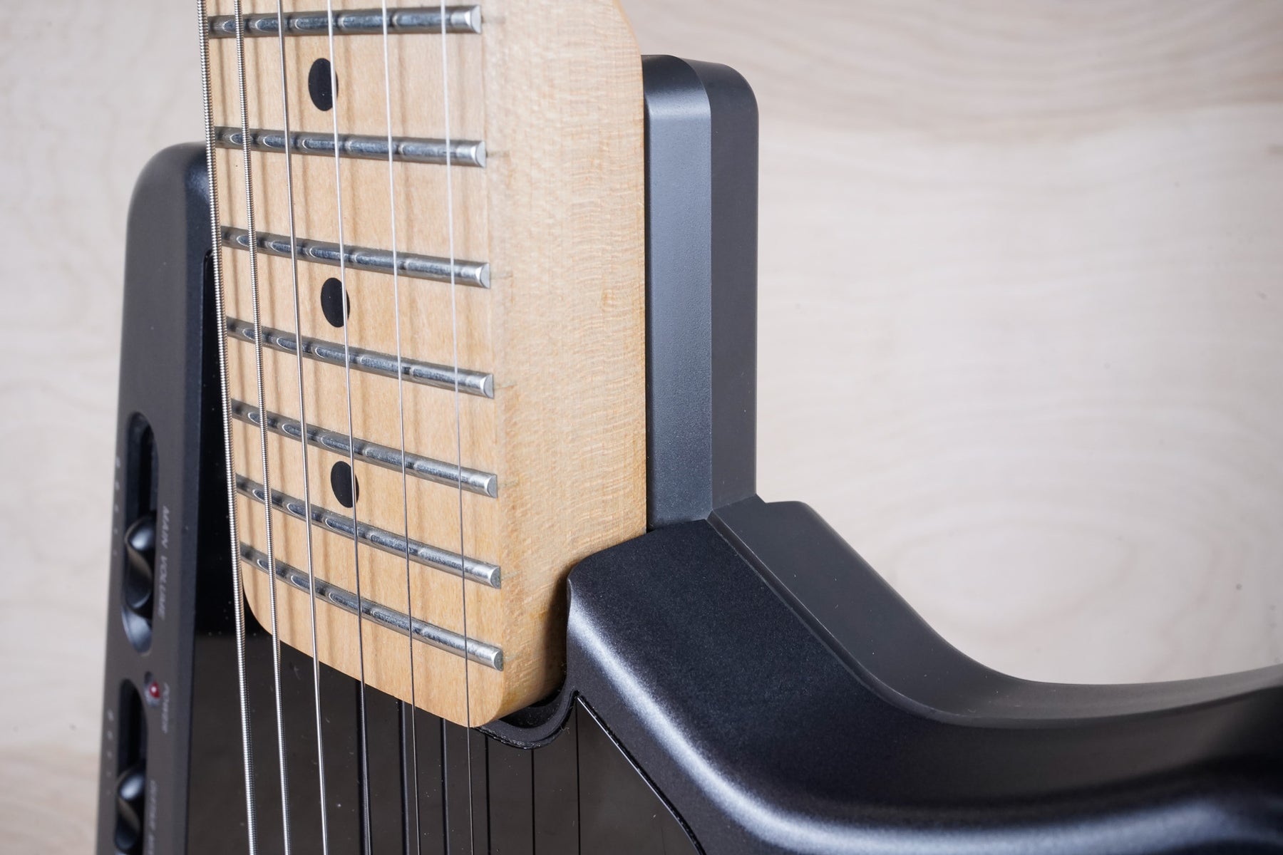 This guitar does show some cosmetic wear from over the years that includes various surface scratches throughout the body with minor dings along the back of the neck and headstock. The hardware, particularly the bridge, shows quite a bit of tarnish and oxidation from over time. The frets appear to still be in nice shape and the guitar runs perfectly on batteries. The power supply looses power when moving it but powers back up.