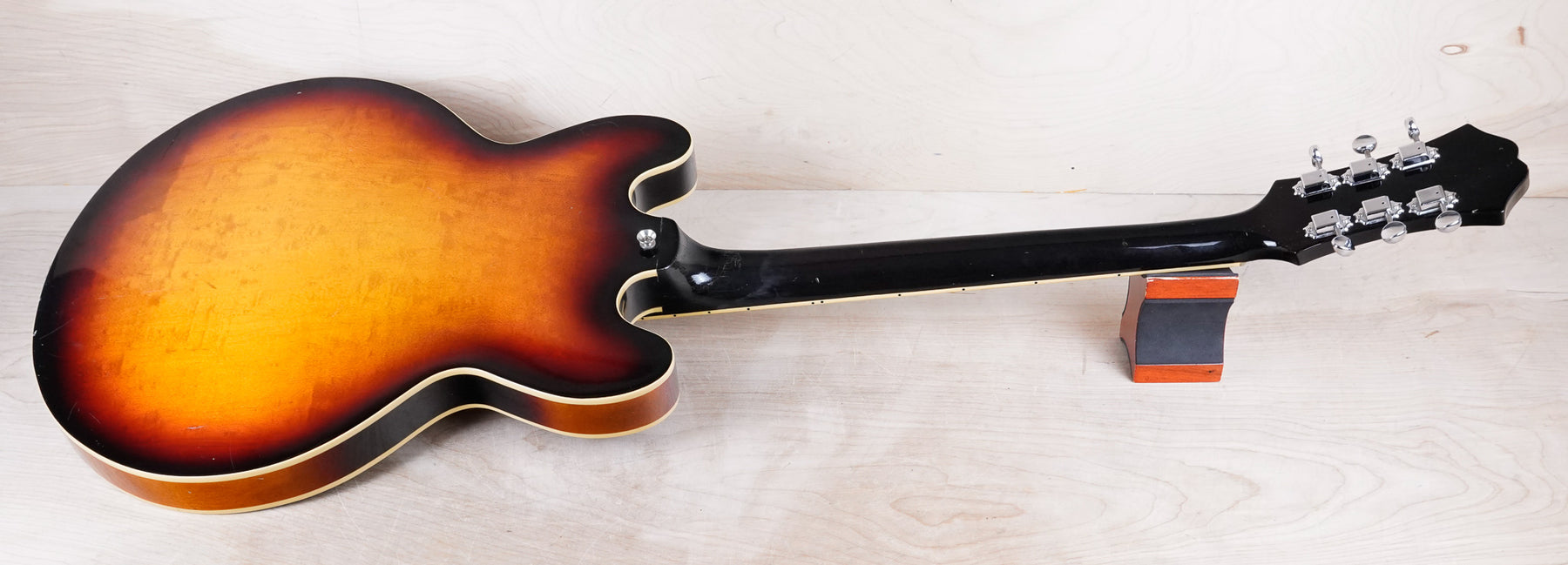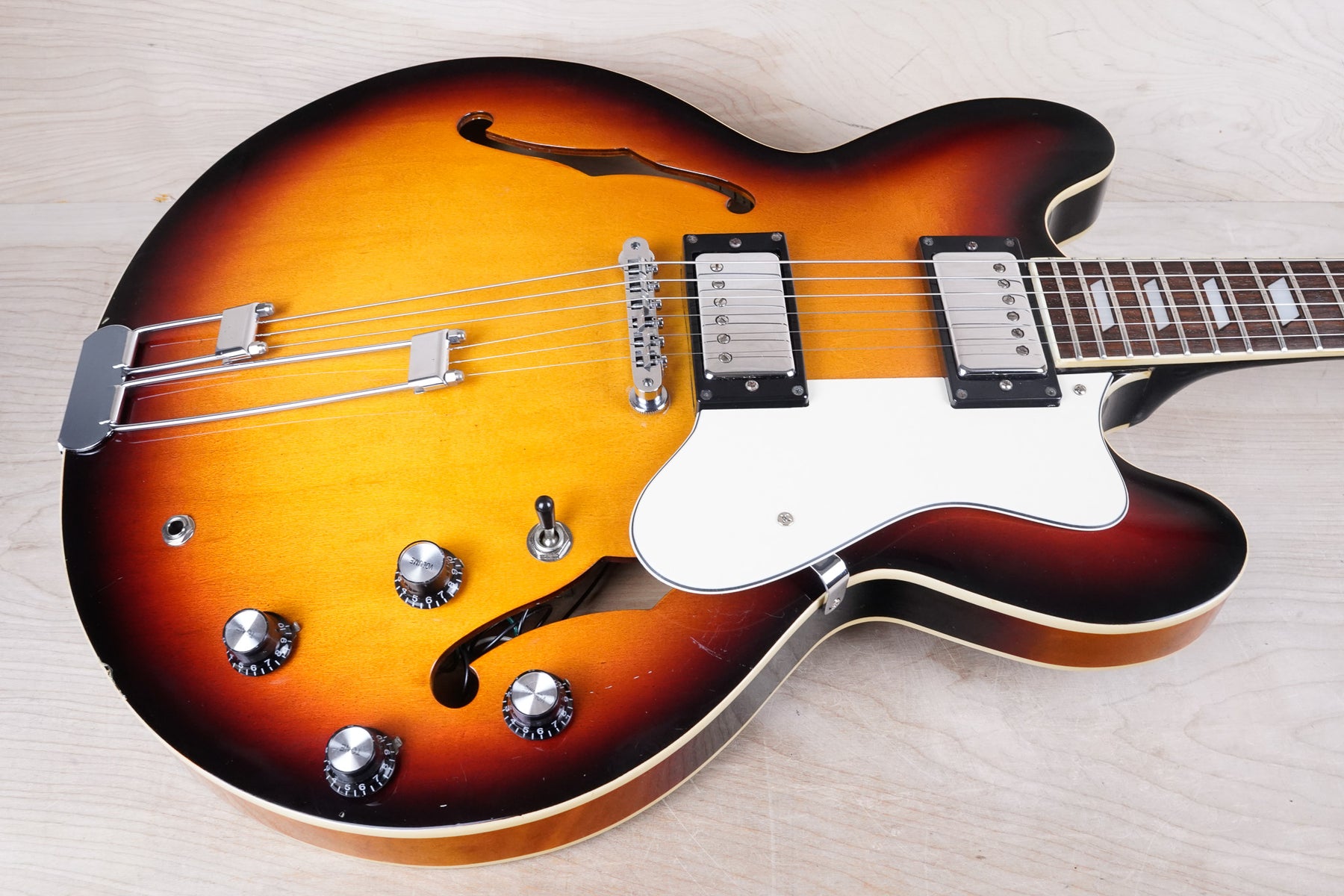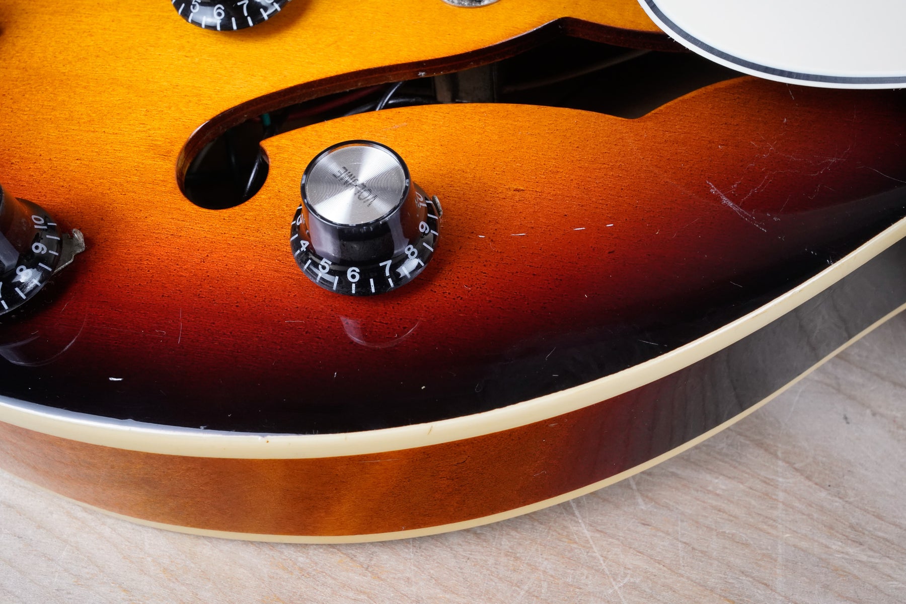 This guitar does show quite a bit of cosmetic wear from over the years that includes various surface scratches, scuffs, and dents throughout the body. There's also particularly quite a bit of wear along the neck joint and additional dings on the headstock. The binding has yellowed from over time and the hardware has normal tarnishing. The frets are used but still play well overall and the electronics work as they should.