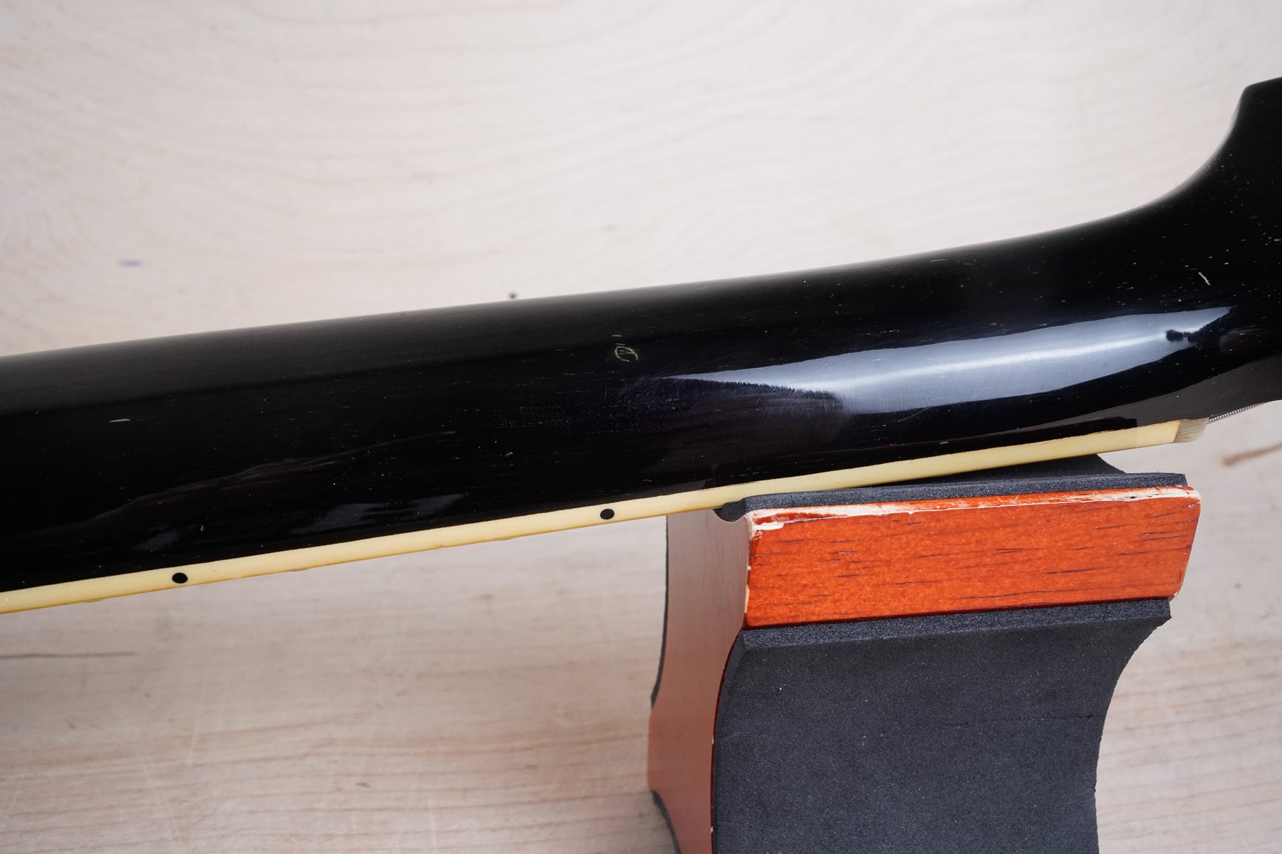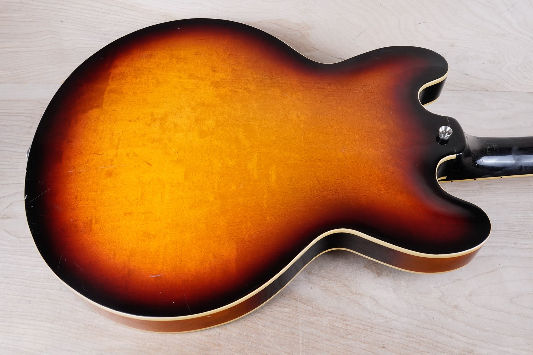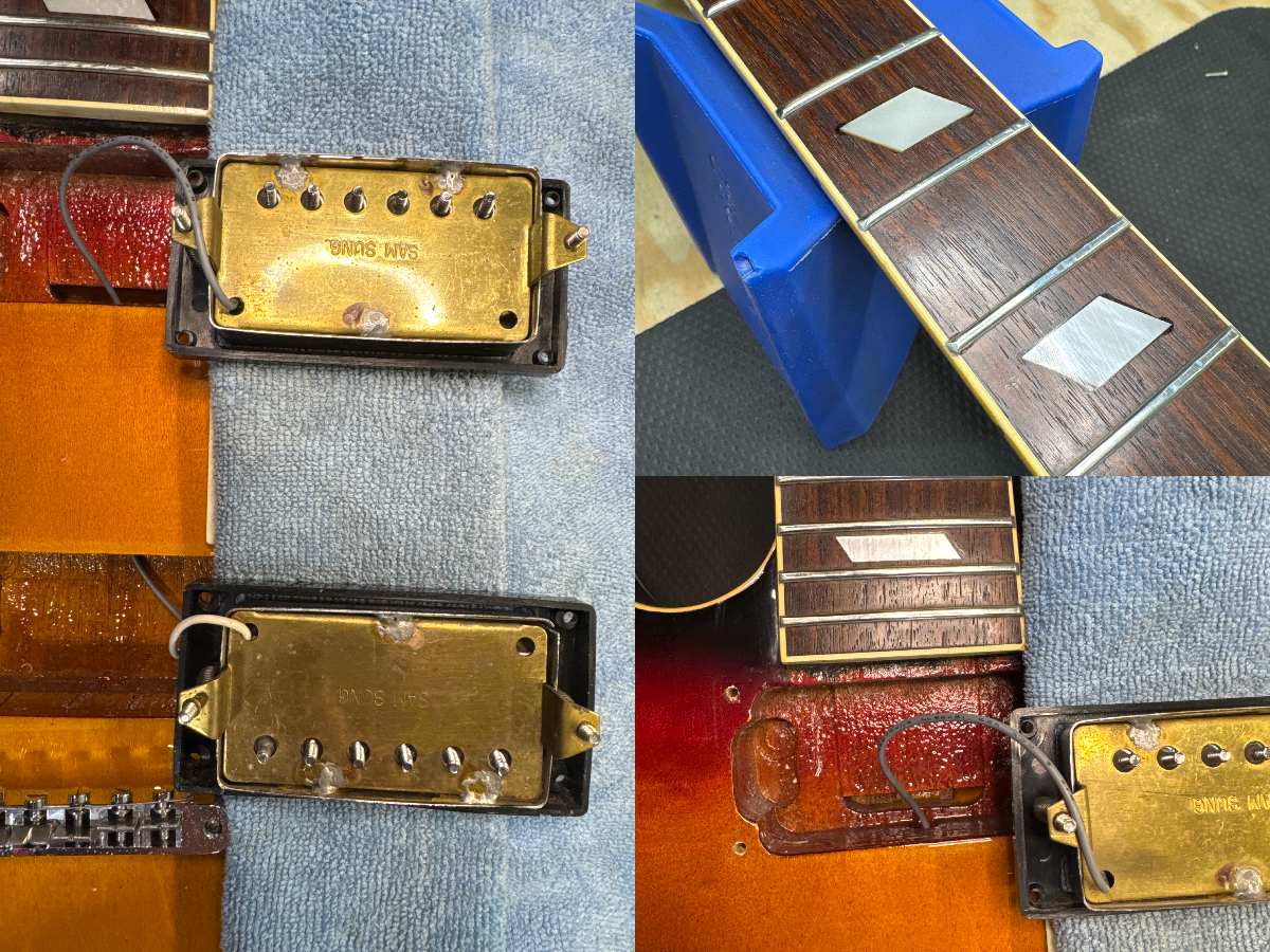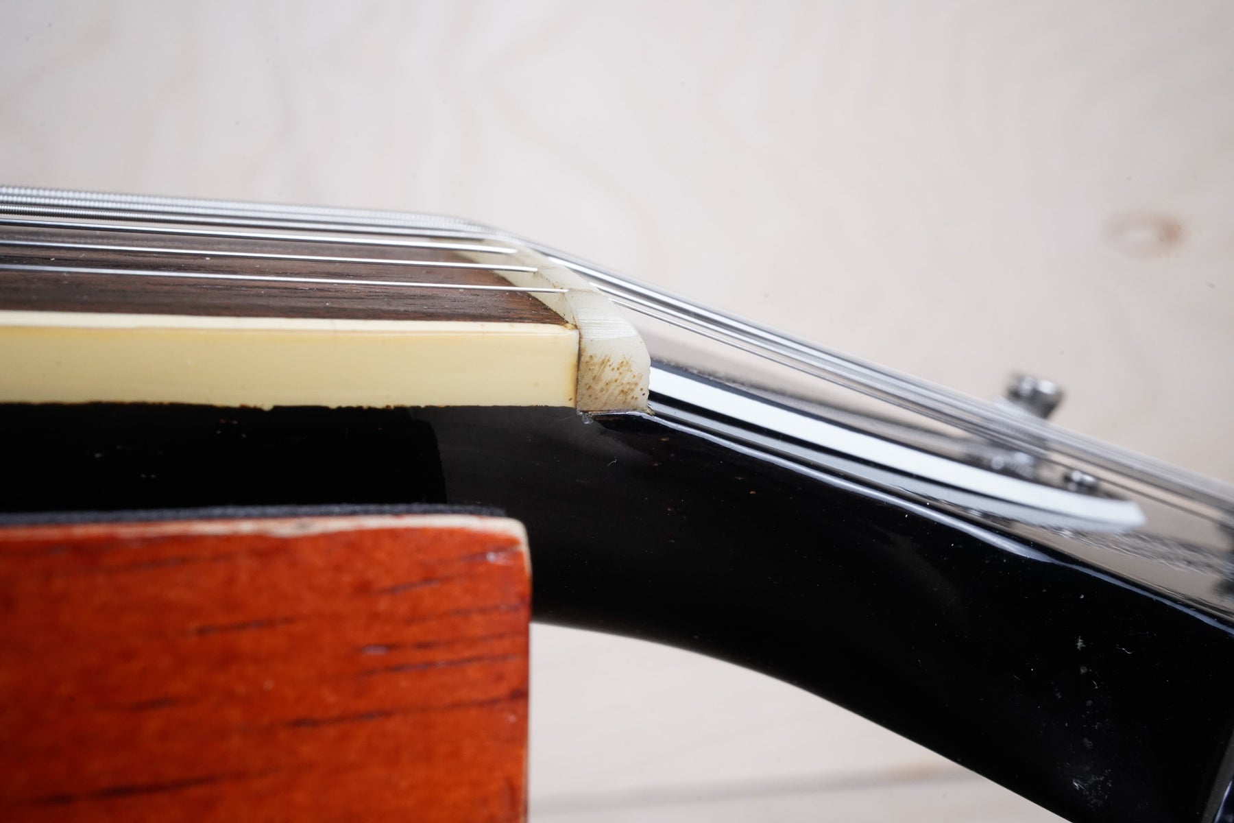 This guitar does show quite a bit of cosmetic wear from over the years that includes various surface scratches, scuffs, and dents throughout the body. There's also particularly quite a bit of wear along the neck joint and additional dings on the headstock. The binding has yellowed from over time and the hardware has normal tarnishing. The frets are used but still play well overall and the electronics work as they should.