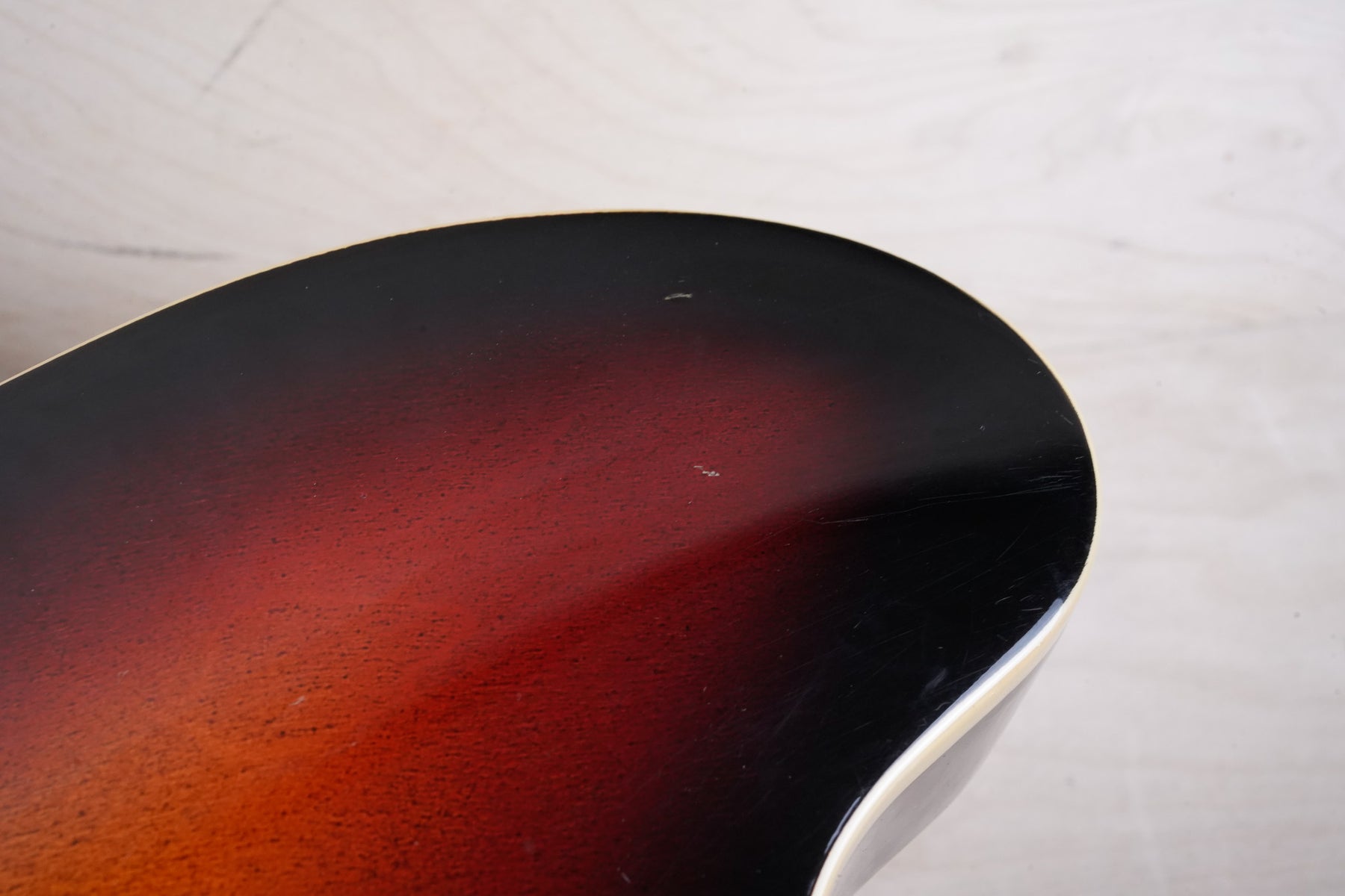 The truss rod cover, pickguard, and volume knobs are later replacements, otherwise this guitar is original.