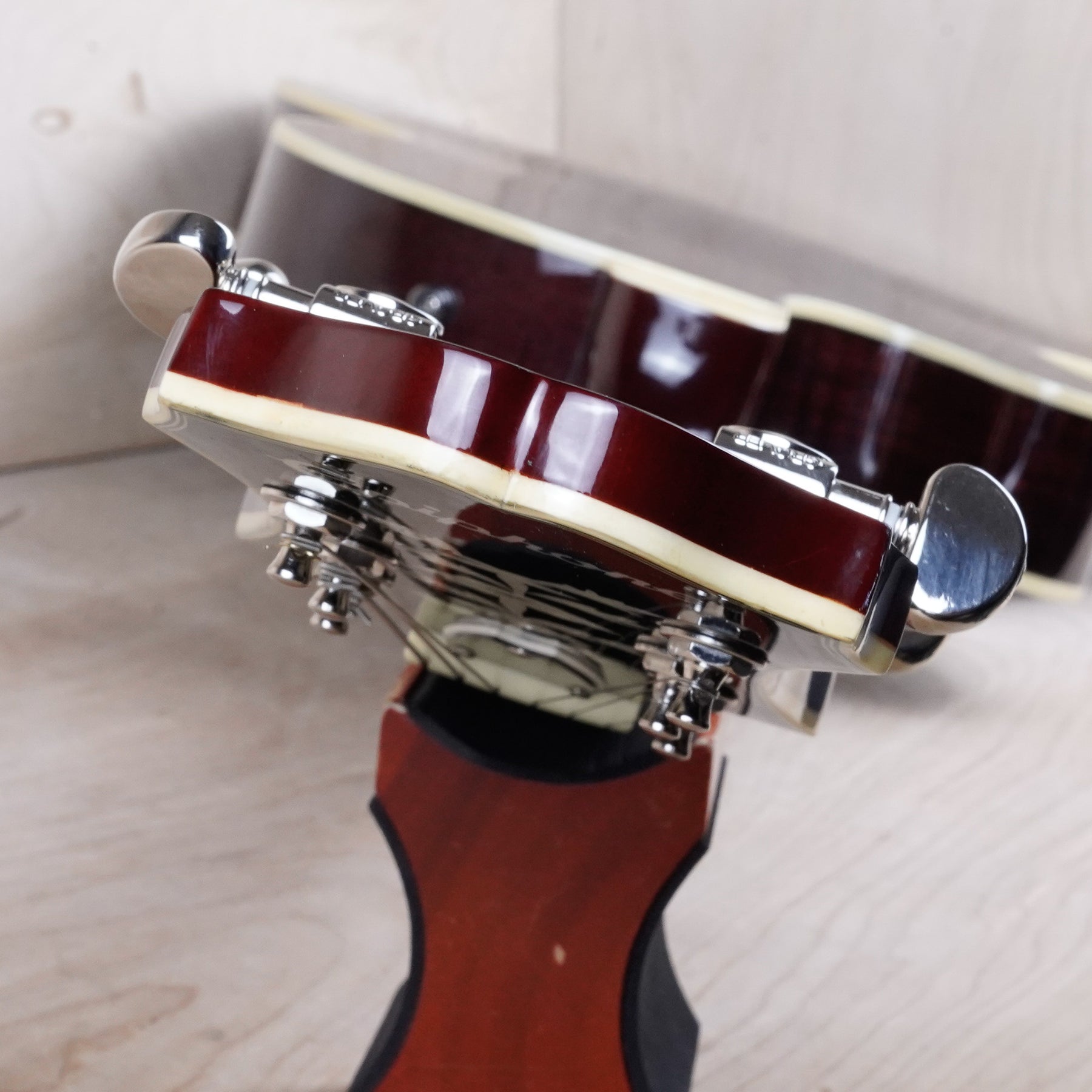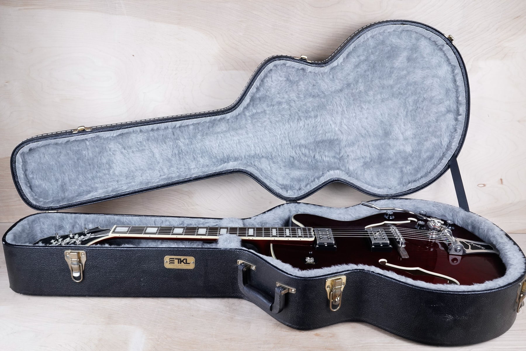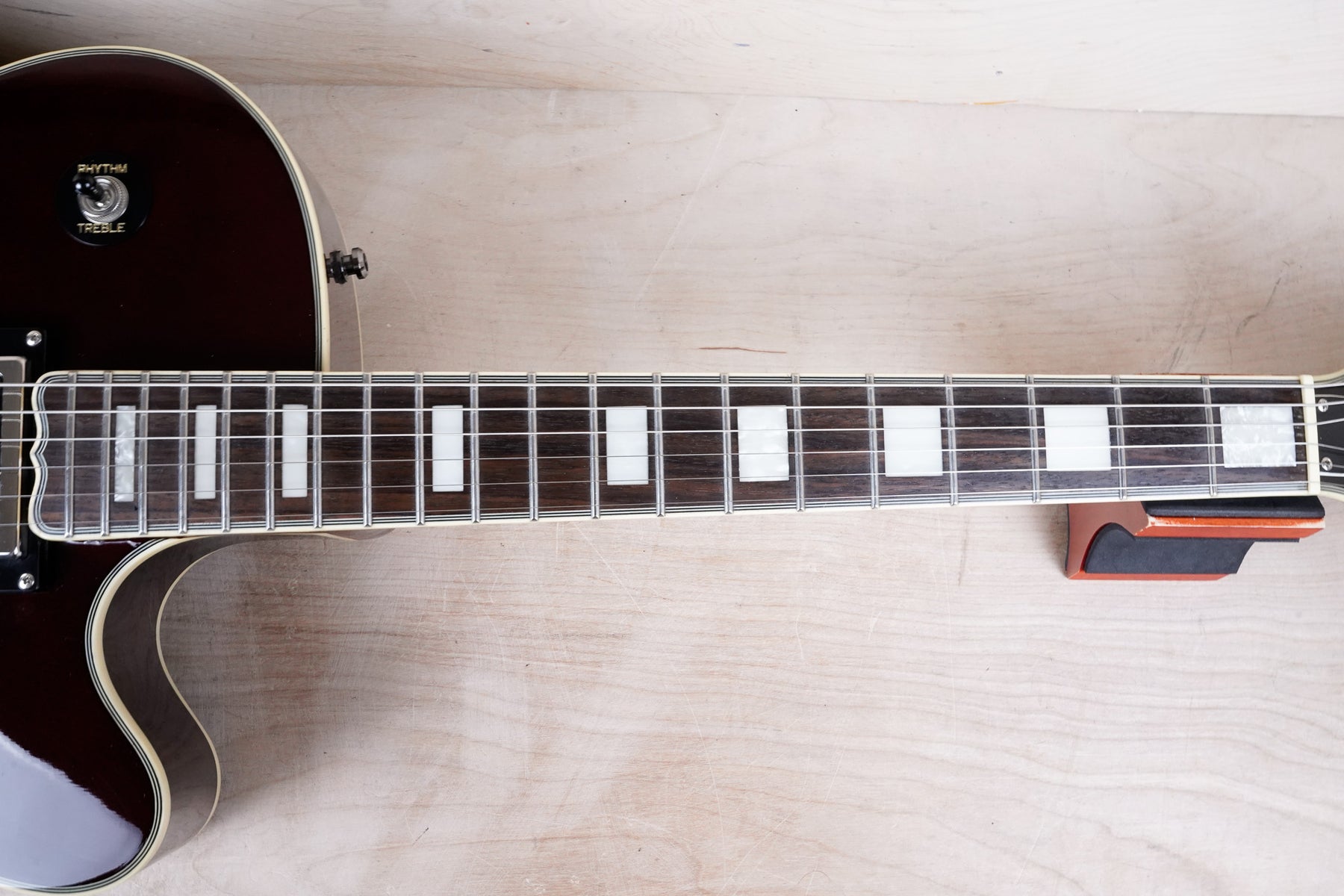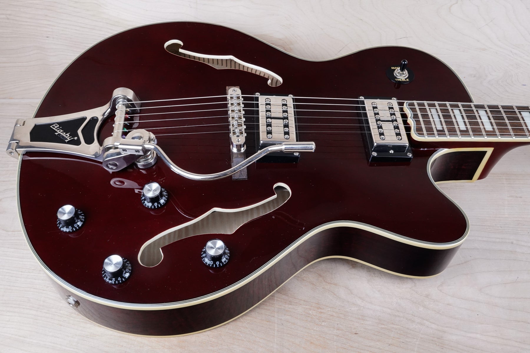 This guitar shows some minor cosmetic wear that includes light surface scratches and scuffs throughout the body from normal play. The frets play great and the electronics work as they should.