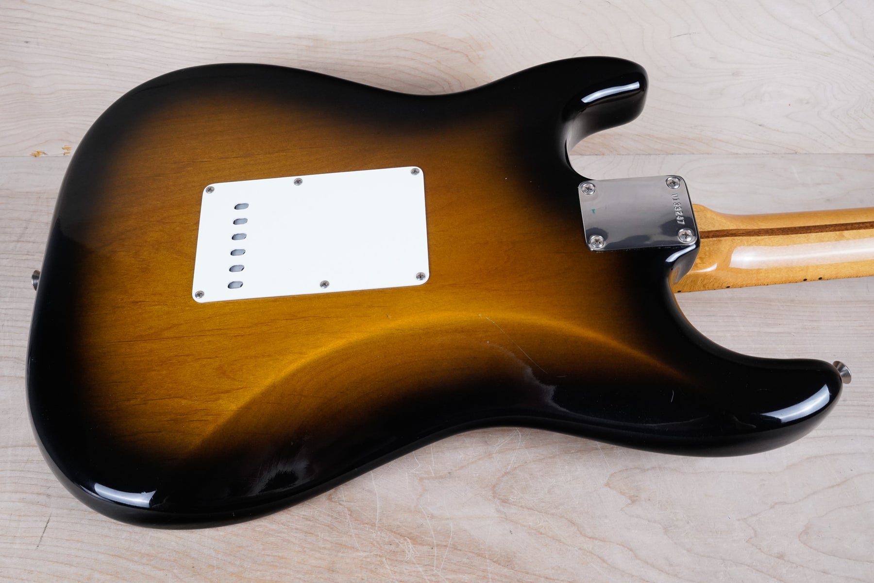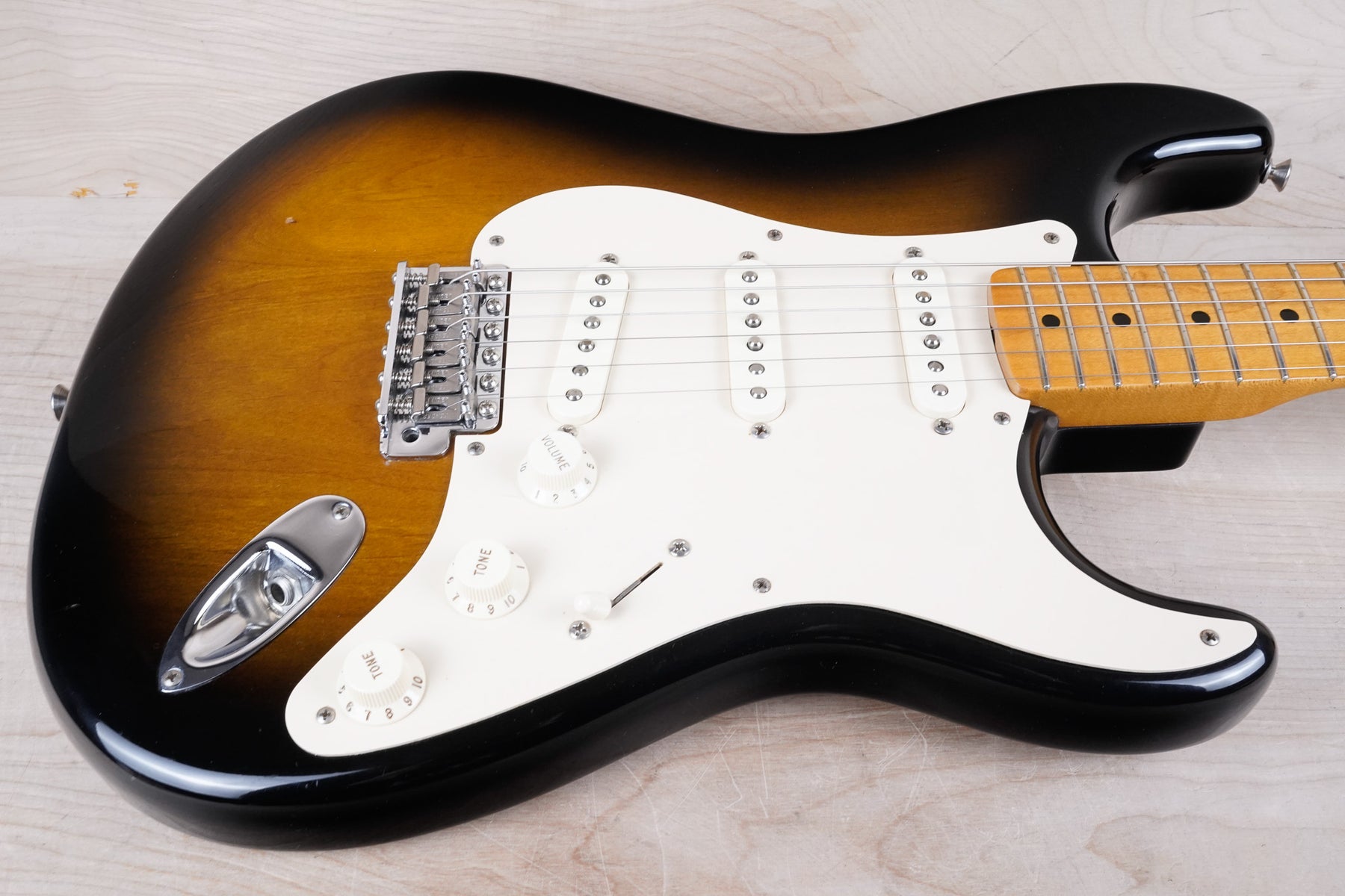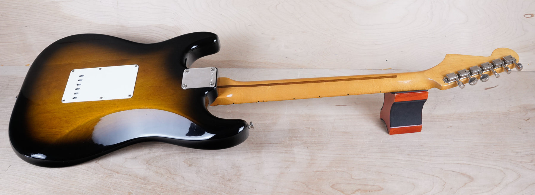 This Fender American Vintage '57 Stratocaster plays and sounds great! The guitar is comprised of an alder body, "C" shape maple neck, and maple fretboard. This one is a Yamano Music select, a Japanese distributor known for selecting quality instruments from the US for the Japanese market.