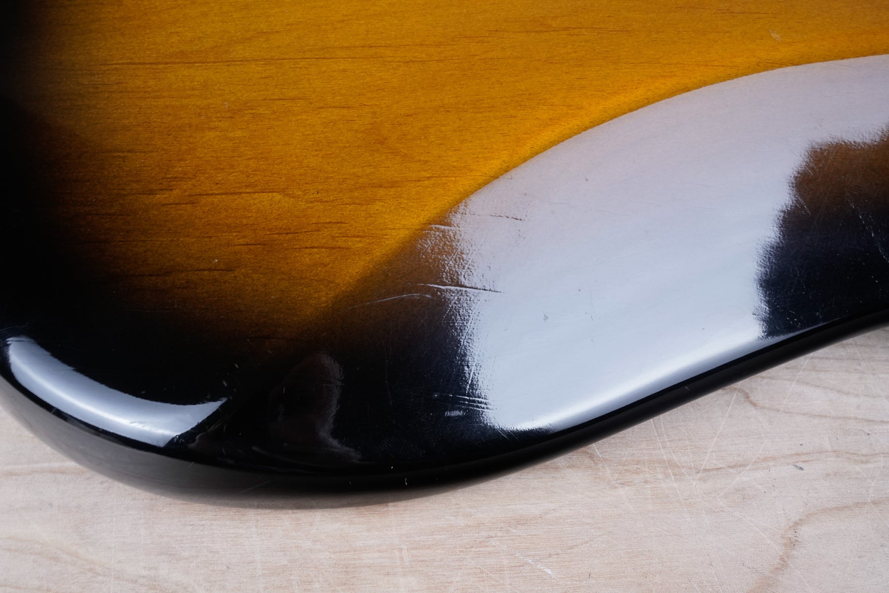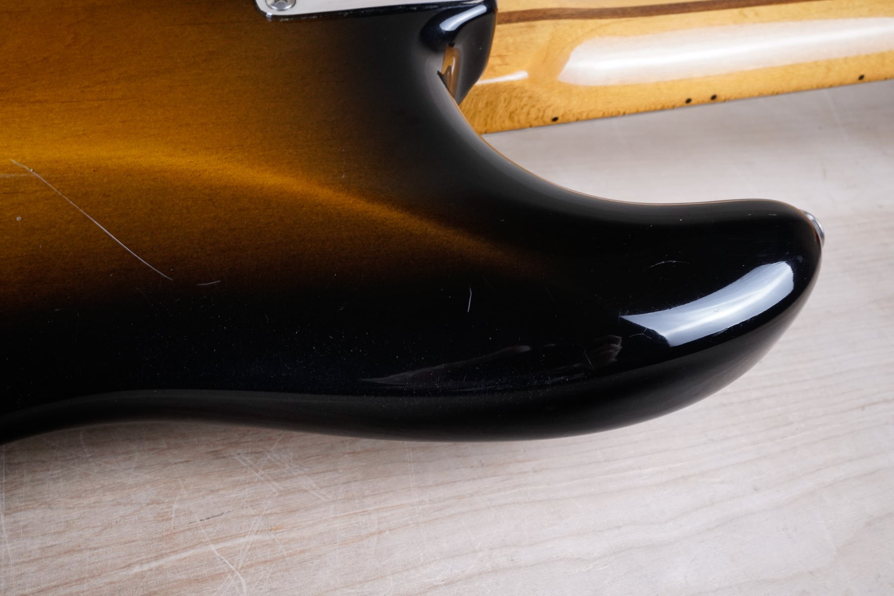 This guitar does show some minor cosmetic wear from over the years that includes various surface scratches, scuffs, and dents throughout the body with additional small dings along the back of the neck and headstock. The pickguard and plastics show some aging from over time and the hardware has normal light tarnishing. The frets in nice shape and play great, exibiting only normal play wear, and the electronics work as they should.