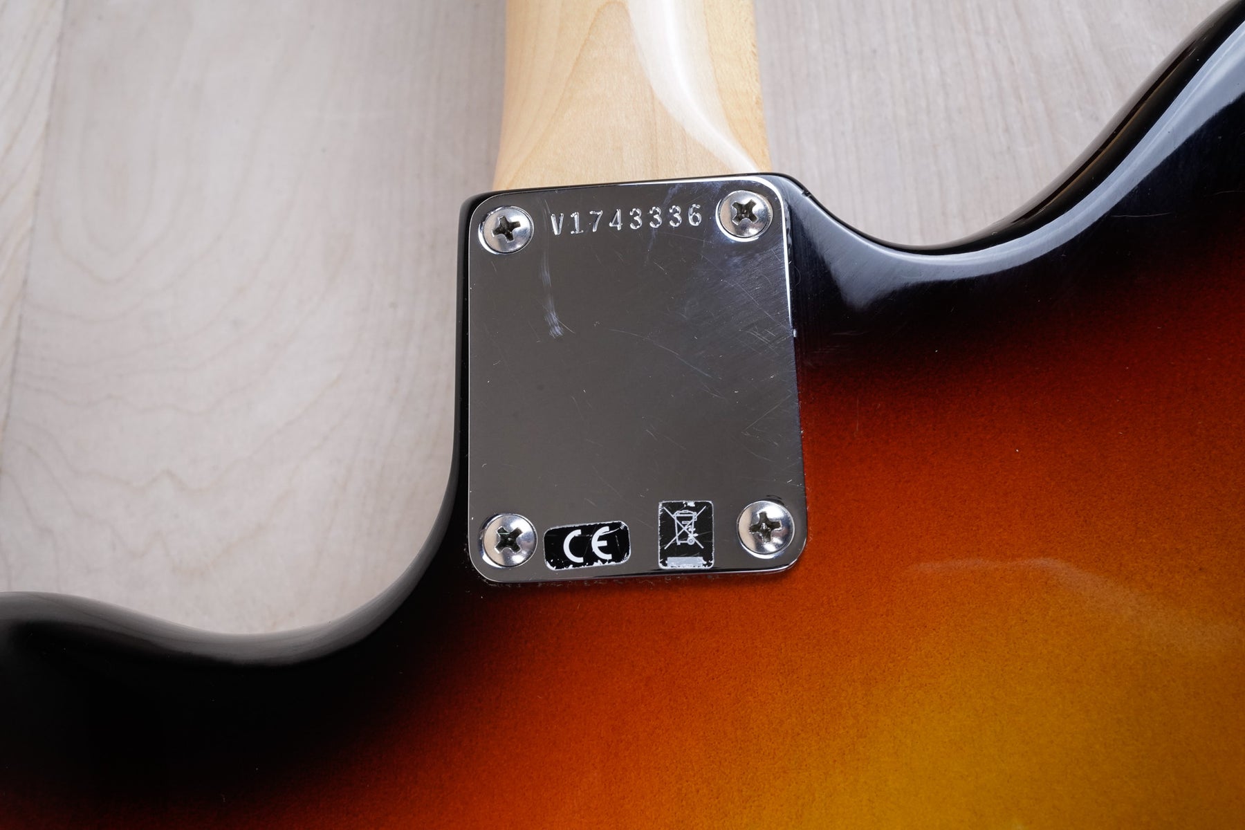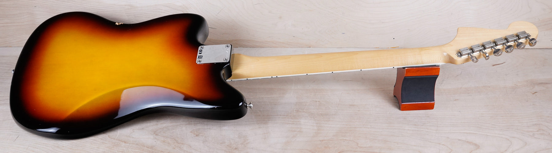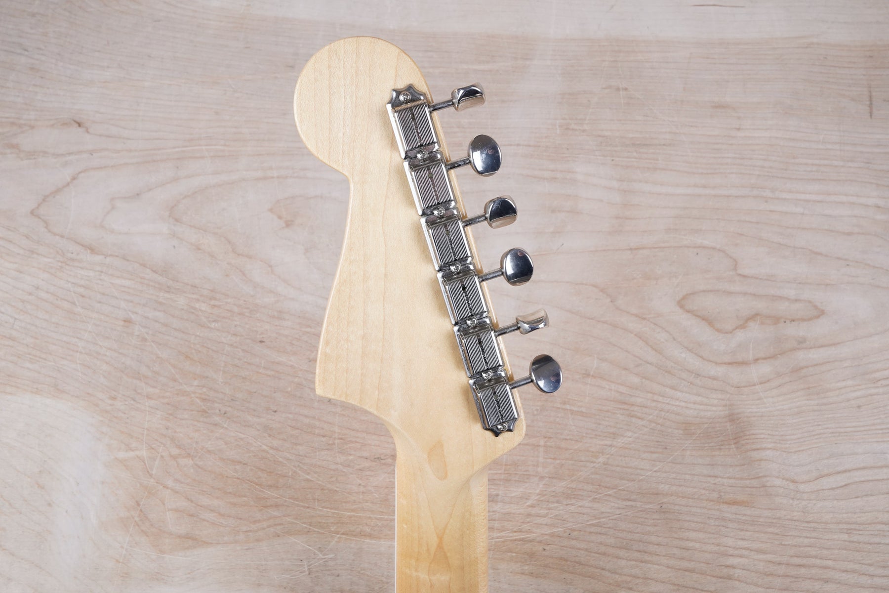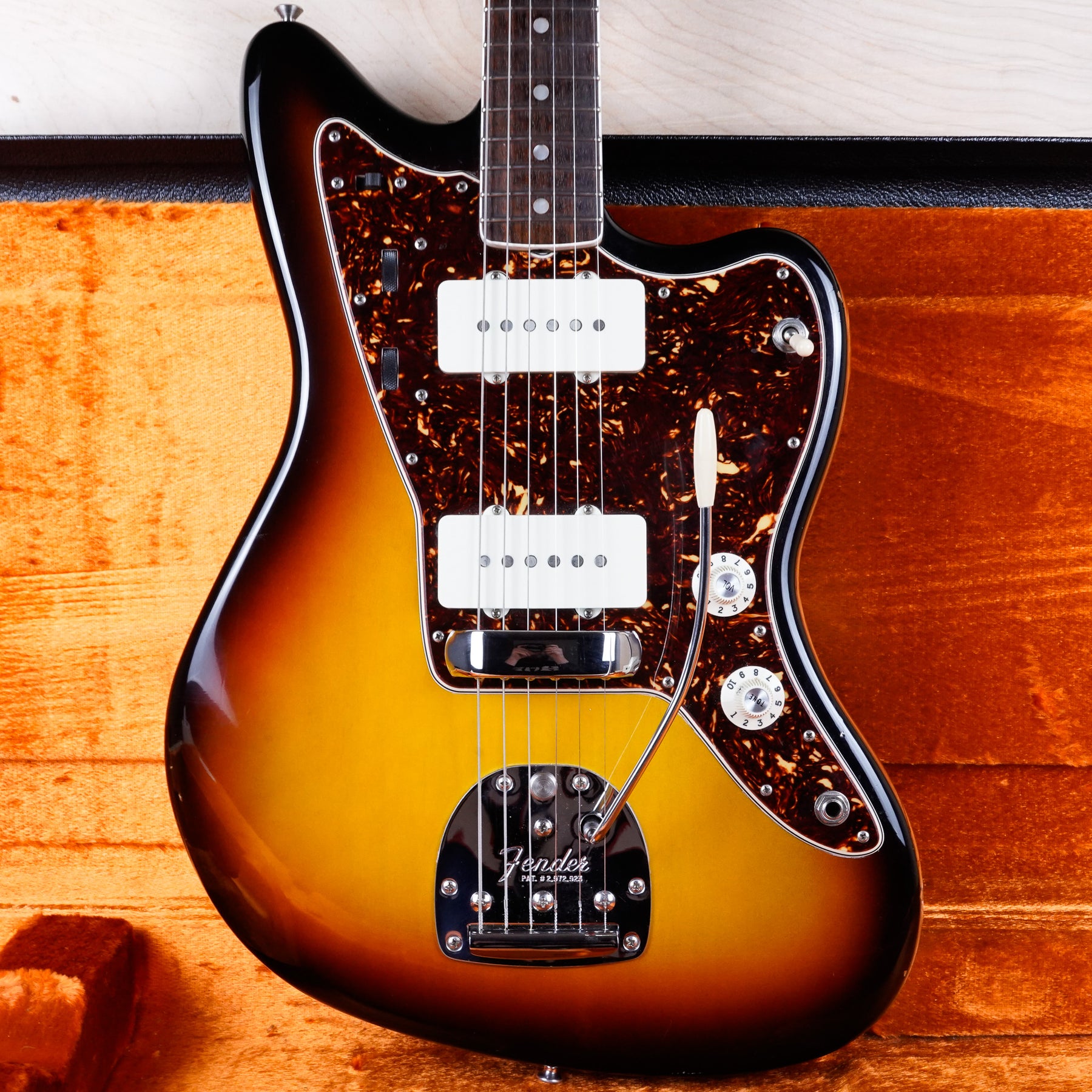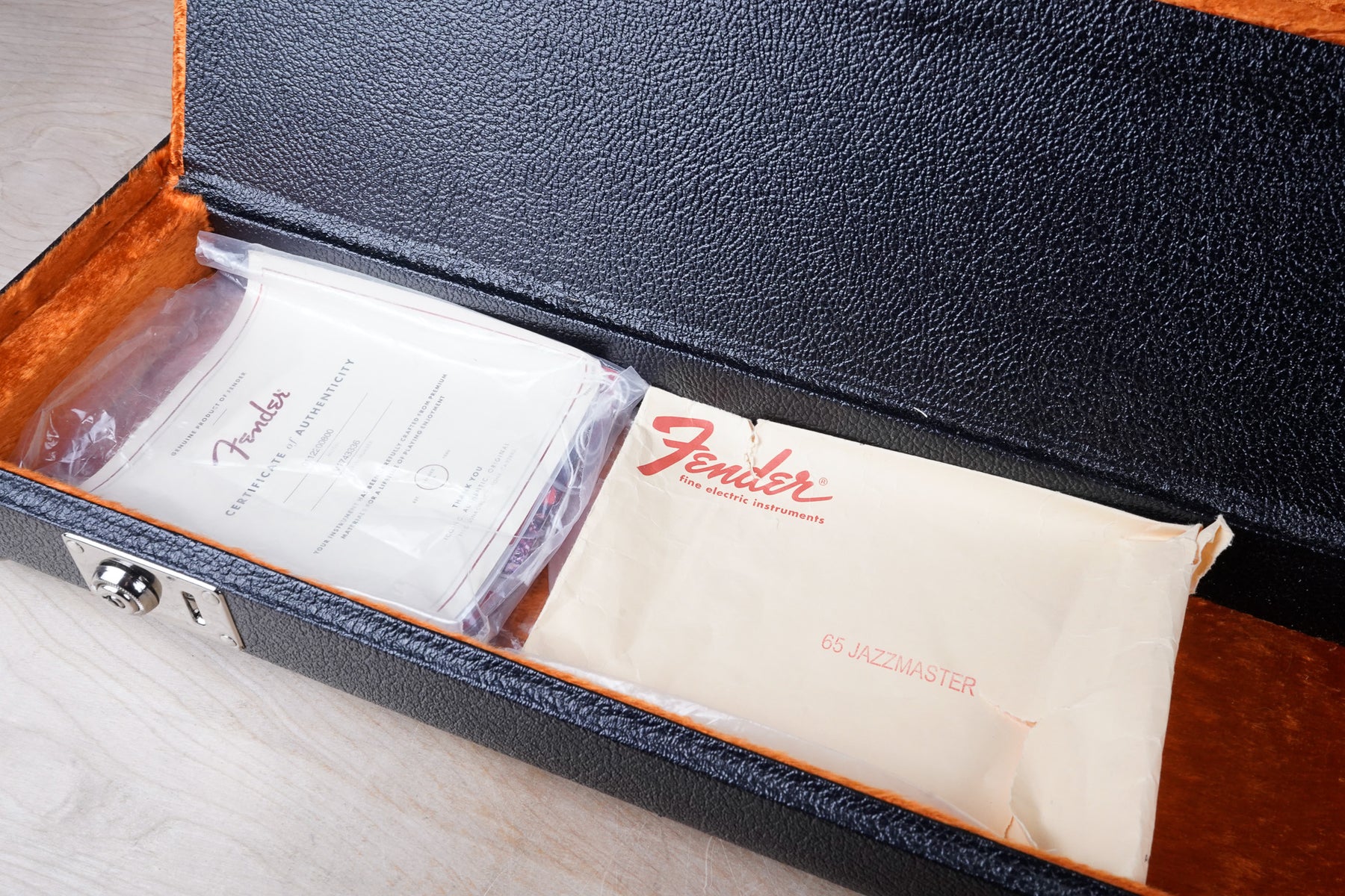 This Fender American Vintage '65 Jazzmaster plays and sounds great! The guitar is comprised of an alder body, mid '60s "C" shape maple neck, and rosewood fretboard. The pickups include a set of Pure Vintage '65 Single-Coil Jazzmaster pickups.