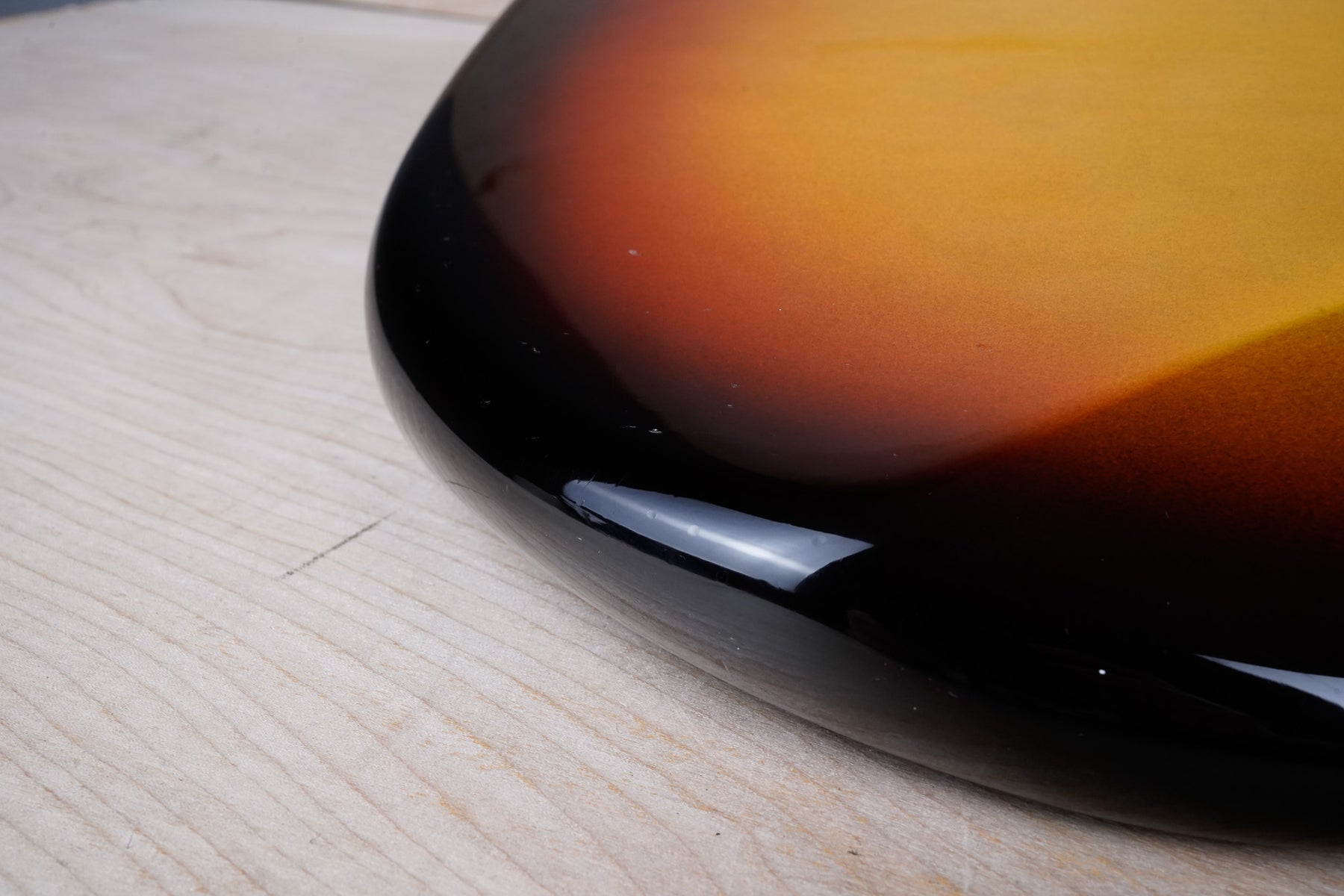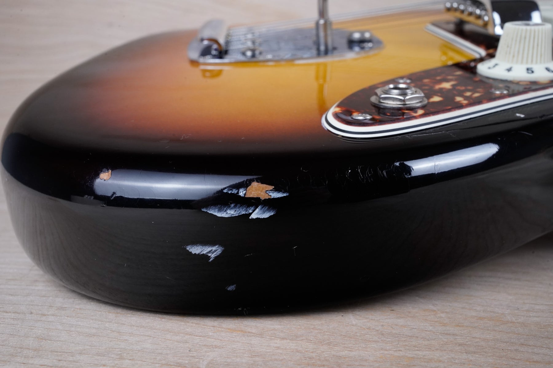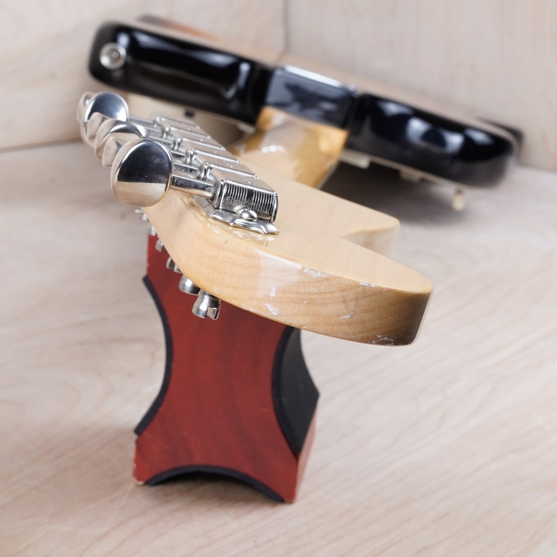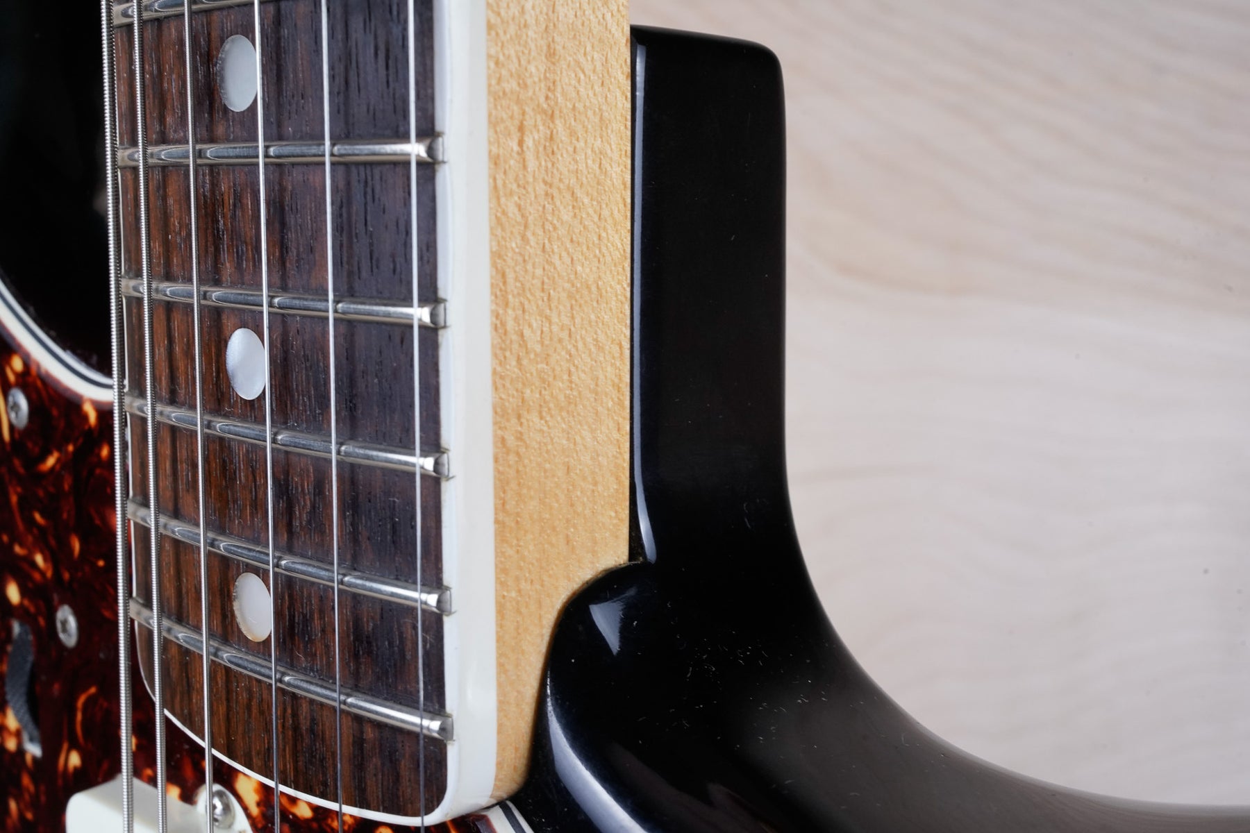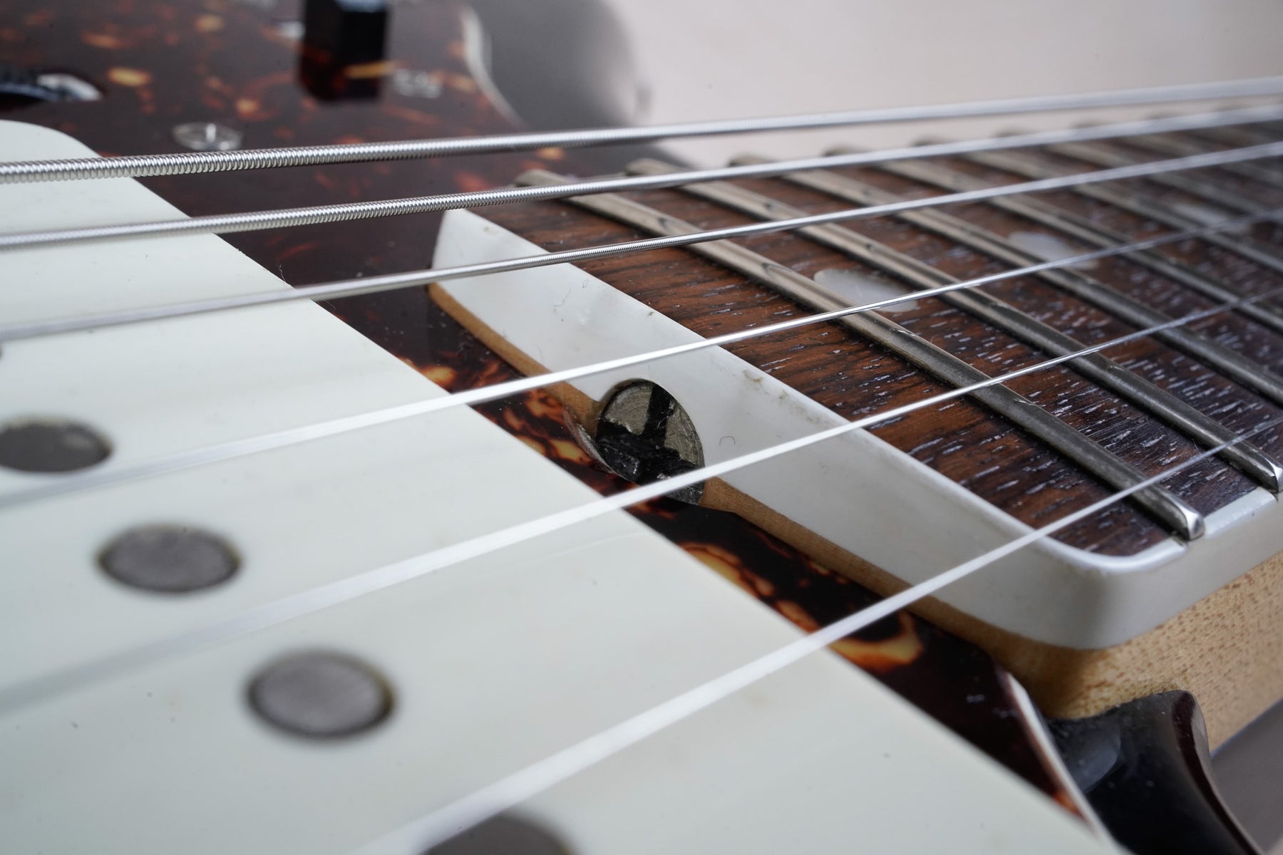 This guitar does show some cosmetic wear that includes various surface scratches, scuffs, dents, and finish chips throughout the body with small dings on the headstock. The binding around the fretboard also shows some small scuffs and is starting to age from over time. The frets are still in nice shape and the electronics work as they should.