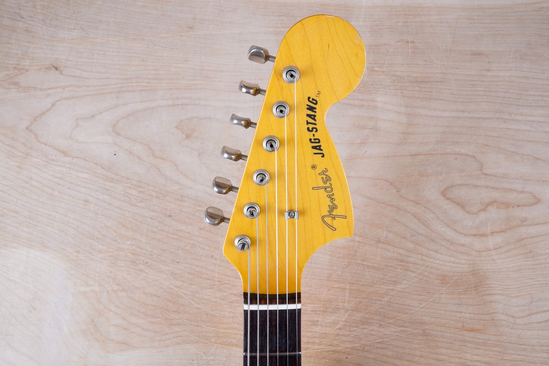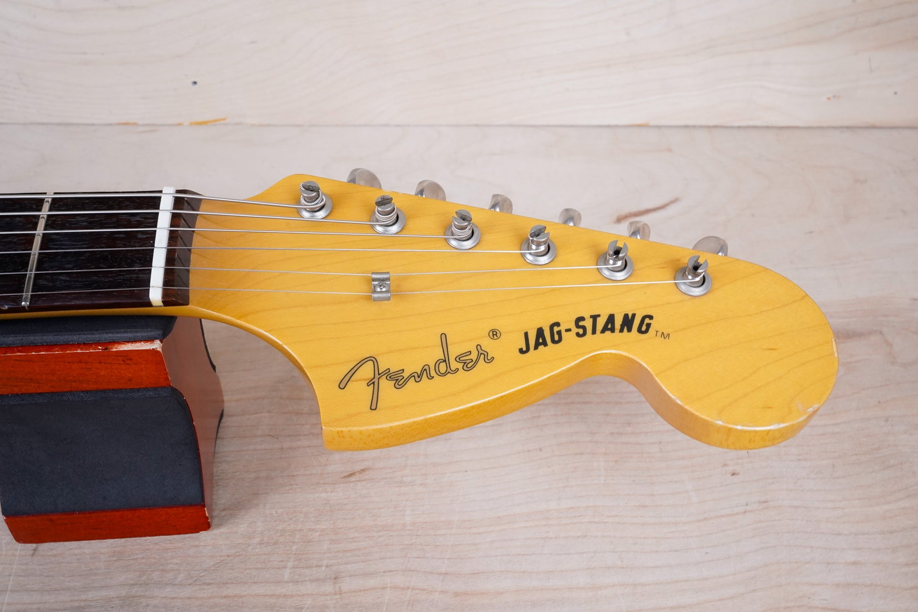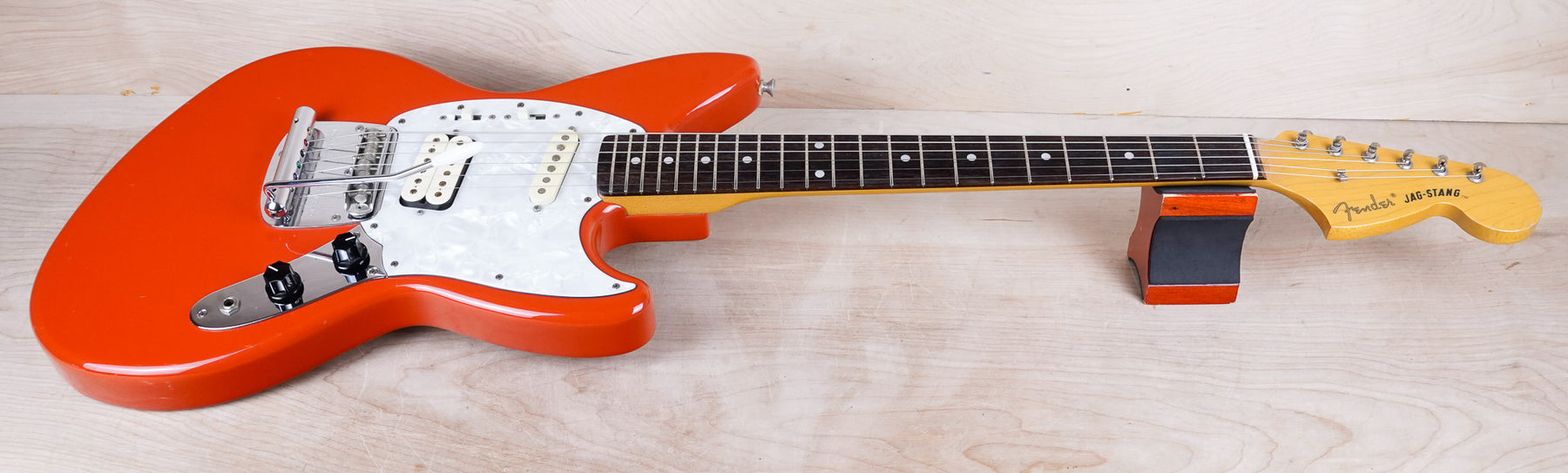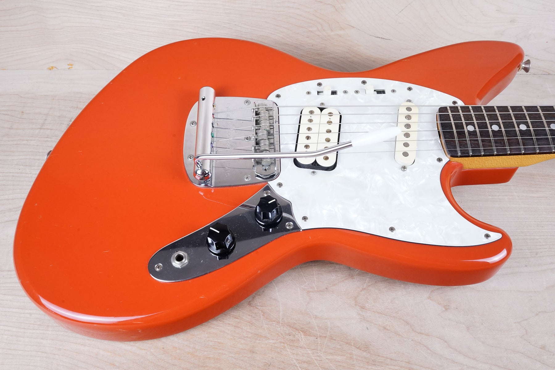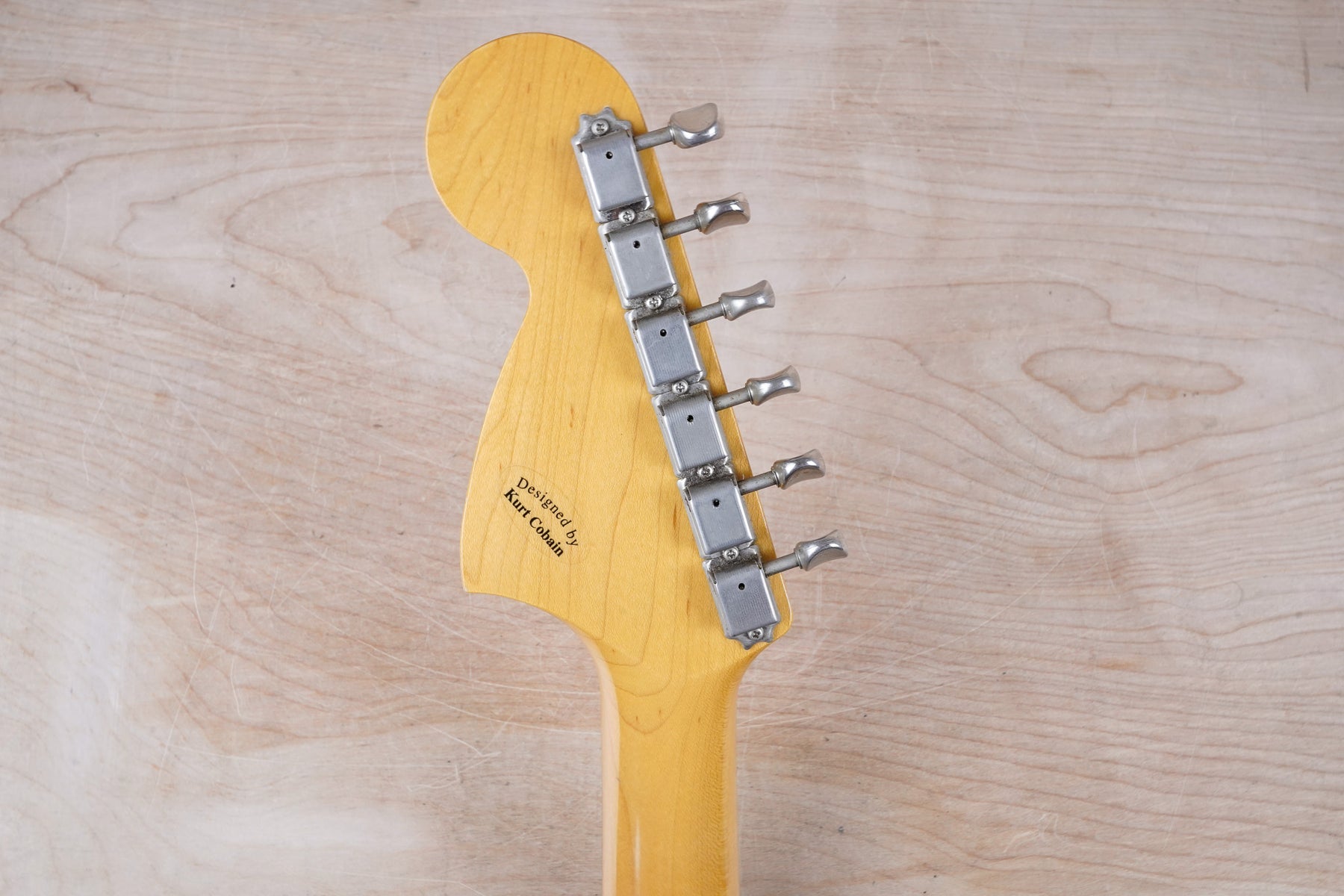 This Kurt Cobain Signature Fender Jag-Stang JT-95EX plays and sounds great! These guitars from the original run are highly collectable. The Jag-Stang design hybrid between the Fender Mustang and Jaguar. The guitar is comprised of an alder body, "C" shape maple neck, and rosewood fretboard.
