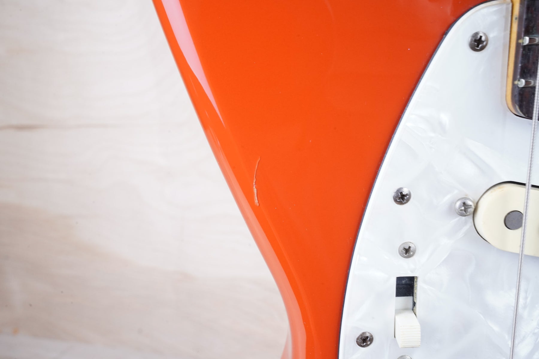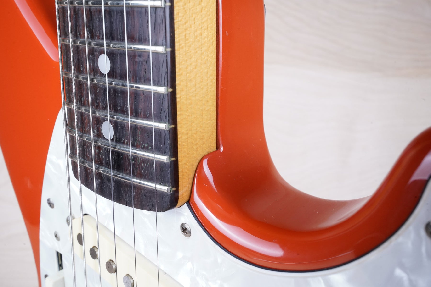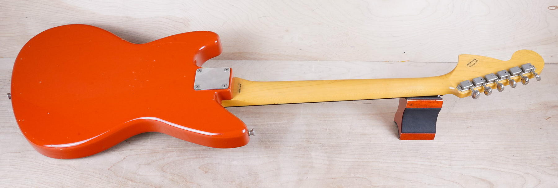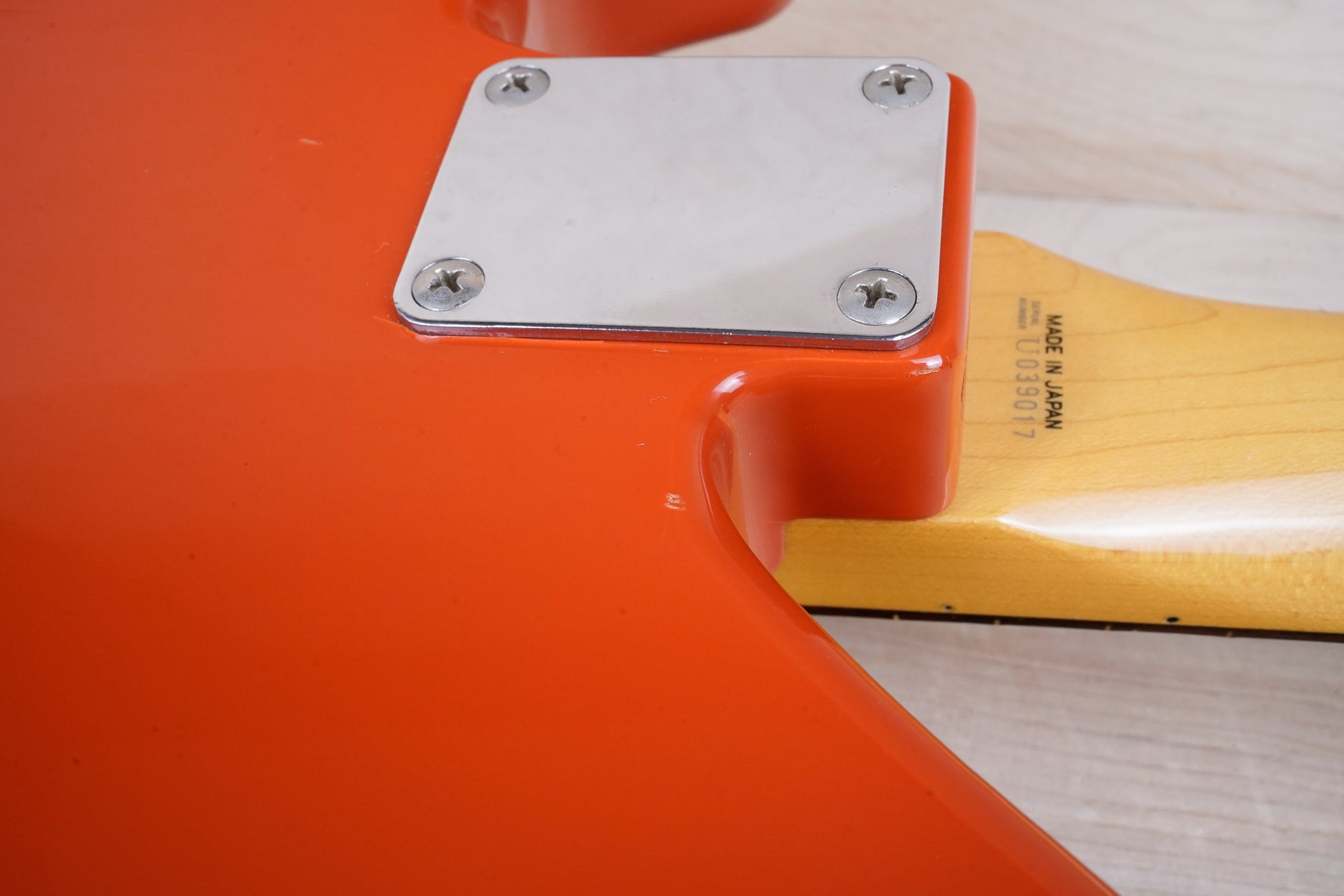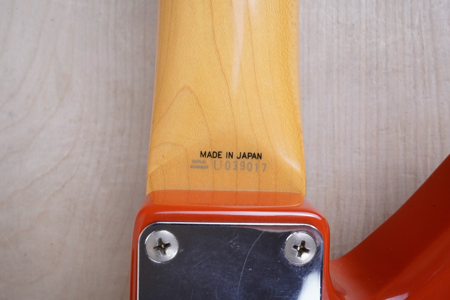 This Kurt Cobain Signature Fender Jag-Stang JT-95EX plays and sounds great! These guitars from the original run are highly collectable. The Jag-Stang design hybrid between the Fender Mustang and Jaguar. The guitar is comprised of an alder body, "C" shape maple neck, and rosewood fretboard.