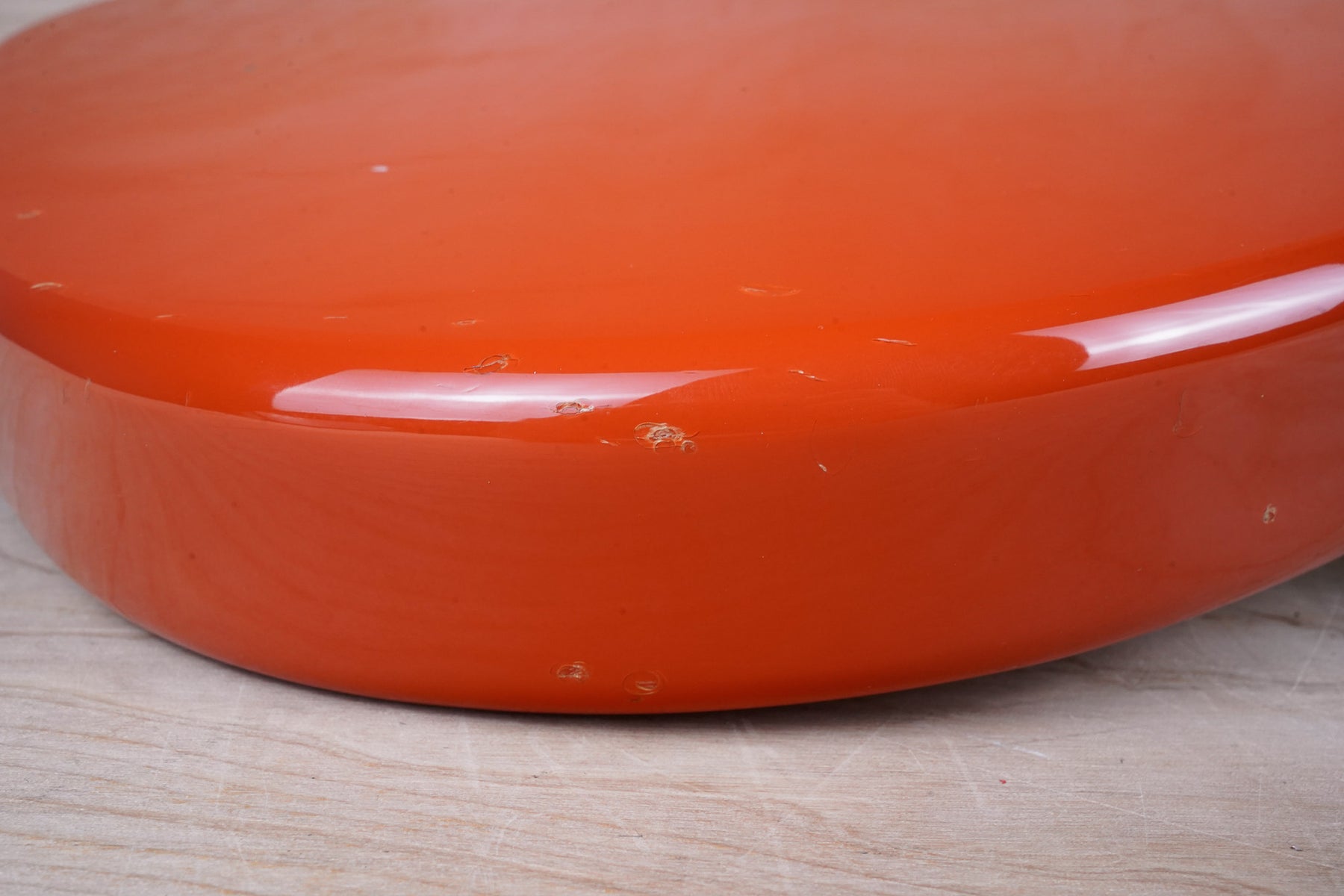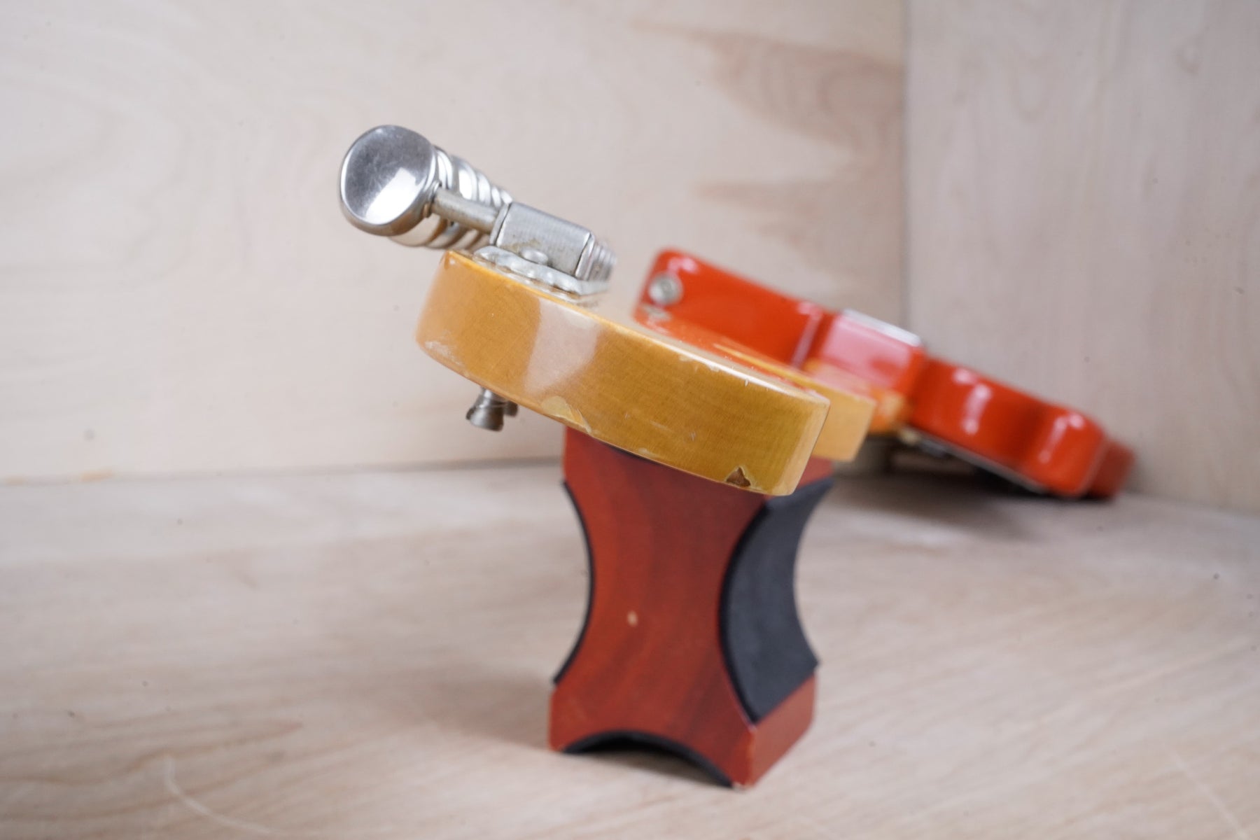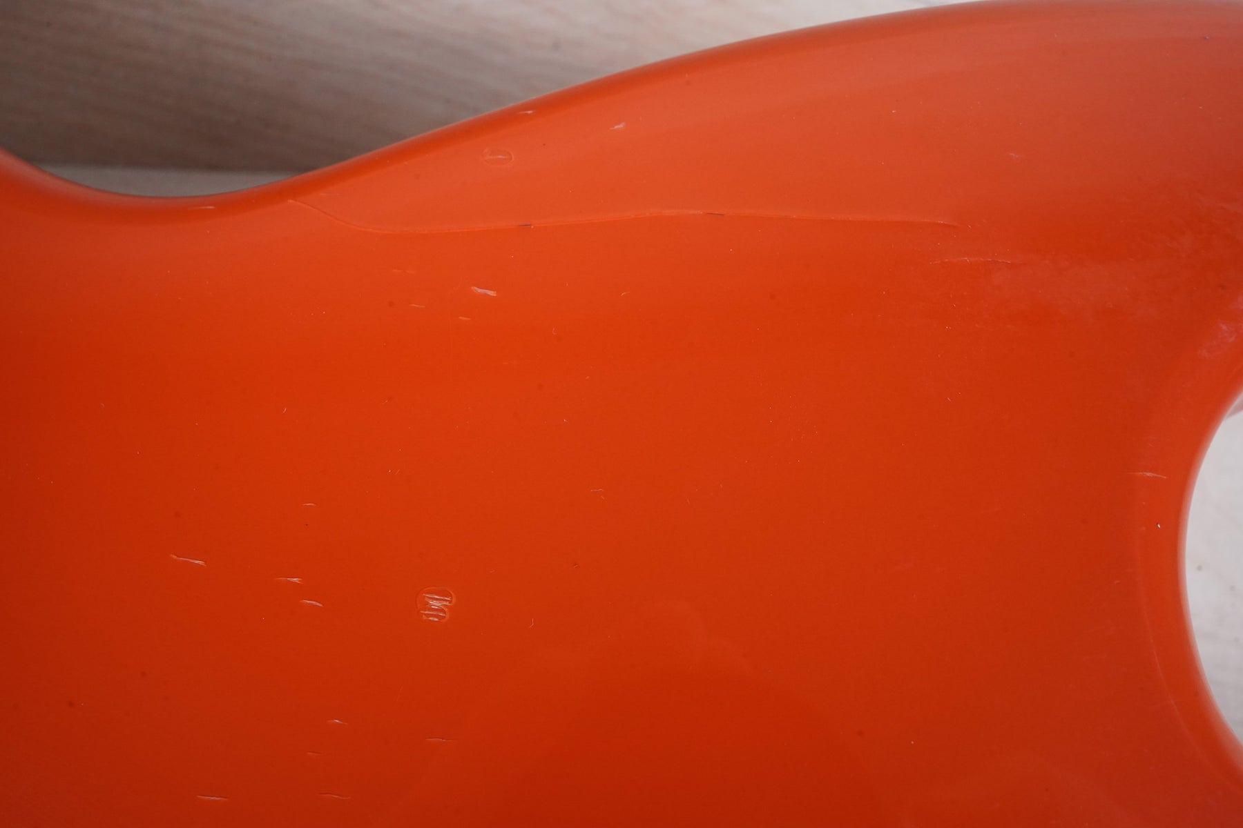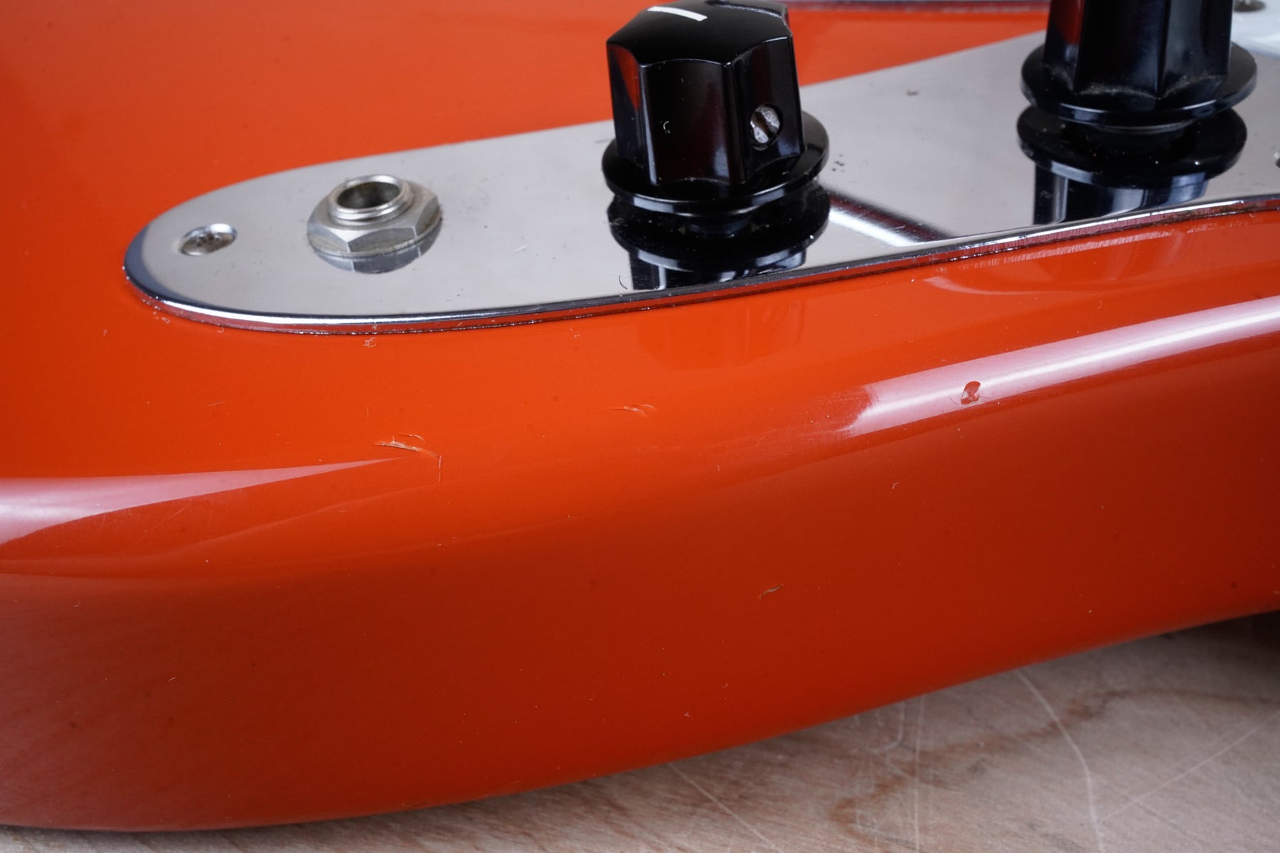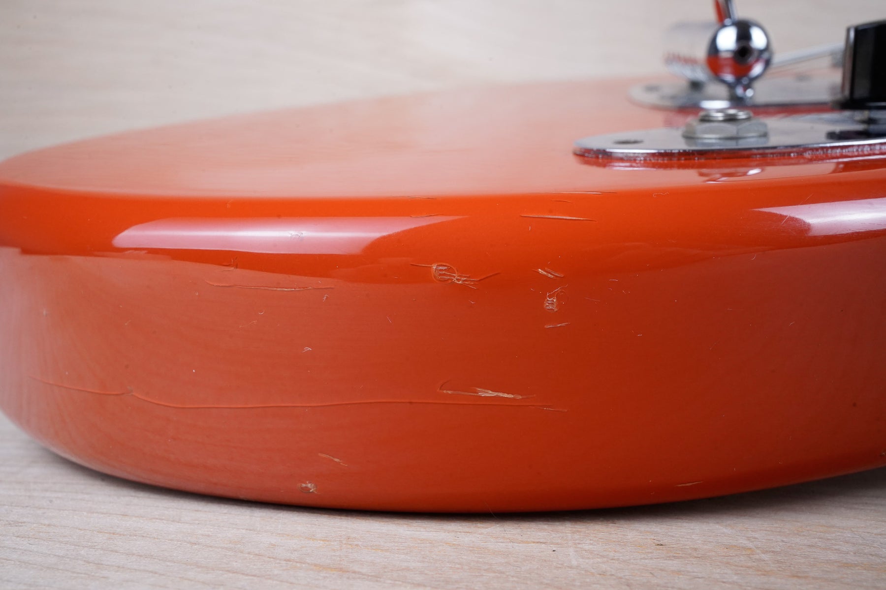 This guitar does show some cosmetic wear from over the years that includes various surface scratches, scuffs, and small dents throughout the body with additional dings along the back of the neck and headstock. There's also a finish crack located on the back of the lower horn and some of the fret markers along the side of the fretboard have come off. The hardware also shows normal light tarnishing from over time. The frets are in nice shape and the electronics work as they should.