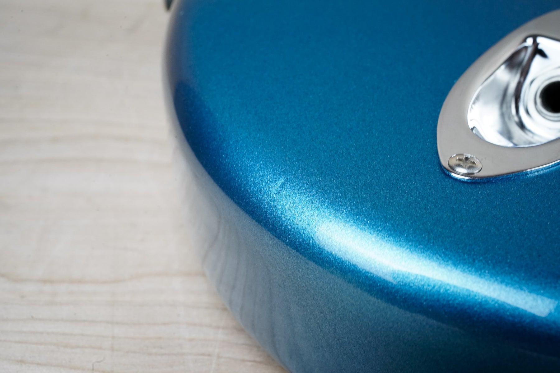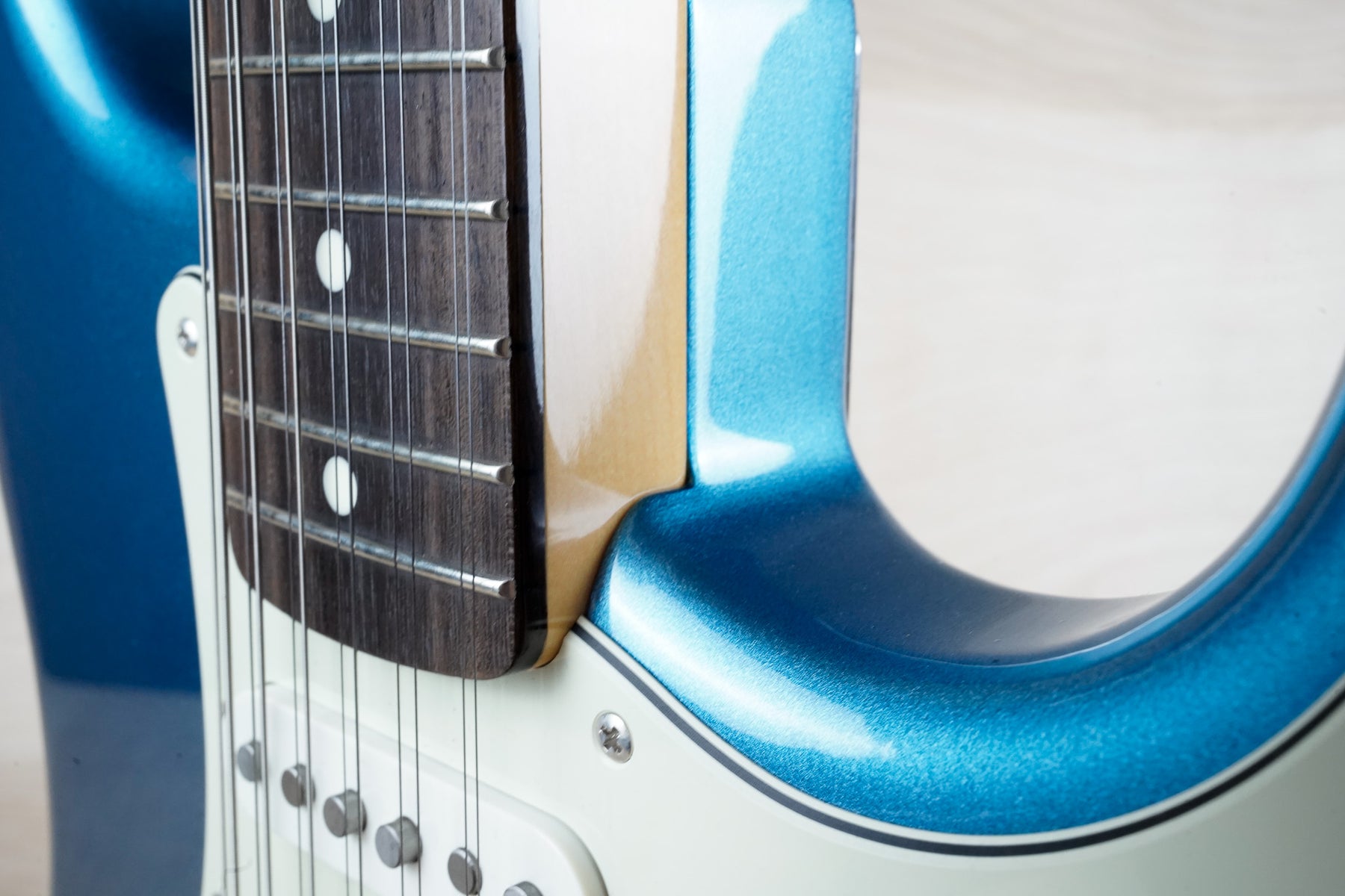 This guitar is in excellent shape overall and shows little play wear apart from a small dent located on the lower side of the body. The frets play great and the electronics work as they should.