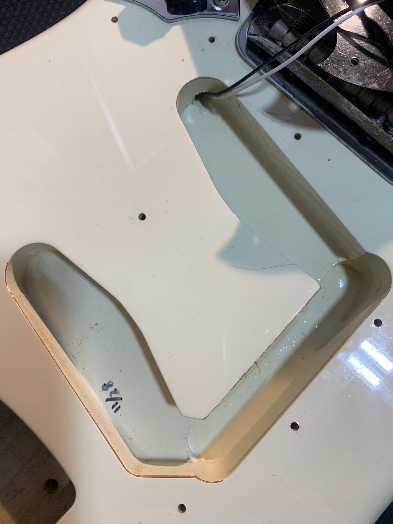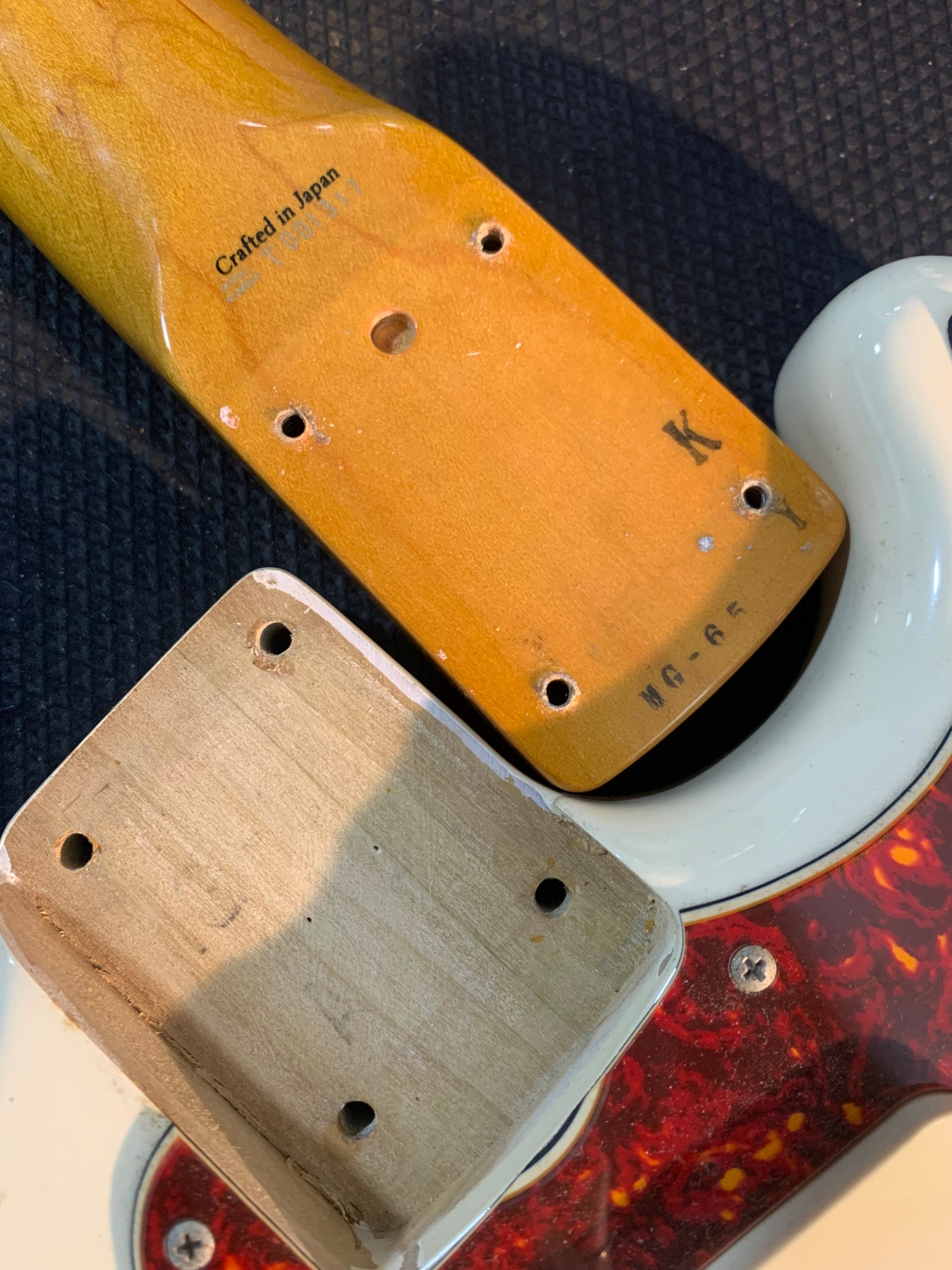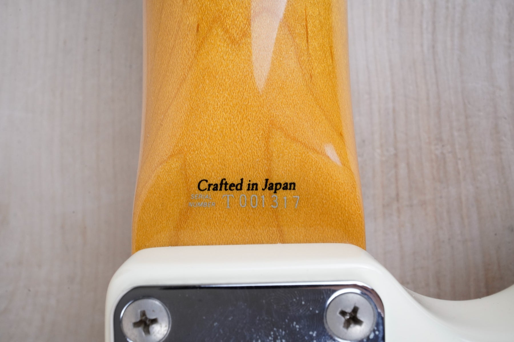 This guitar does show some cosmetic wear from over the years that includes various surface scratches, scuffs, and dents throughout the body from normal play. The hardware is starting to show some light tarnish and the vintage white finish is aging very nicely. The frets are still in nice shape and the electronics work as they should.