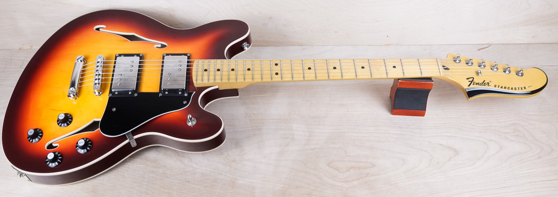 This Fender Modern Player Starcaster plays and sounds great! This guitar is comprised of a laminated maple body with alder center-block, "C" shape maple neck, and maple fretboard.