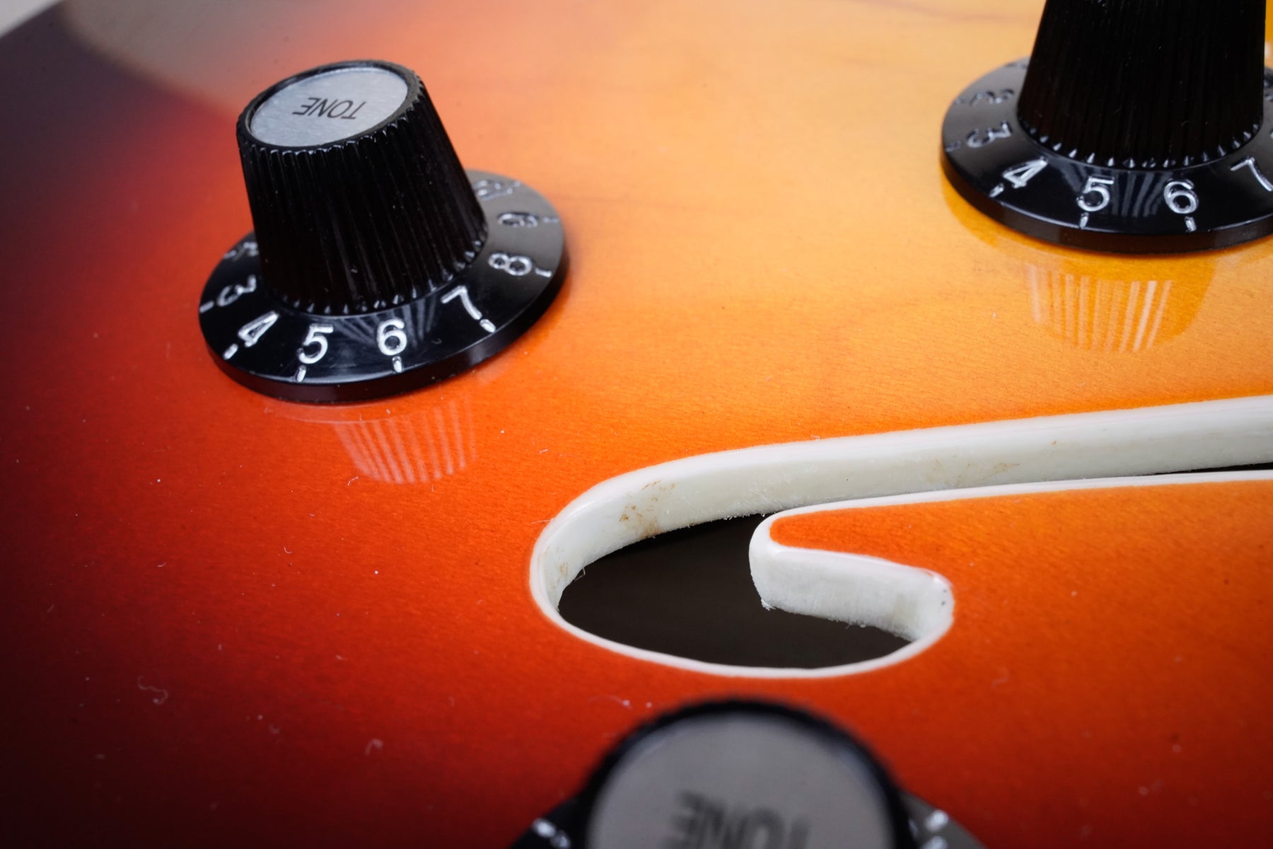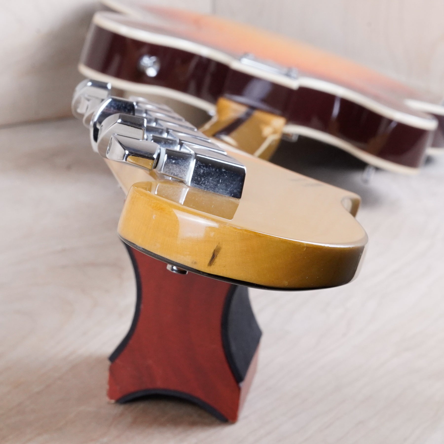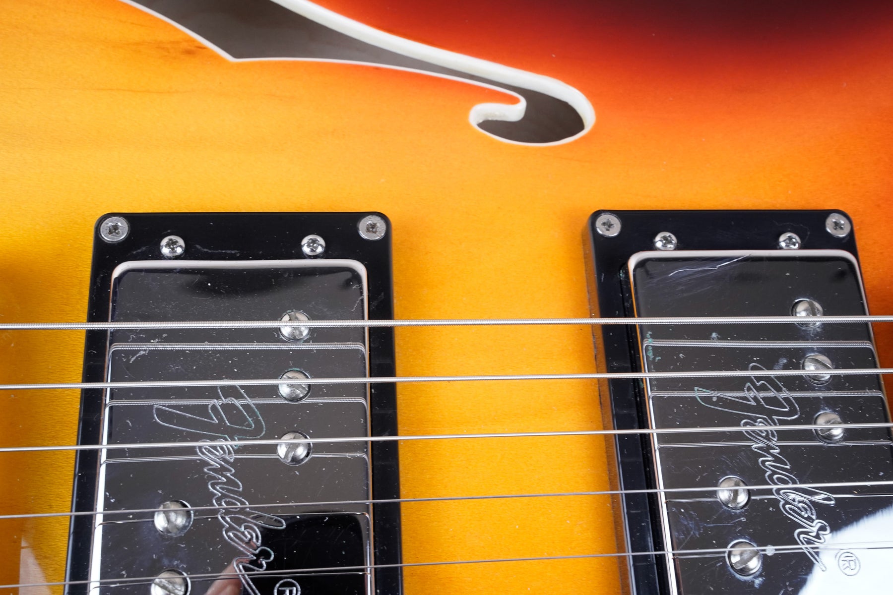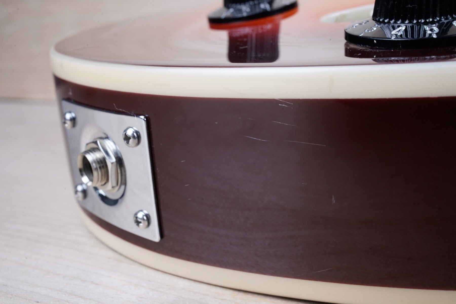 This guitar shows minor cosmetic wear that includes light surface scratches throughout the body and small dings on the headstock. The frets play great and the electronics work as they should.