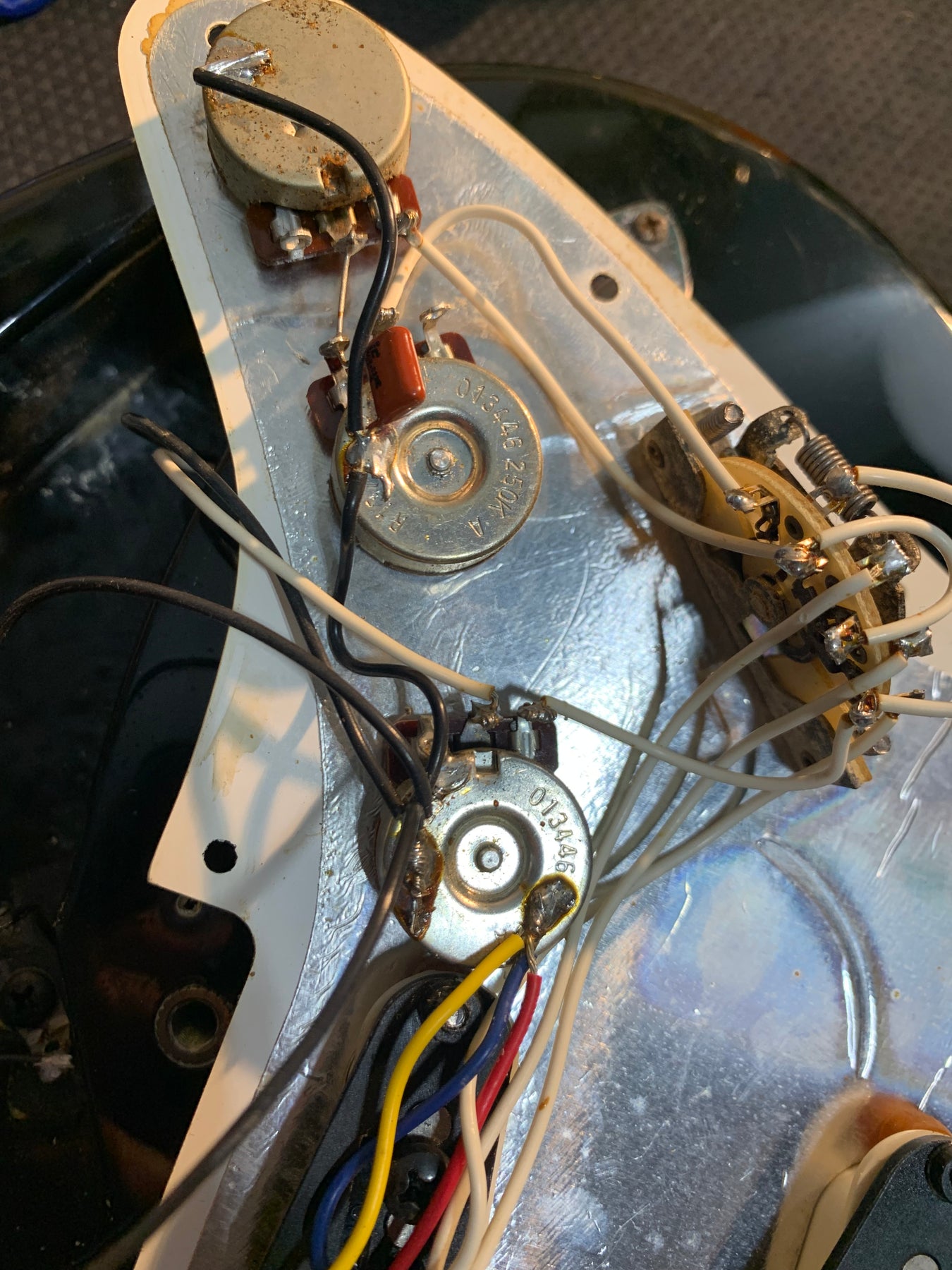 One of the tone pots has been replaced, otherwise this guitar appears to be original.