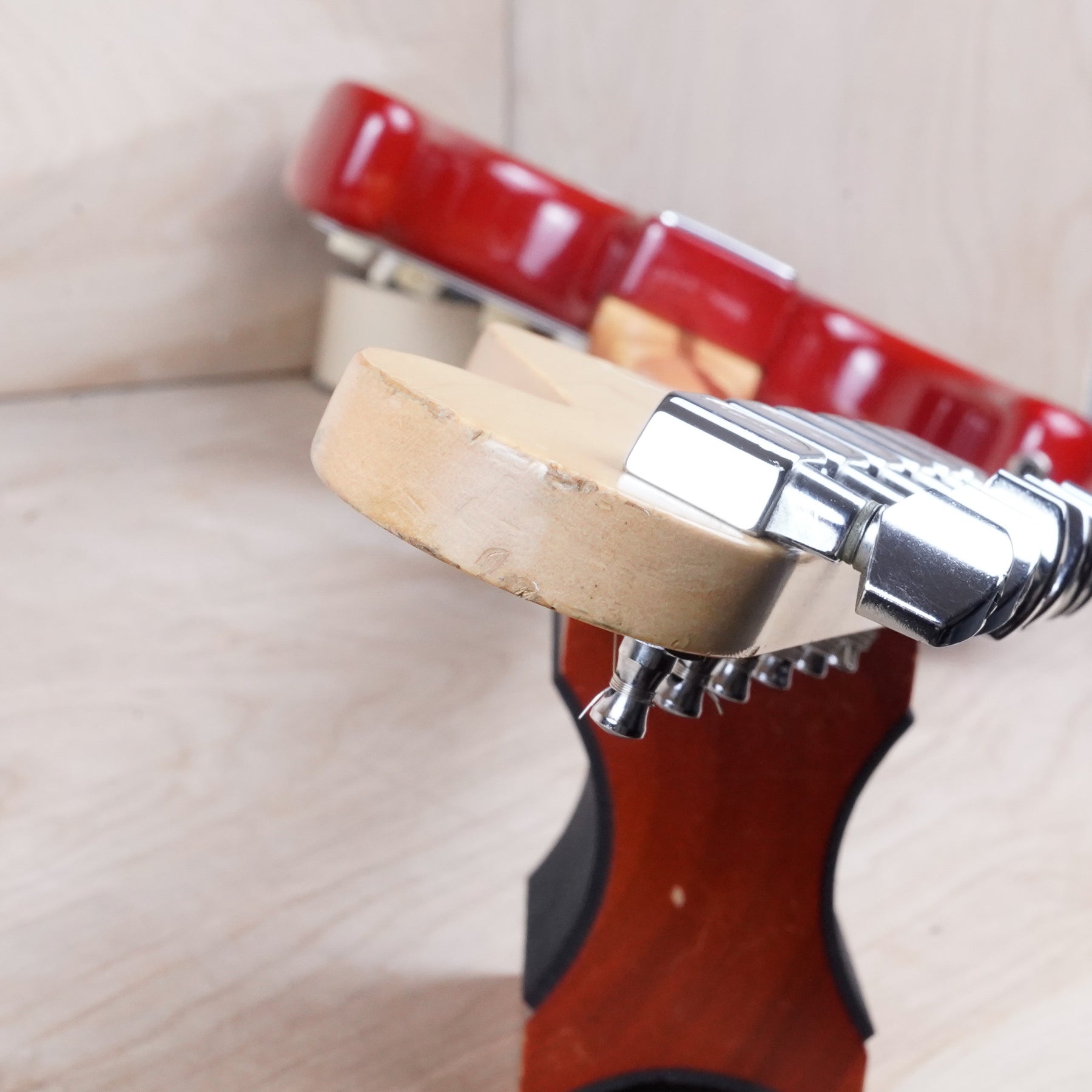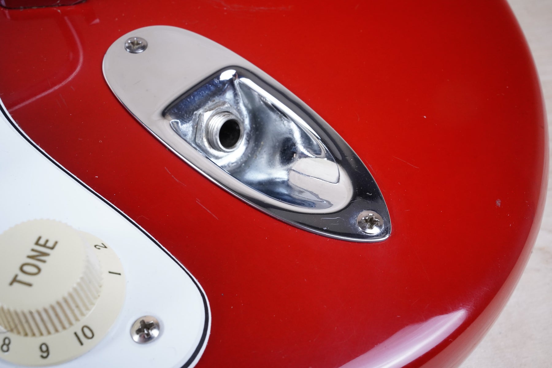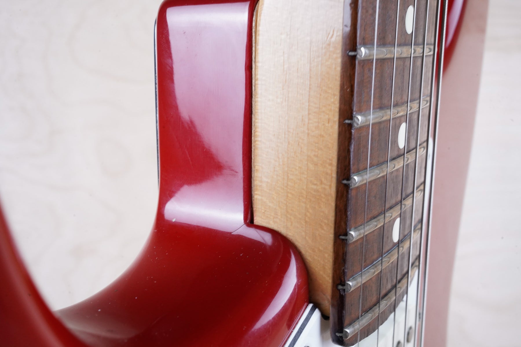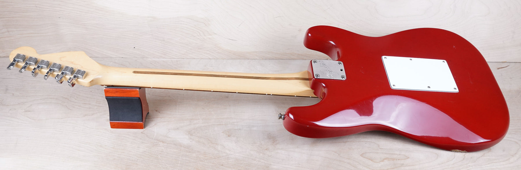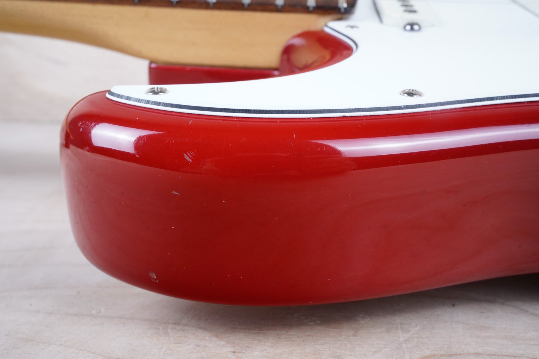 This guitar shows a good bit of cosmetic wear from over the years that include chips, surface scratches, scuffs, and small dents throughout the body. There's also some blemishes on the back of the neck as shown. While this guitar is far from mint, the frets are still in nice shape and play with with only normal play wear. Everything functions as it should and the electronics work and sound great!
