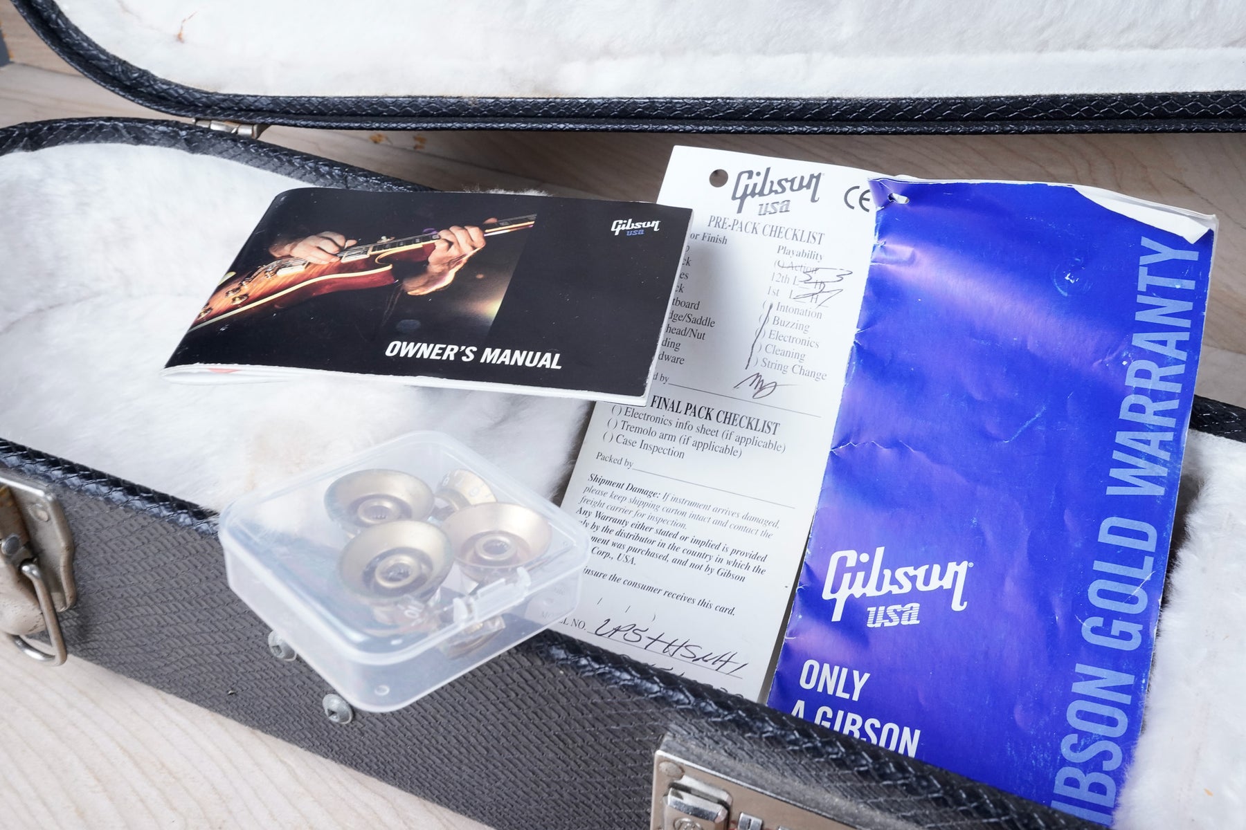 The strap buttons and some of the pickup ring screws have been replaced, otherwise this guitar is original. The strap locks currently on the guitar appear to be glued in.