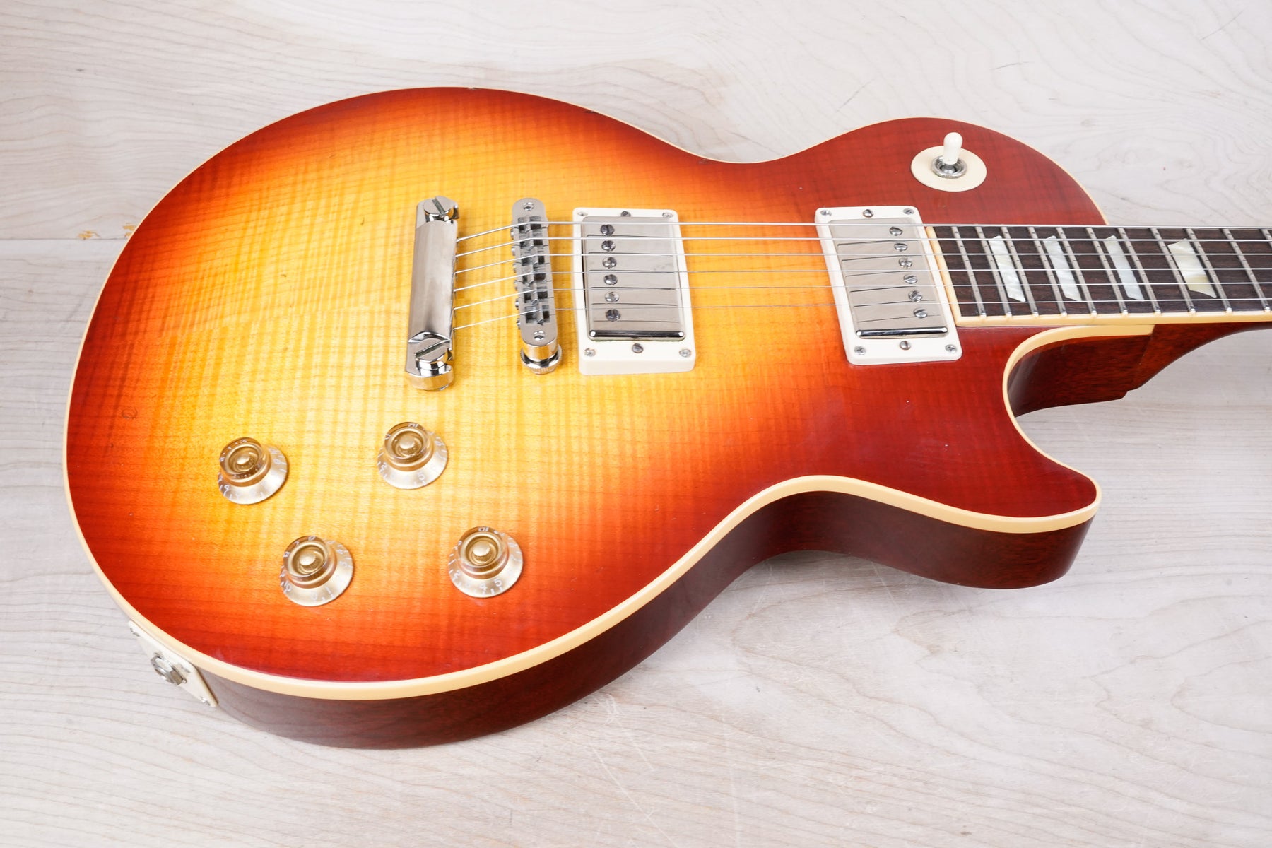 This 2006 Gibson Les Paul Premium Plus plays and sounds great! The AAA flame top looks absolutely incredible and the neck has a comfortably slim '60s profile. The factory-equipped Burstbucker Pro PAF humbuckers sound fantastic!