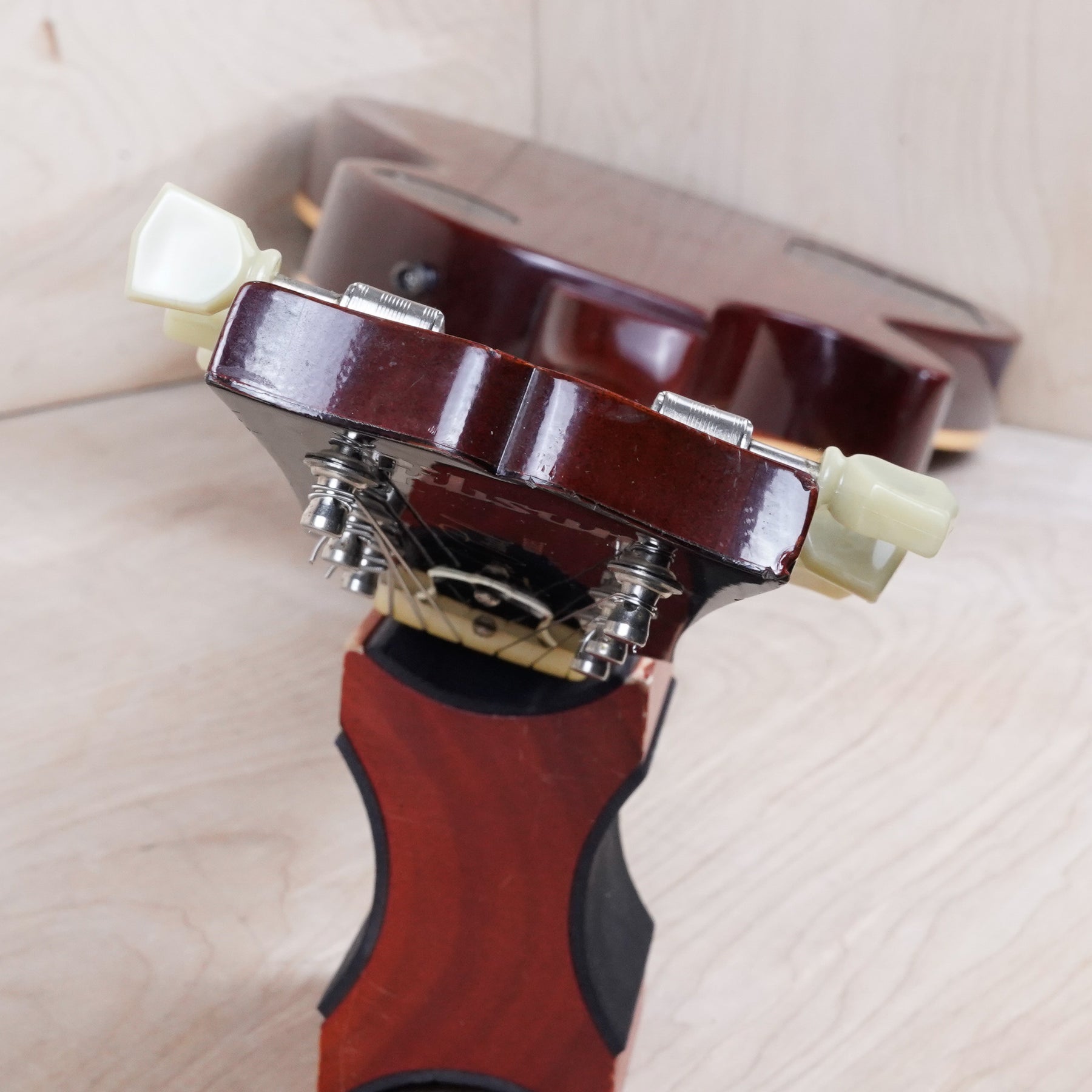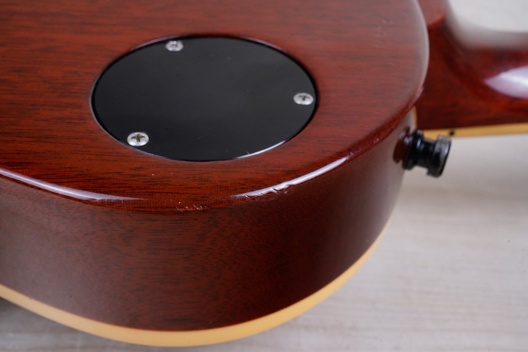 This guitar does show some cosmetic wear from over the years that includes various surface scratches, scuffs, dents, and small chips throughout the body with additional dings along the back of the neck and headstock. The frets are used but sill play great and the electronics work as they should.