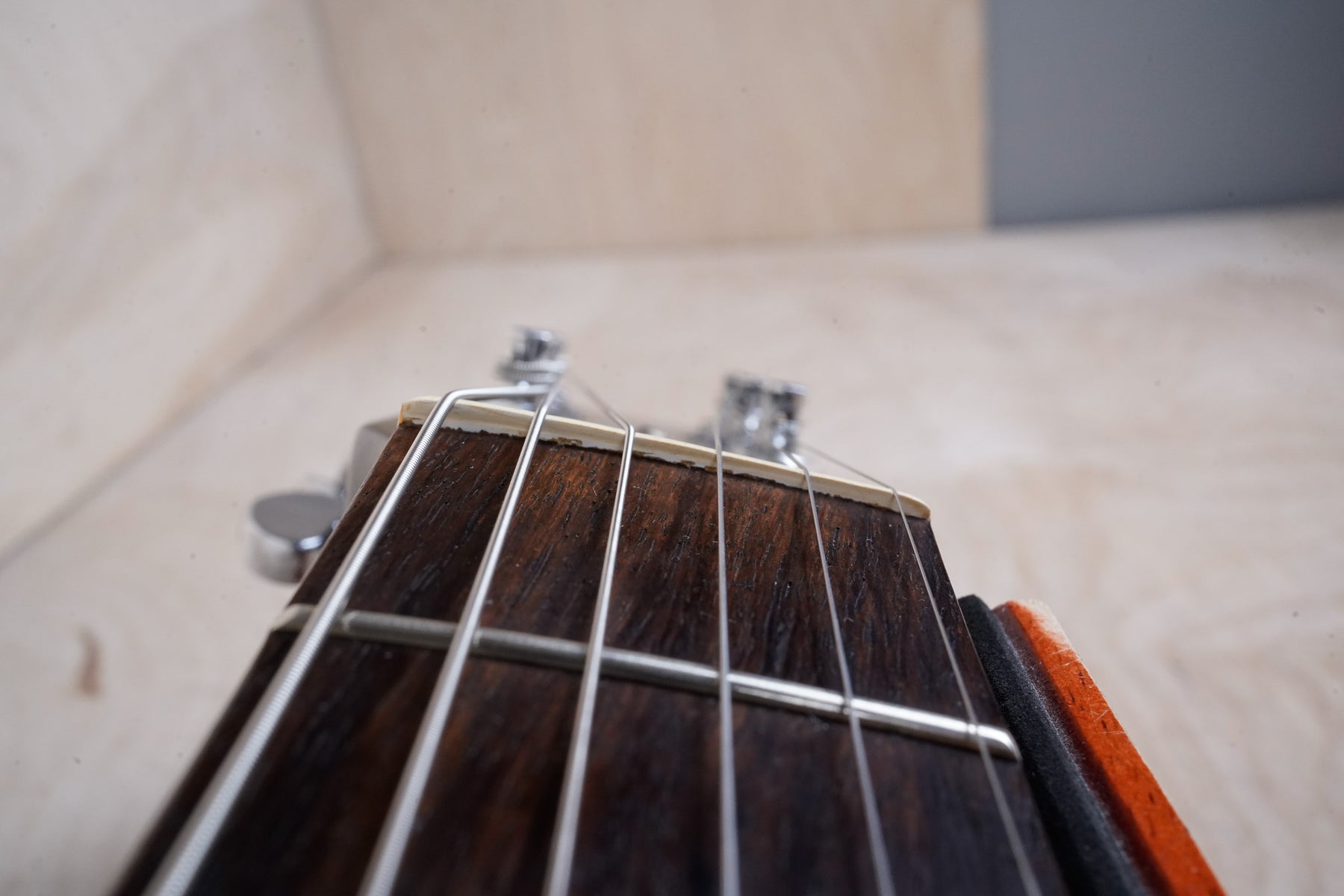 This guitar does show some cosmetic wear from over the years that includes various surface scratches, scuffs, and dents throughout the body with additional dings along the back of the neck and headstock. The hardware is starting to show some light tarnish and the finish has minor checking on the front of the body. The frets are used but still play great and the electronics work as they should.