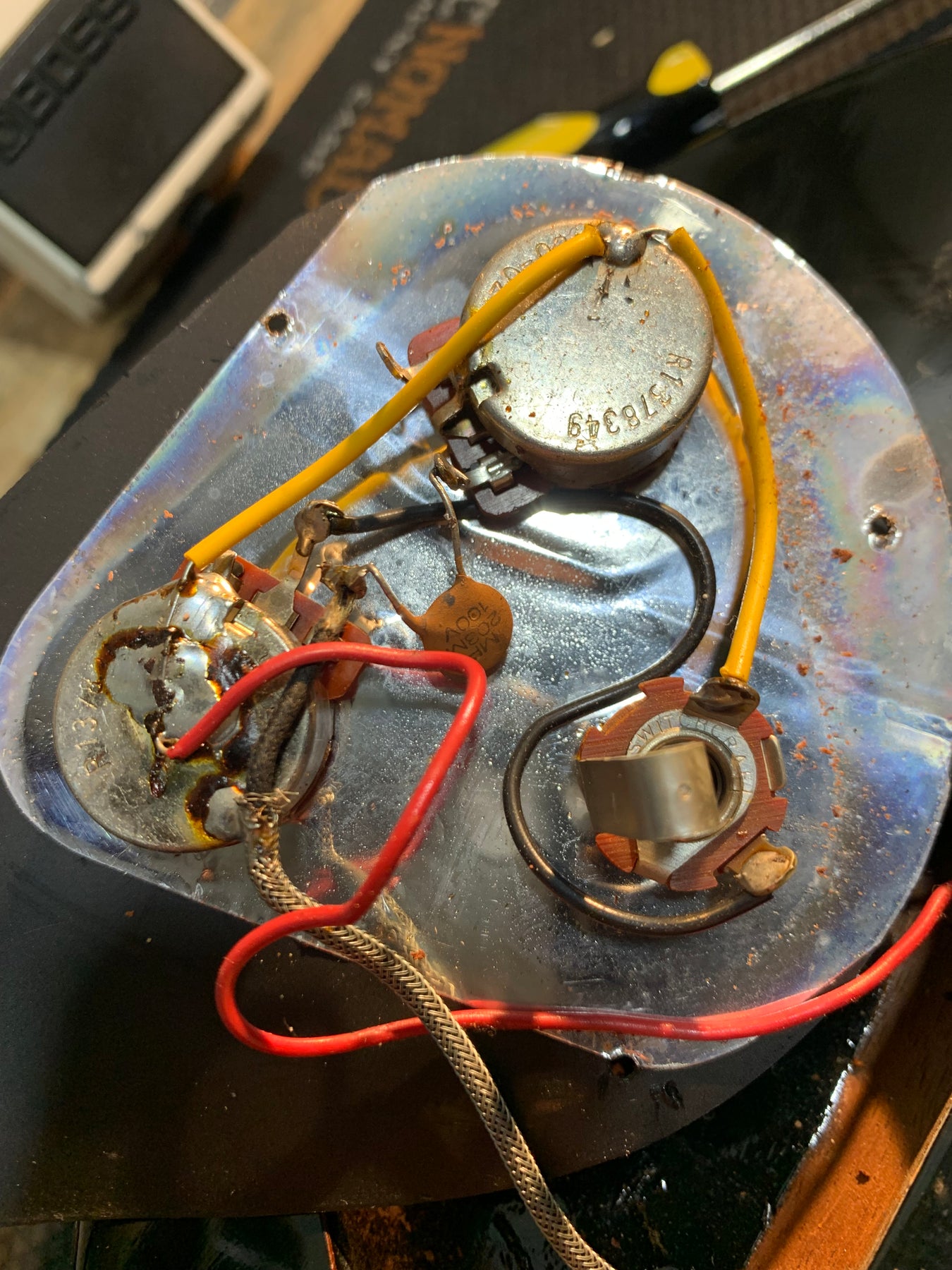 The upper strap button has been replaced, otherwise this guitar is all original.