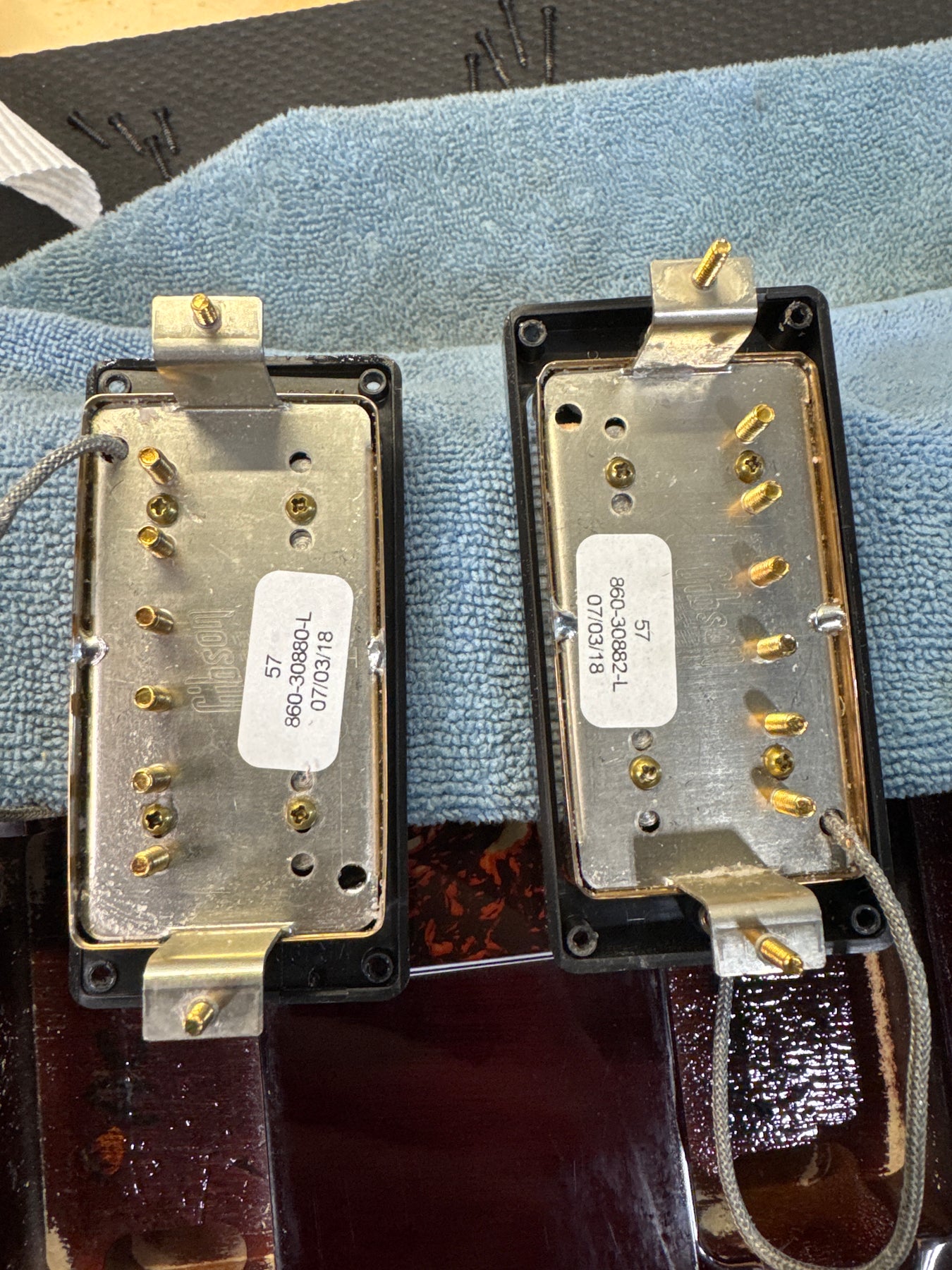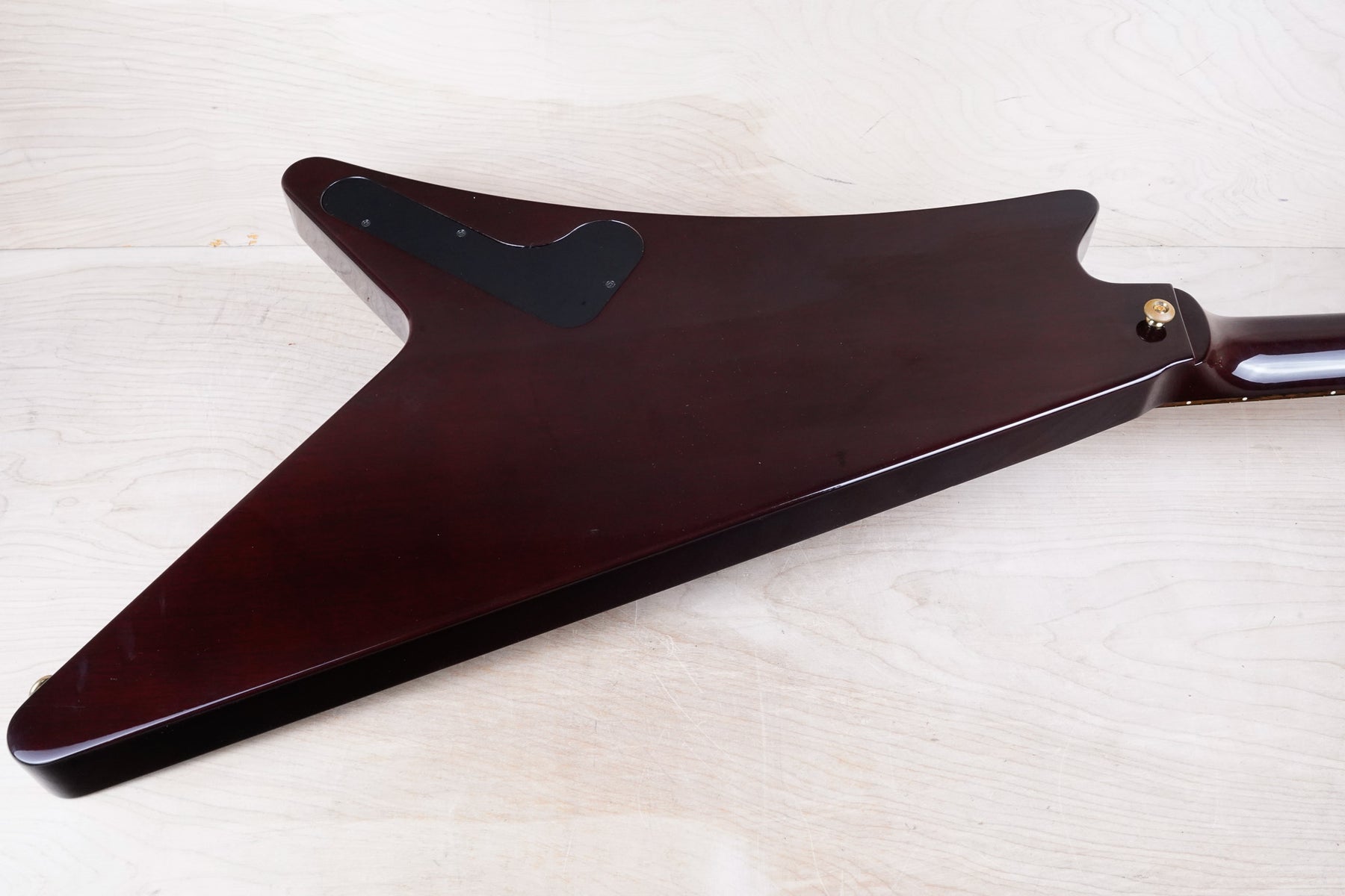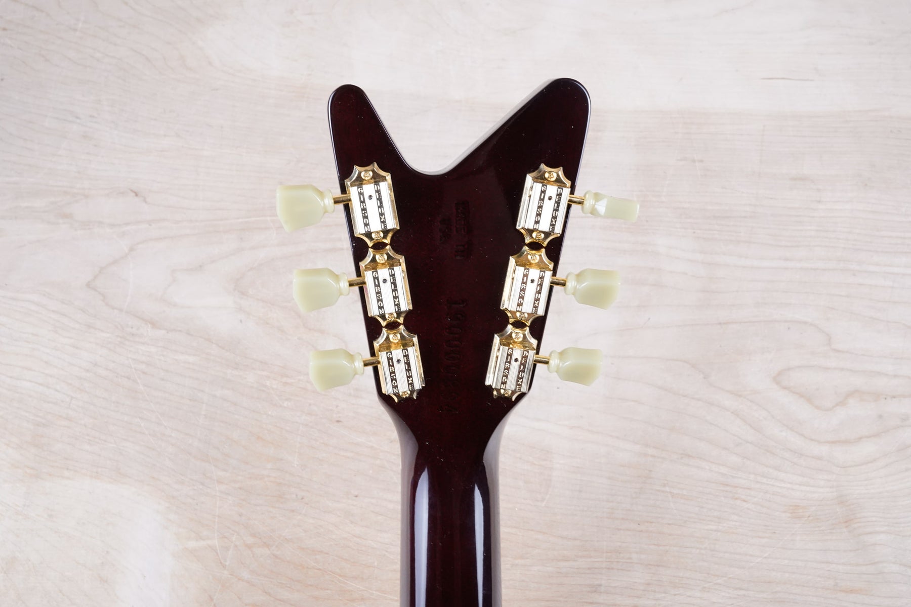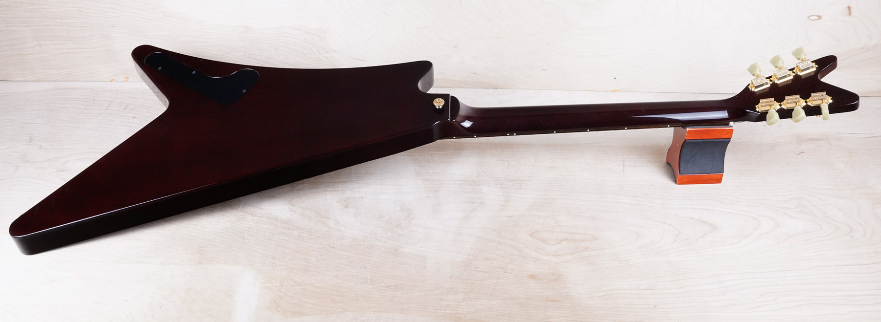 This Gibson Moderne plays and sounds great! The neck has a slim taper and the guitar is factory-equipped with '57 Classic Humbuckers. These guitars are quite hard to find, and those in this classy "Aged Cherry" finish rarely come up for sale!