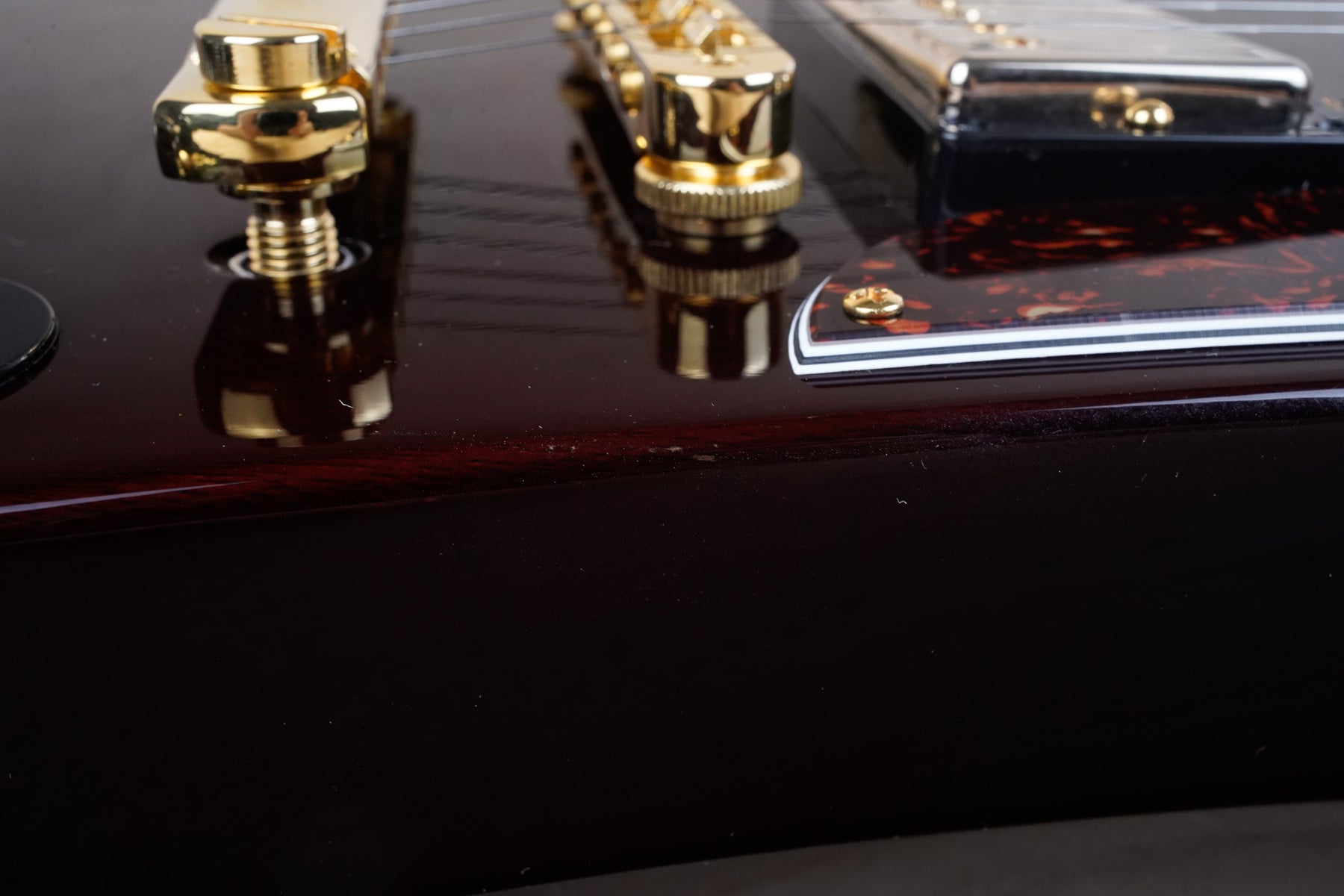 This guitar shows minor cosmetic wear that includes light surface scratches and scuffs from normal play. The frets are in nice shape and the electronics work as they should.