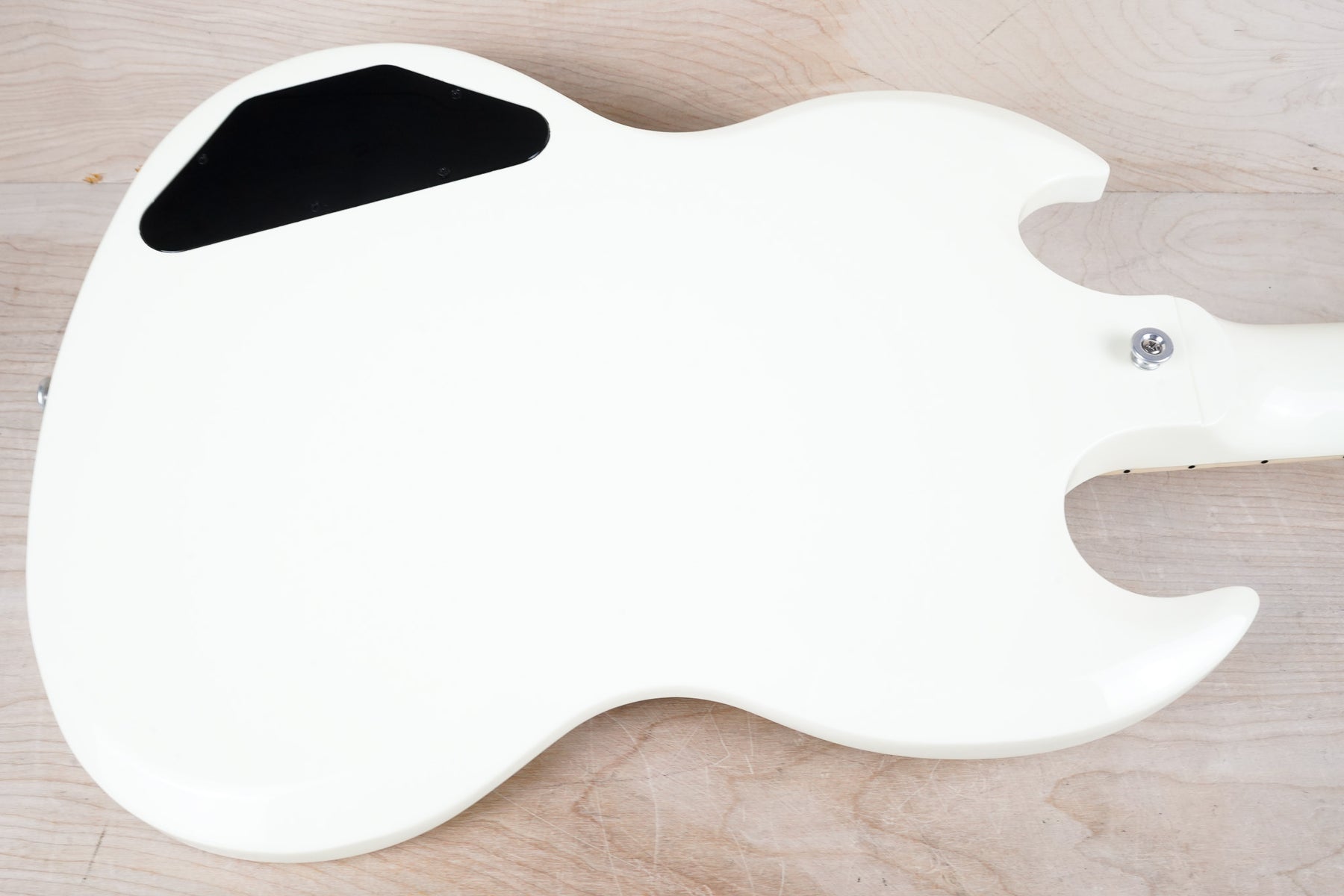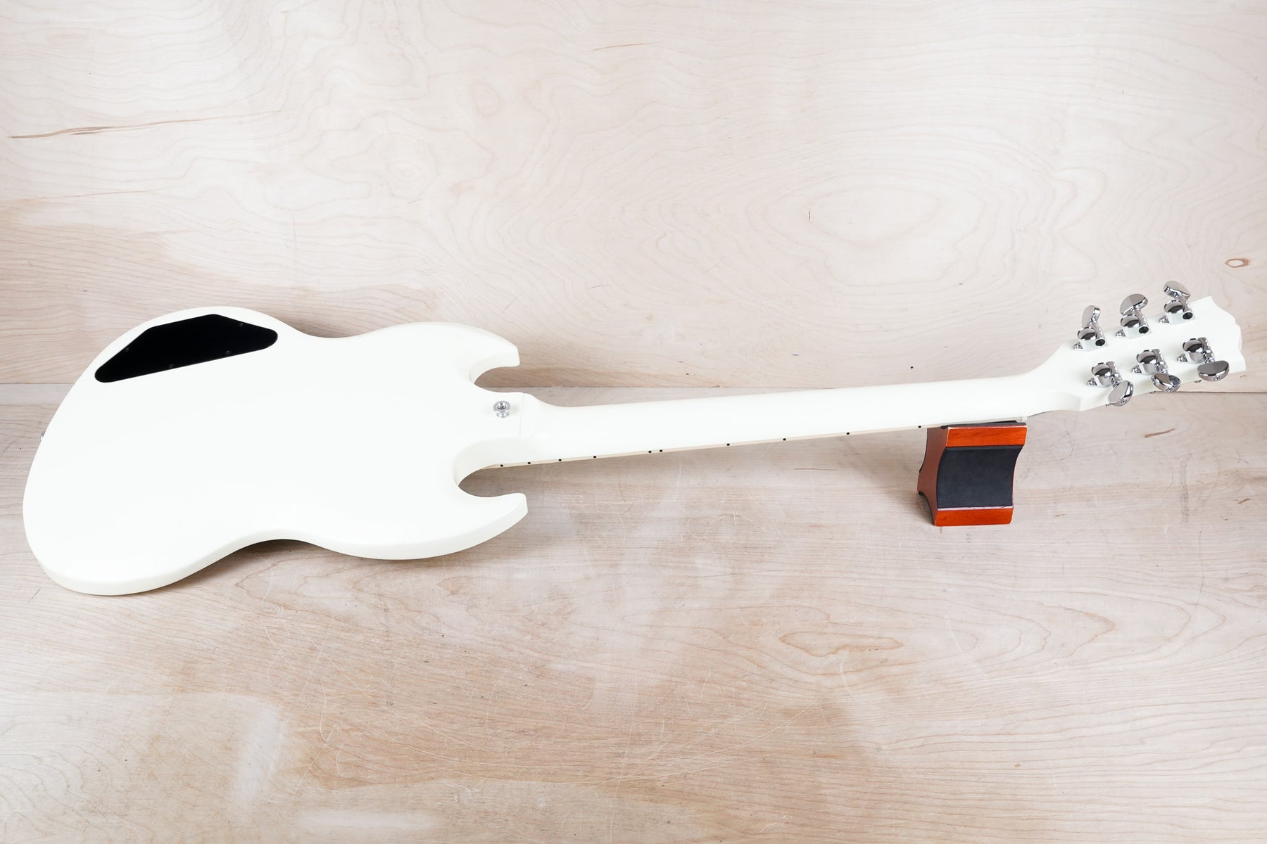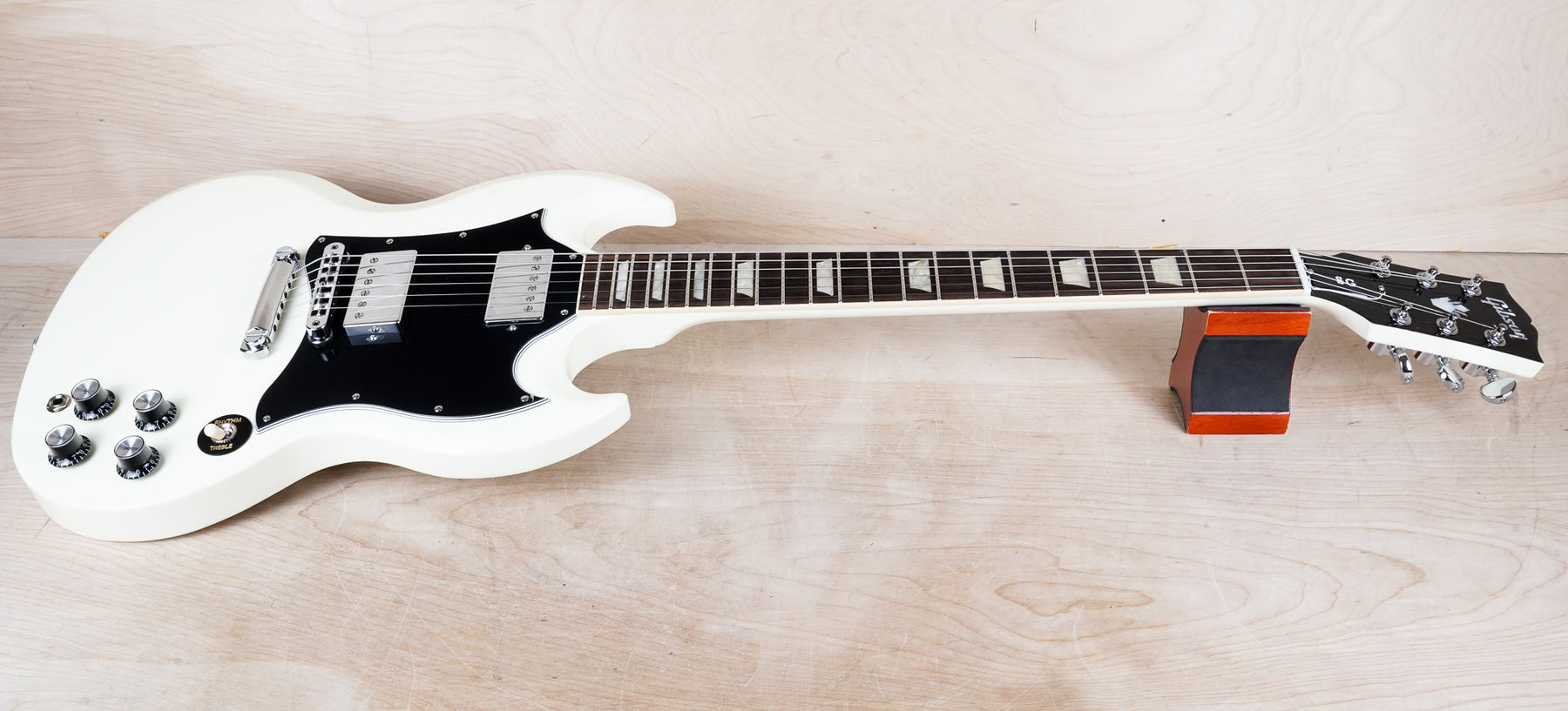 This 2024 Gibson SG Standard plays and sounds great! The guitar is equipped with a set of Gibson 490R/T humbuckers and the classic white finish looks great.