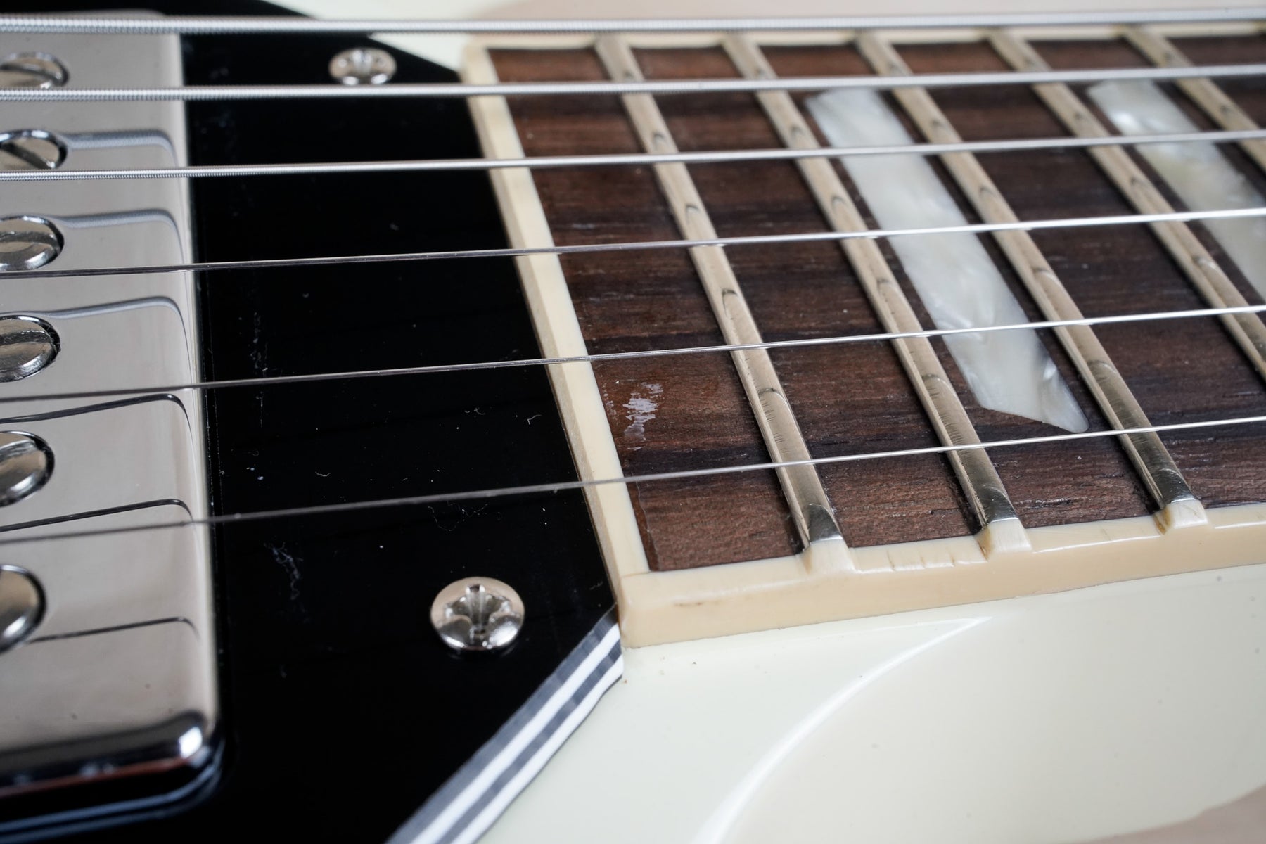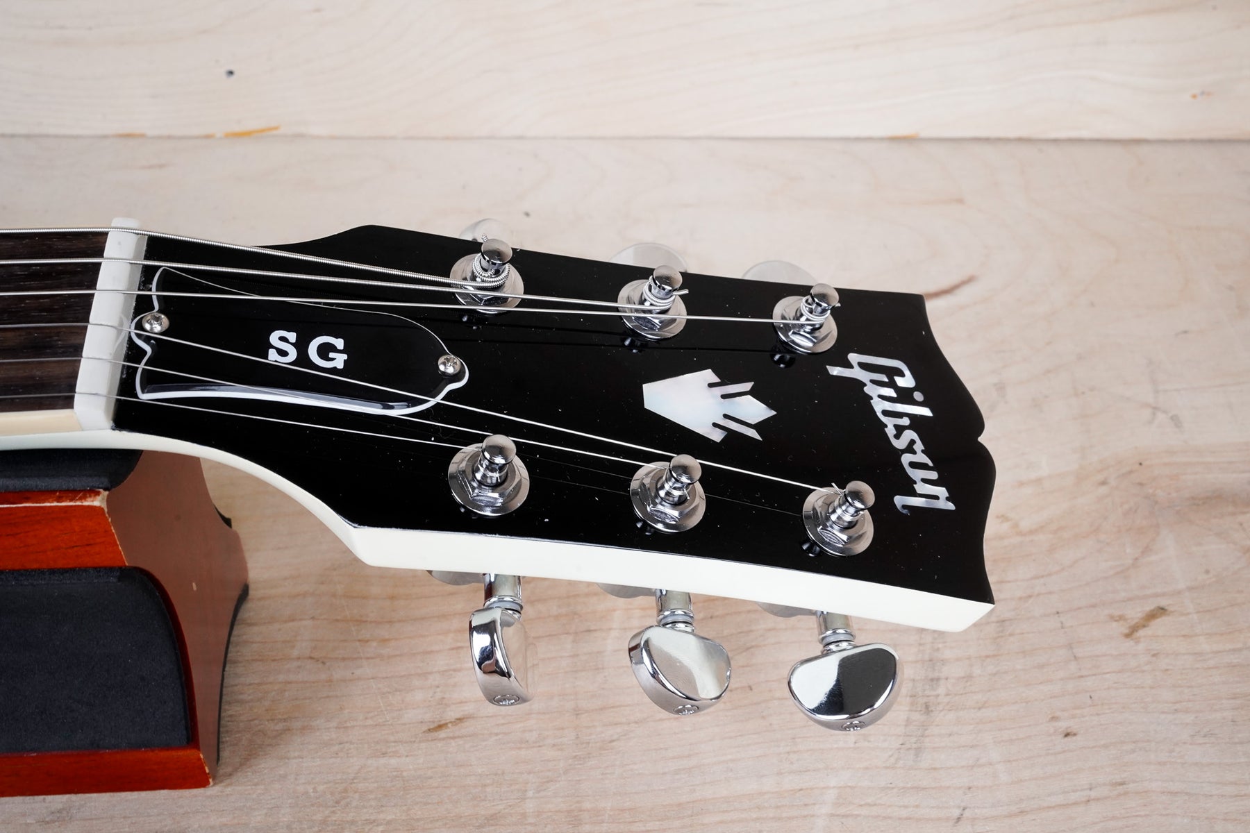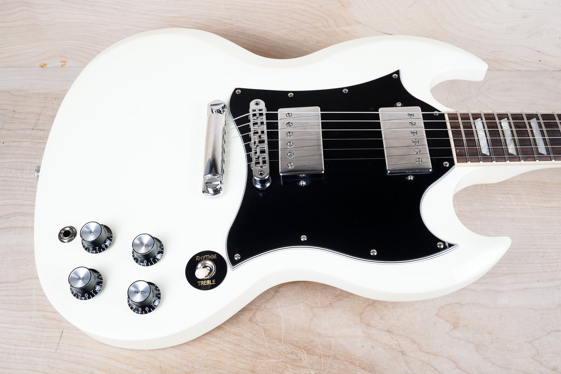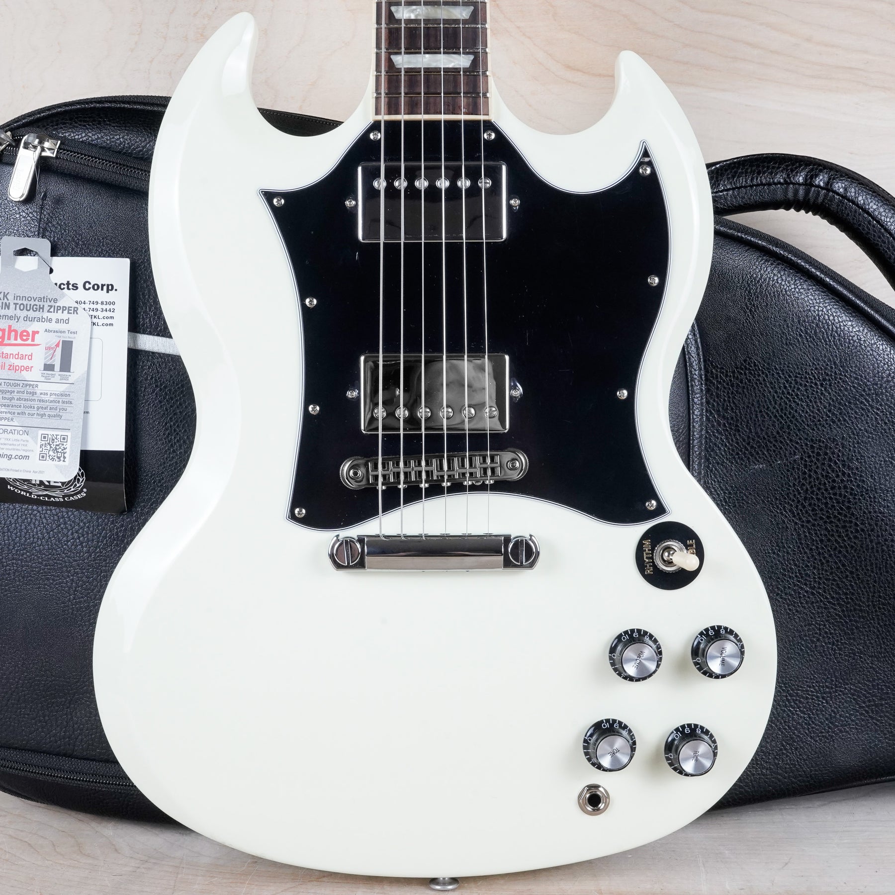 This 2024 Gibson SG Standard plays and sounds great! The guitar is equipped with a set of Gibson 490R/T humbuckers and the classic white finish looks great.