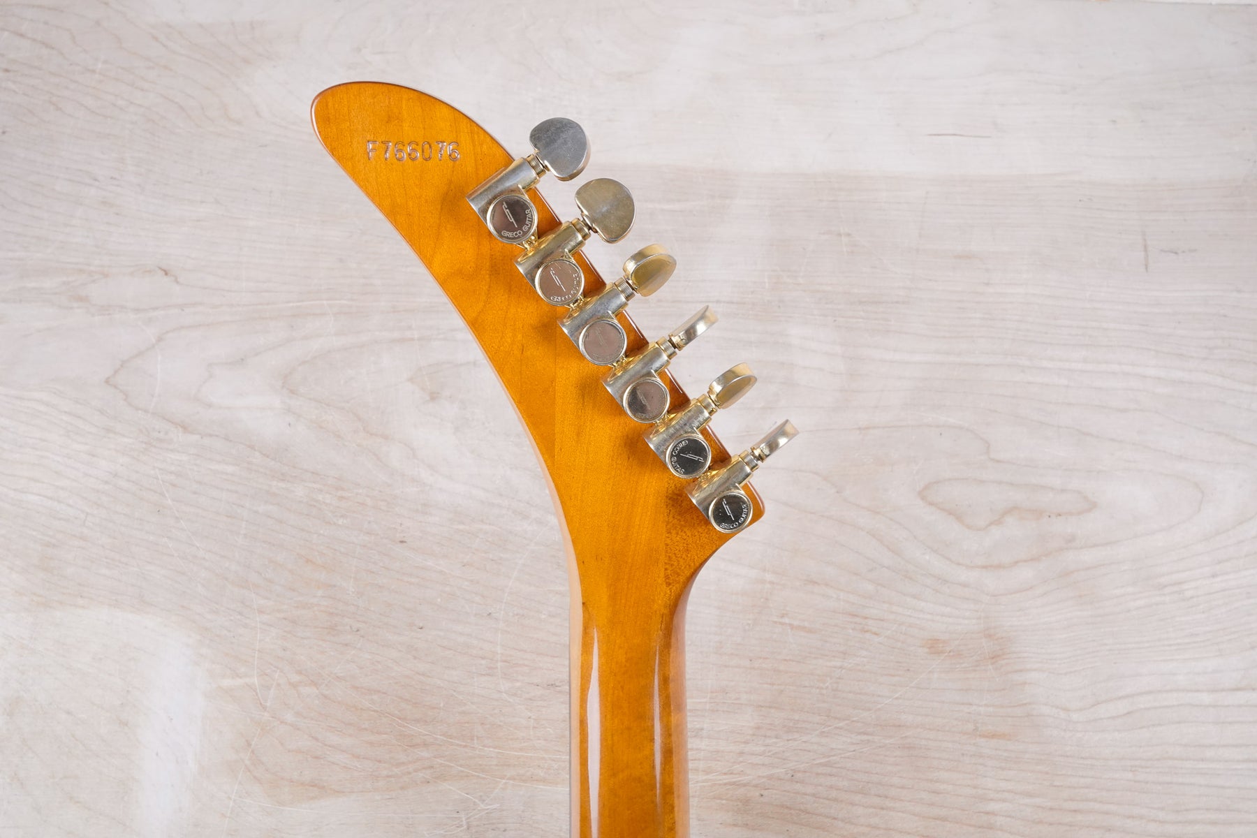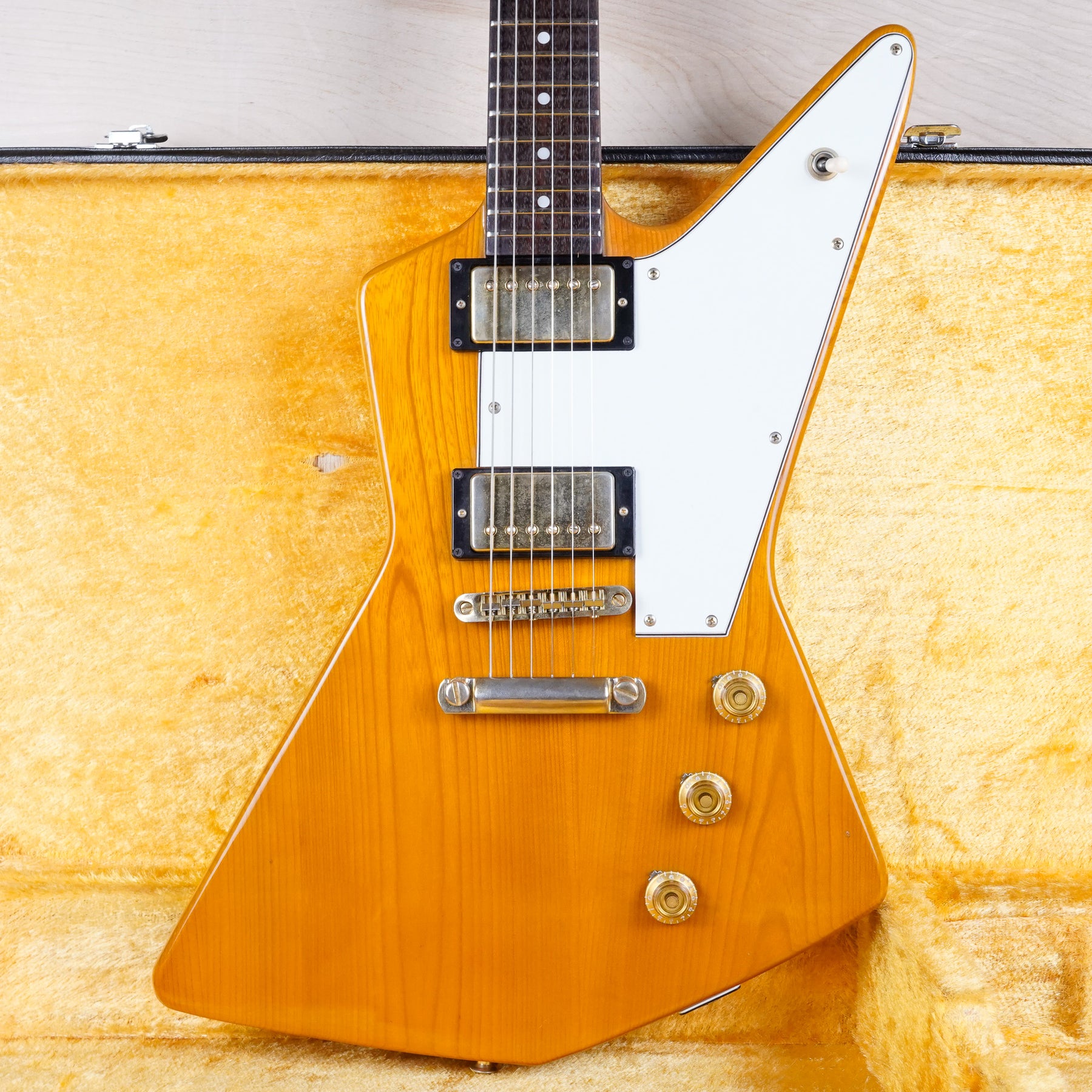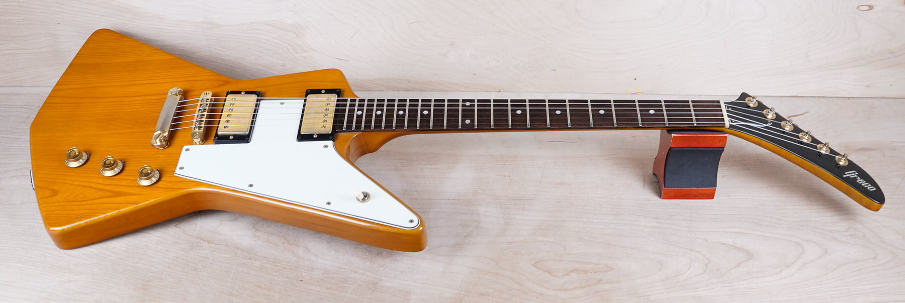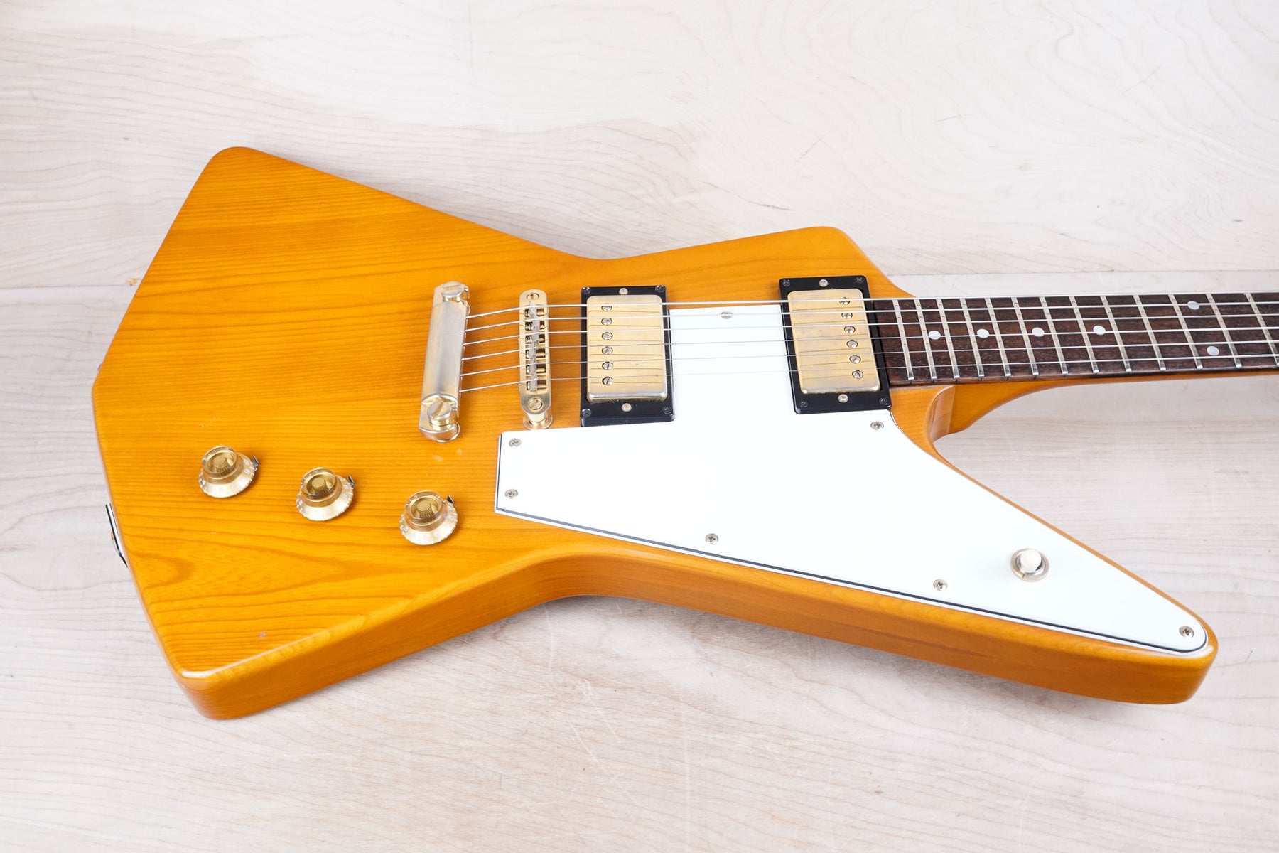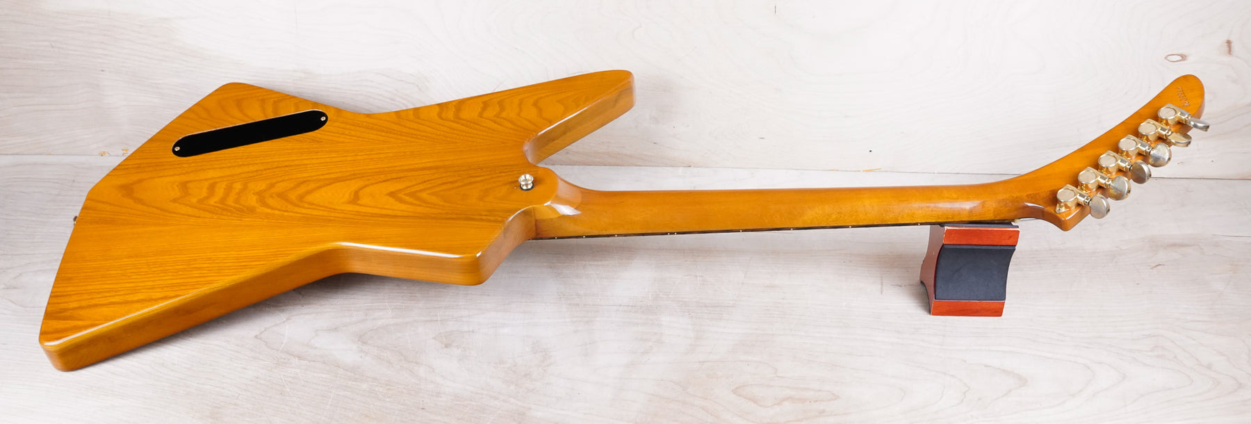 This is a super cool vintage Greco EX800C "Clapton Cut" Explorer type that plays and sounds great! This example has a slim '60s profile and the natural finish and gold hardware make for a nice pairing. The factory-equipped "Super 70" pickups sound fantastic.