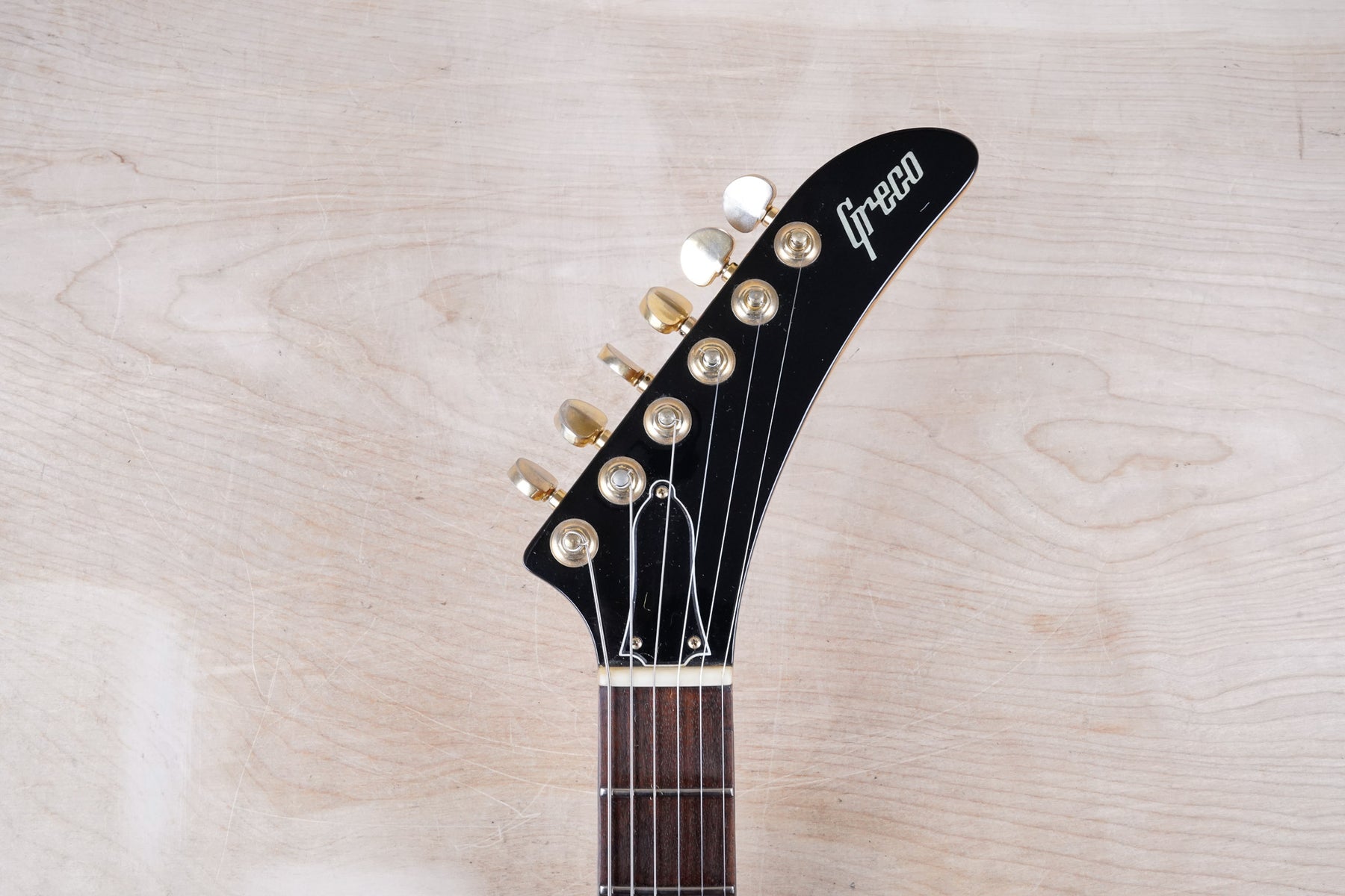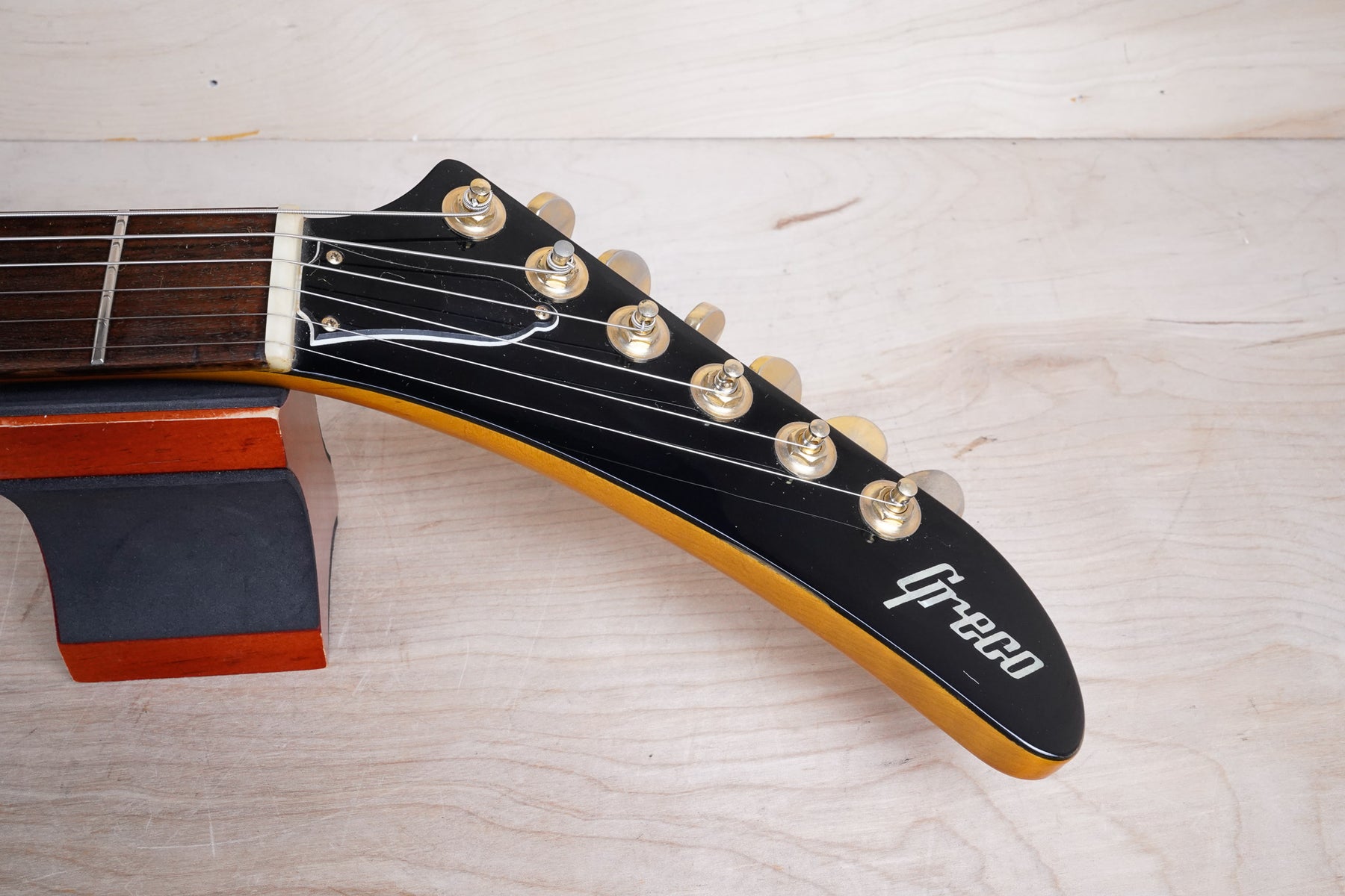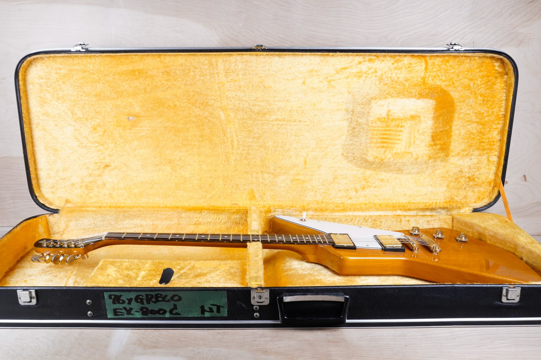 The Greco EX800 guitars have risen to fame as they were the Japan-Domestic market version of the iconic Ibanez Destroyer 2459. The American market got the Ibanez branded version, while those made for the Japanese market were branded as the Greco. This "EX-800C" is a factory "Clapton Cut" variant, cutting down the Explorer shape as shown. This iteration of the EX800 is quite rare, and they rarely come up for sale.