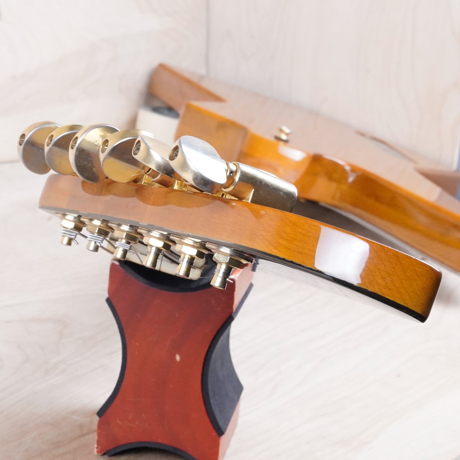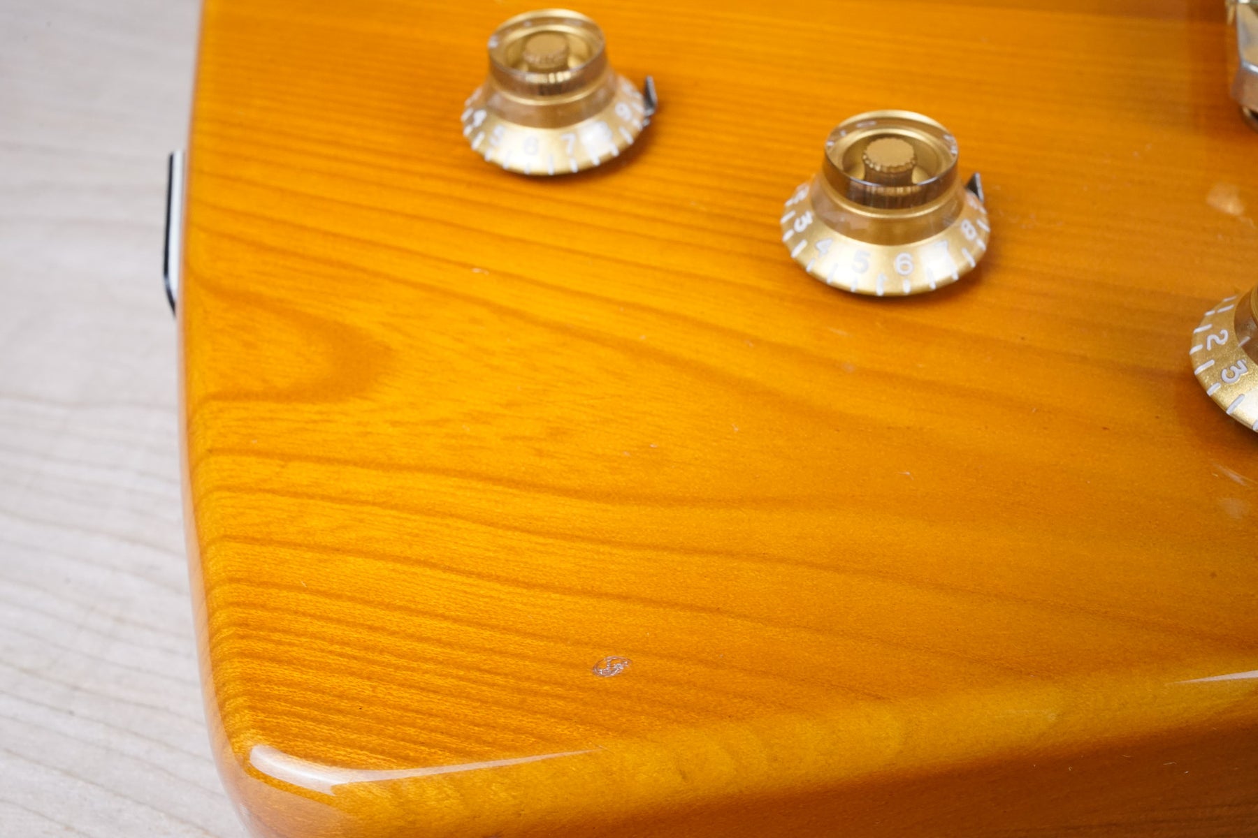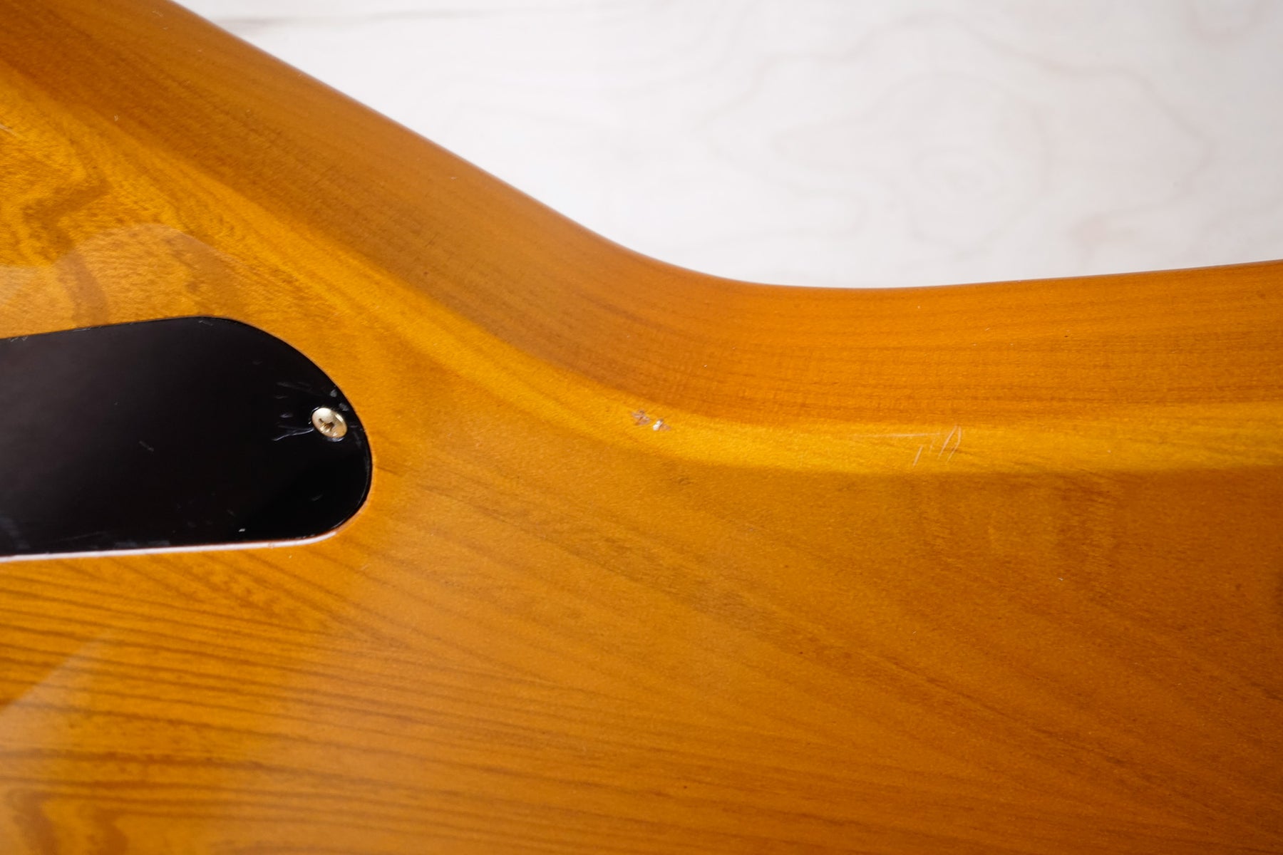 This guitar does show some cosmetic wear from over the years that includes various surface scratches, scuffs, and dents throughout the body with additional small dings along the back of the neck and headstock. The gold hardware also shows normal tarnishing from over time. Overall the guitar is in really nice shape for its age! The frets play great, and are in nice shape for their age, displaying normal play wear, but they have plenty of life left. All of the electronics work as they should.