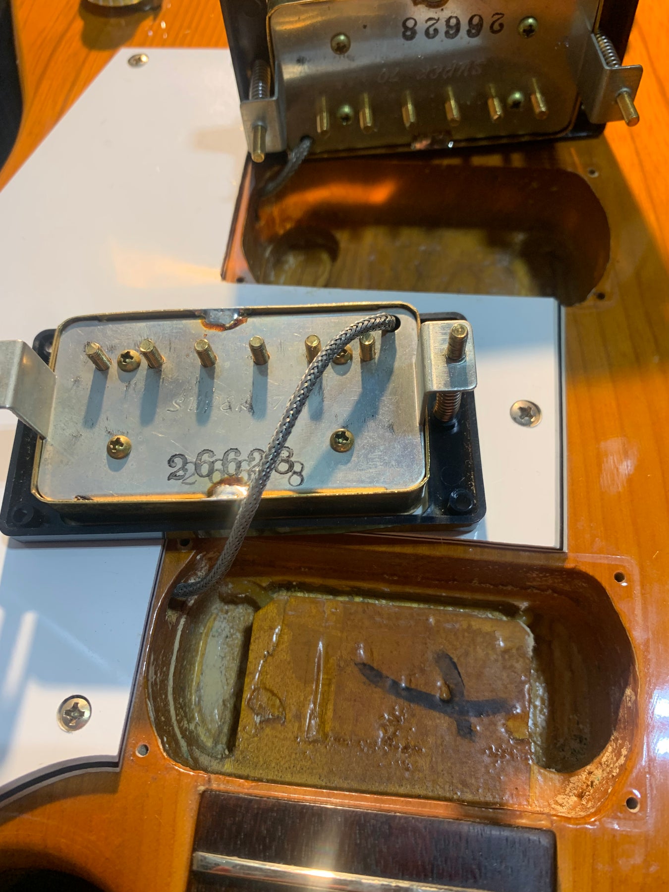 The neck pickup ring is a later replacement, This guitar is otherwise all original.