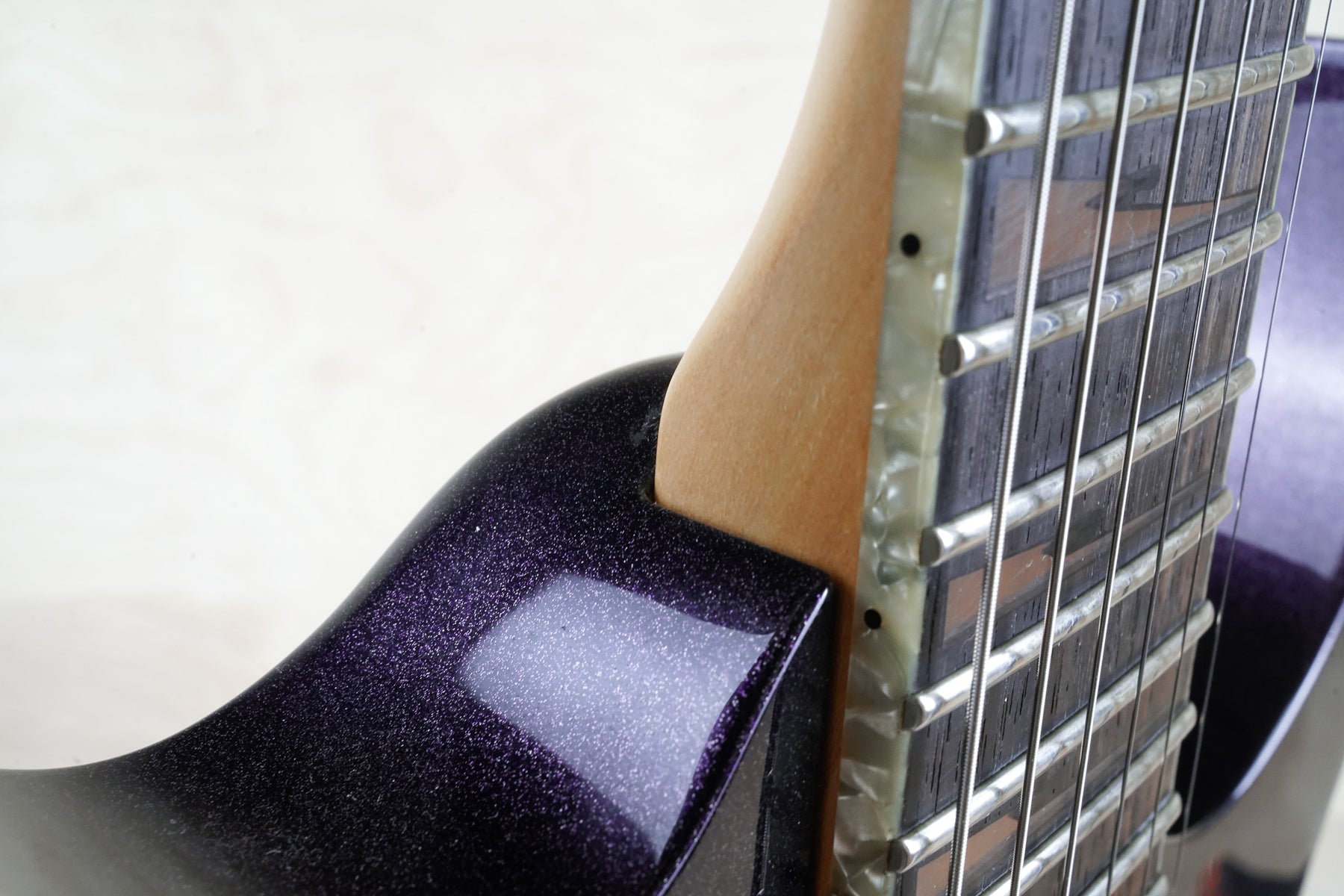 This guitar does show some cosmetic wear from over the years that includes light surface scratches and scuffs throughout the body with additional minor scuffs on the headstock. The pearl binding around the neck has yellowed from over time and the hardware shows normal tarnishing. The frets play great with plenty of life left, exhibiting only normal play wear. and the electronics work as they should.