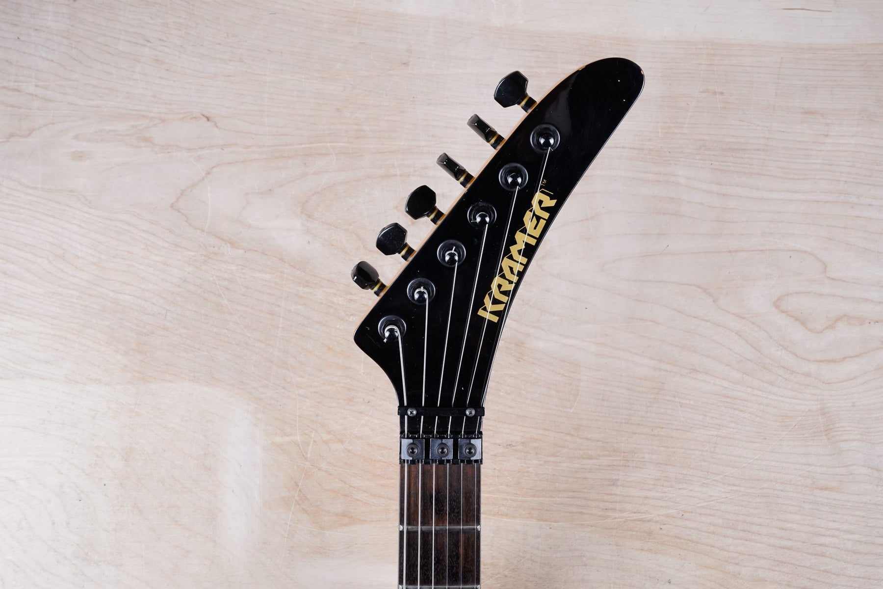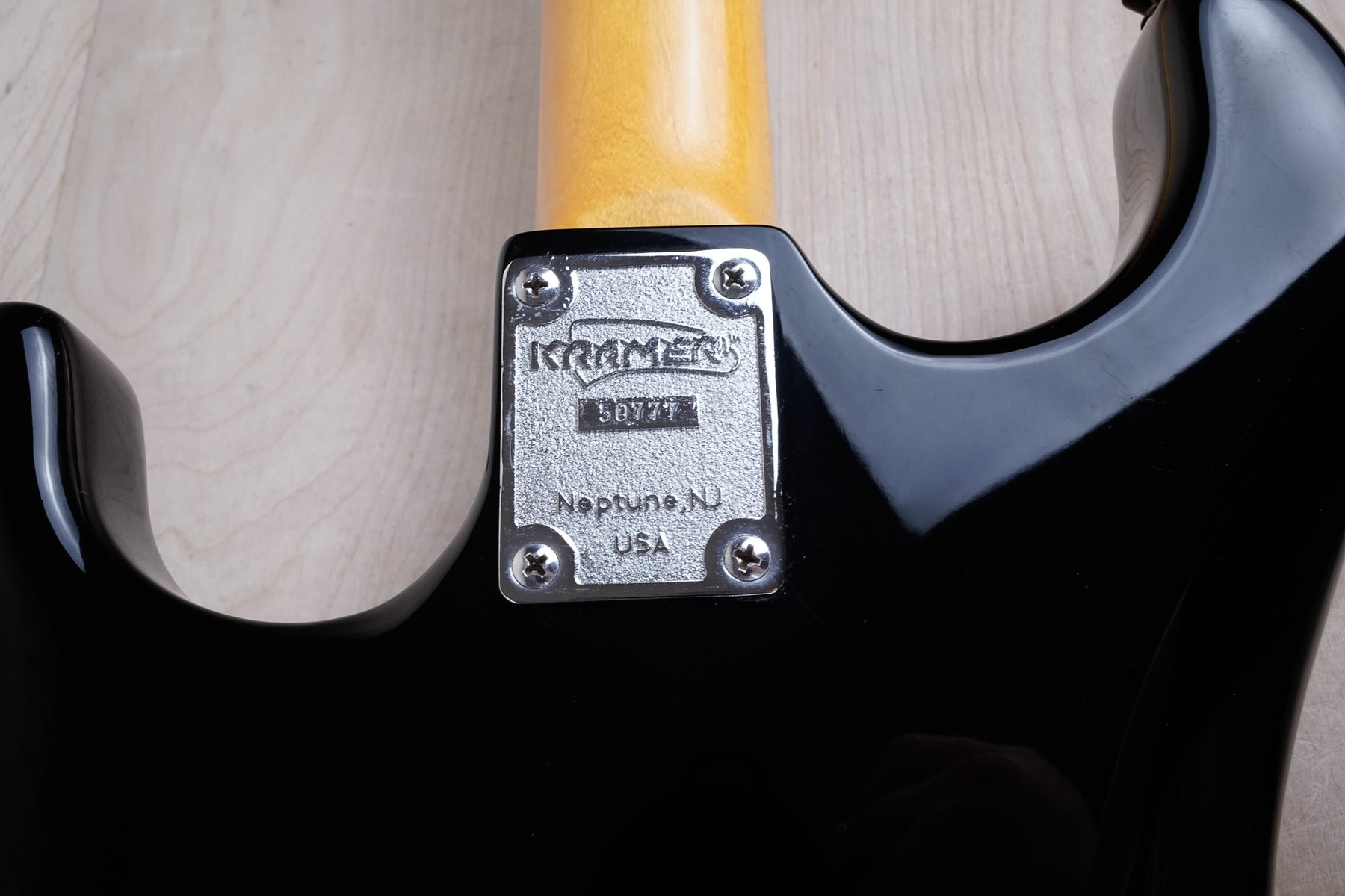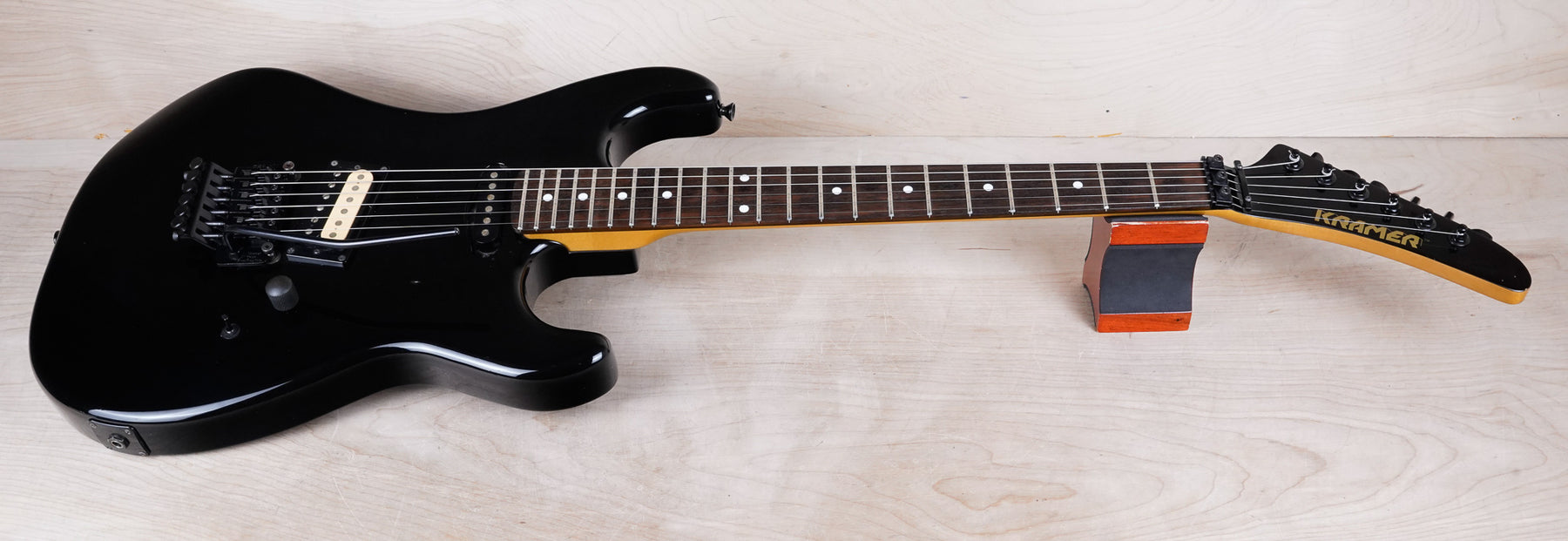 While it's hard to determine the exact year of manufacture but this one is estimated to be from the 1980s based on the headstock shape and Kramer logo. The guitar features an SH pickup configuration, single volume knob, and a 3-way mini switch. The DC Resistance on each pickup currently read 8.4k in the bridge and 5.8k in the neck position.