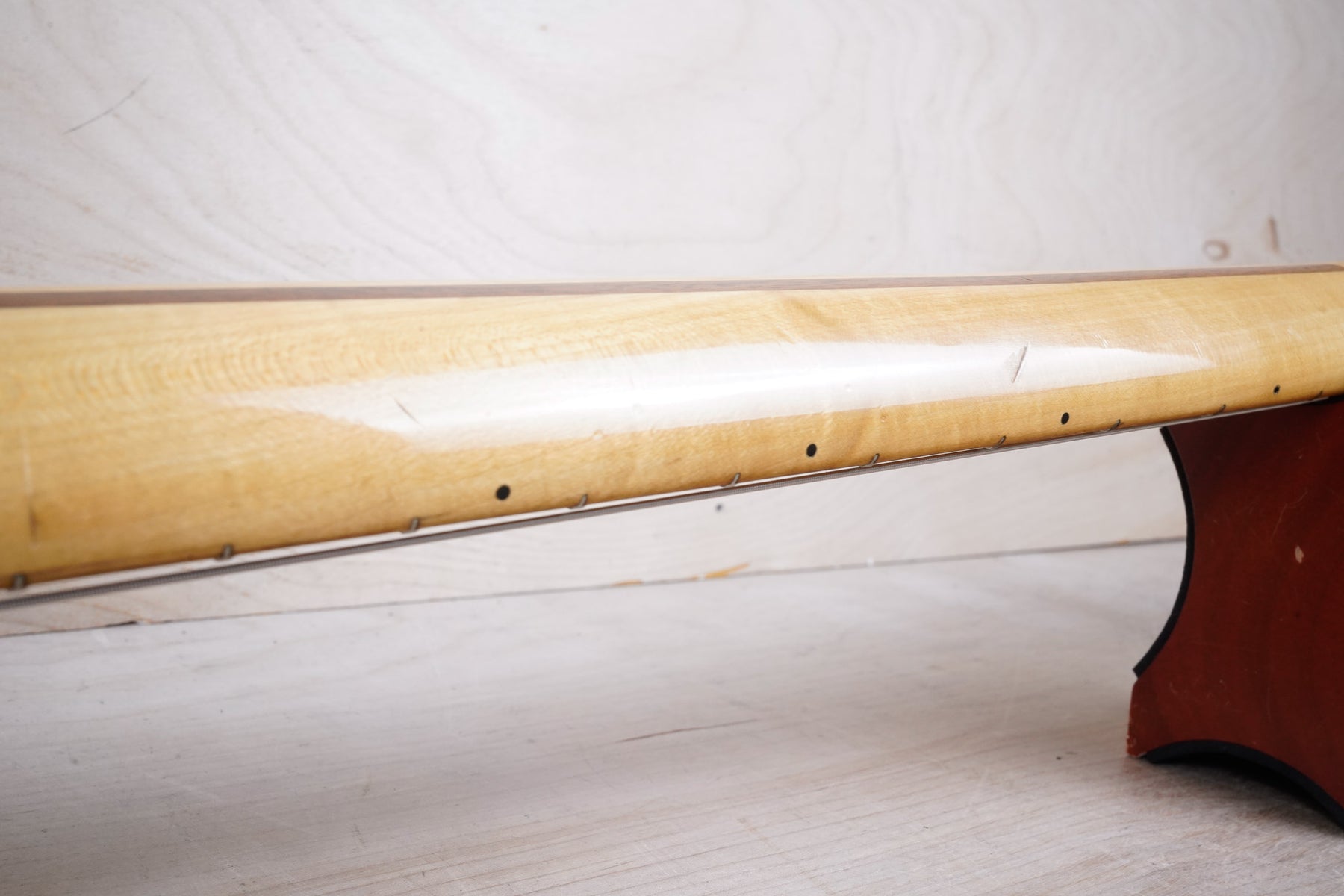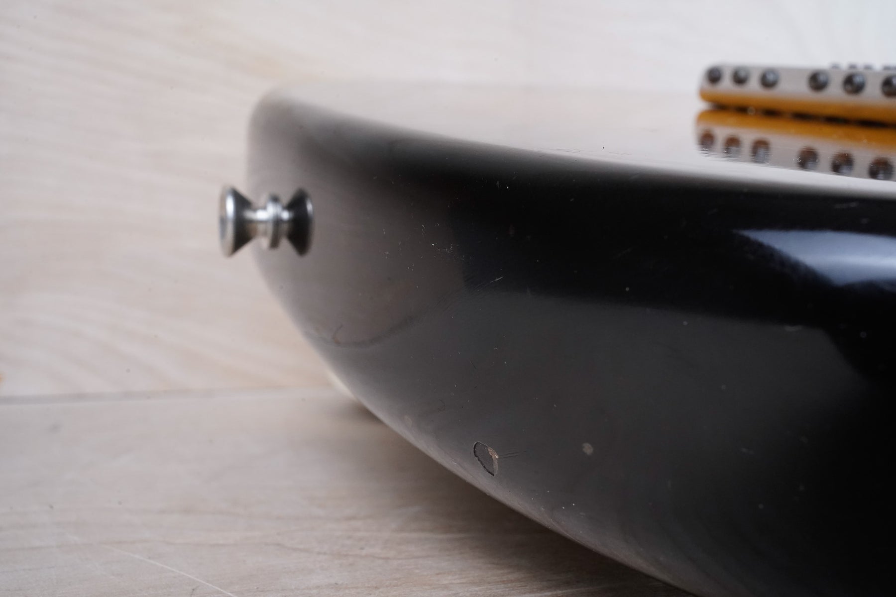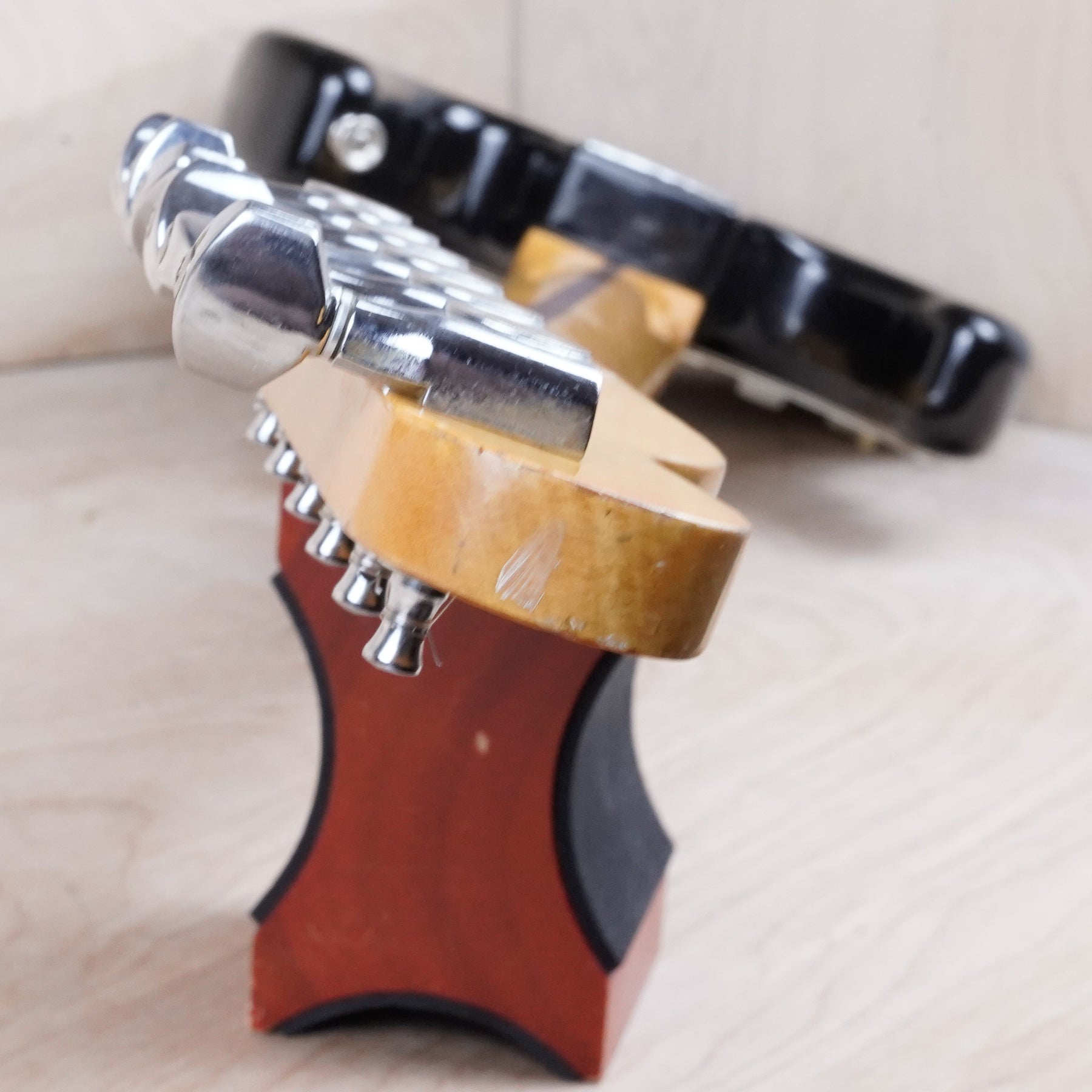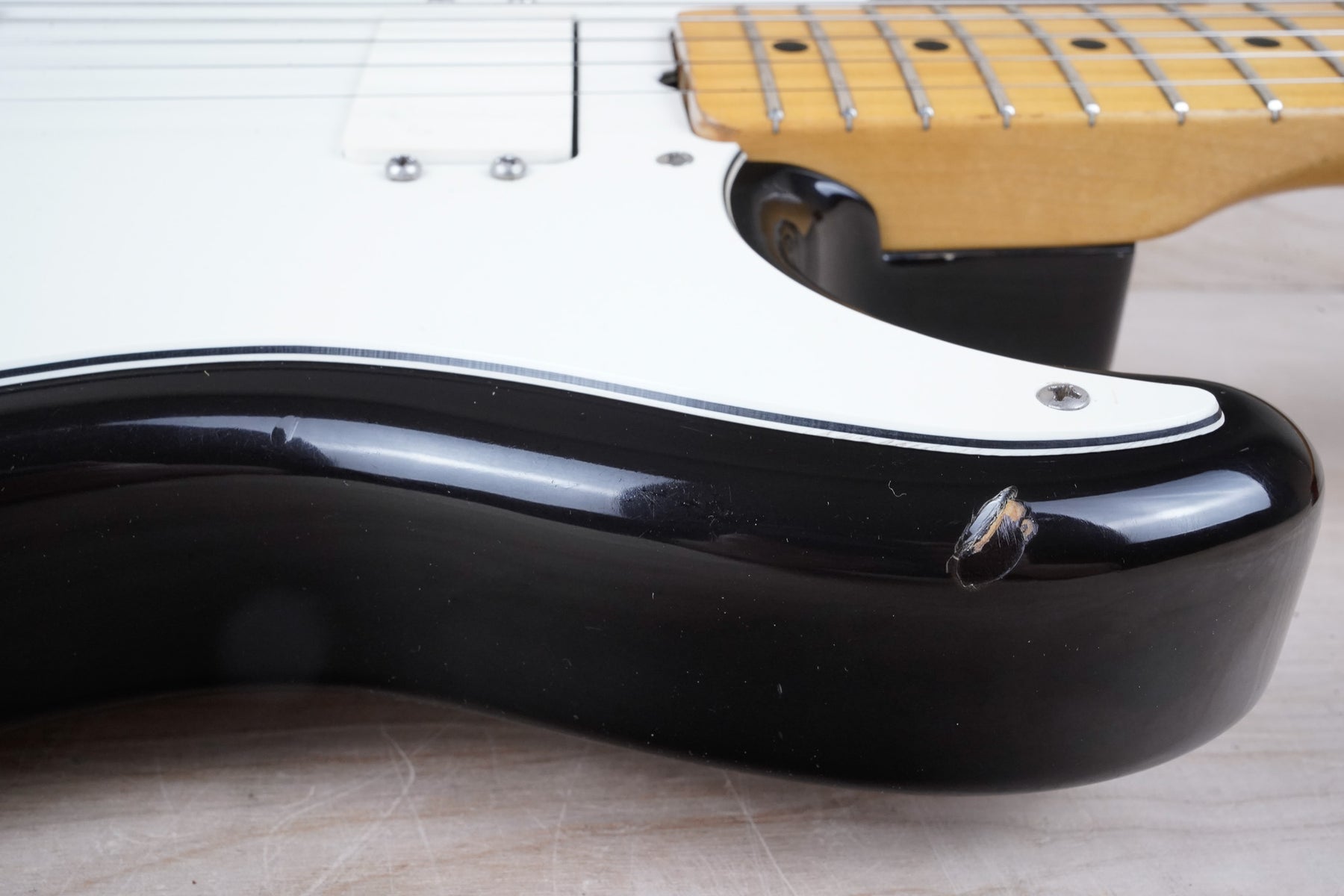 This guitar does show some cosmetic wear from over the years that includes various surface scratches, scuffs, dents, and finish chips throughout the body with additional dings along the back of the neck and headstock. The maple fretboard also shows some lacquer wear near the second fret. The frets are used but otherwise still play great along the neck and the electronics work as they should.