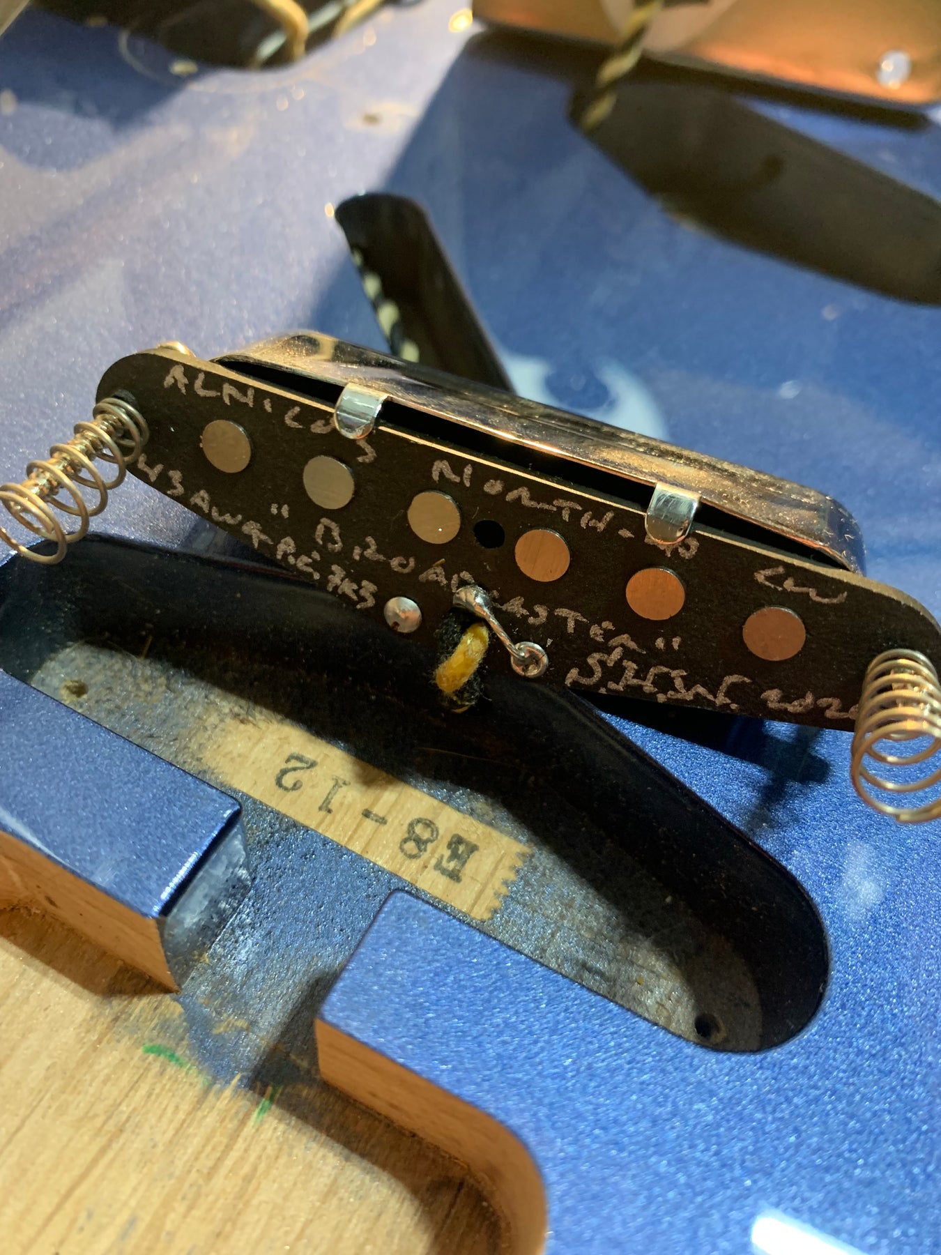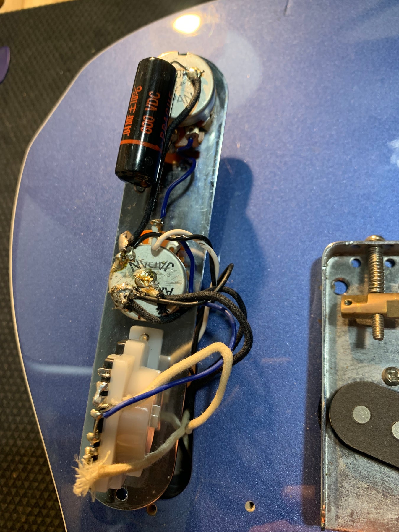 The pickups have been upgraded to set of Alnico 3 "Broadcaster" pickups. There is no brand listed on the pickups. The capacitor is also a replacement. The bridge saddles have been replaced. This guitar is otherwise original.