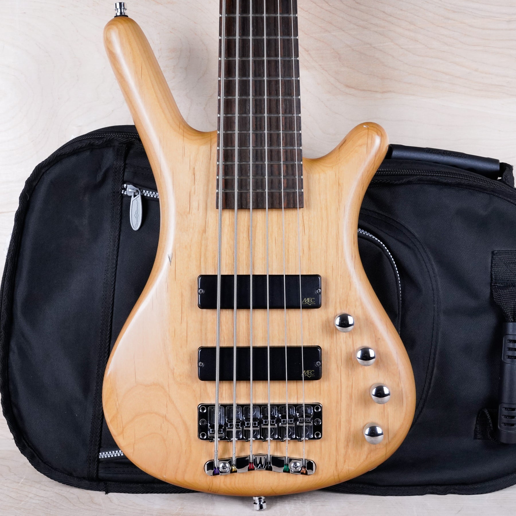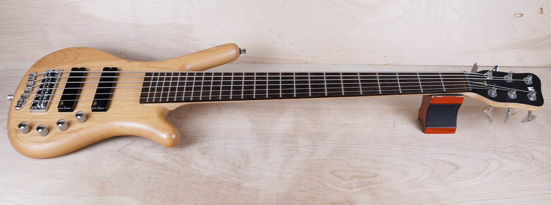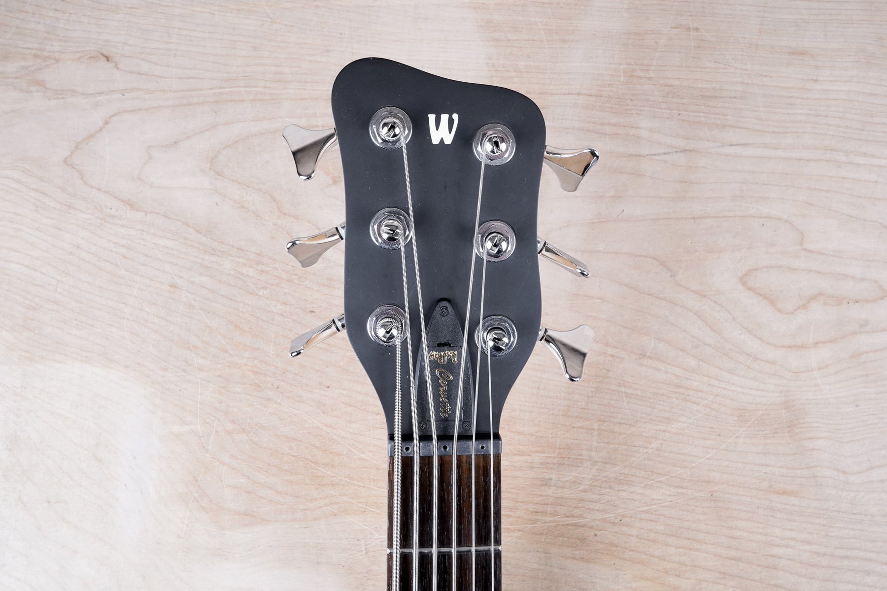 This Warwick 6-String RockBass Corvette plays and sounds great! The bass is comprised of an alder body, maple neck, and Wenge fretboard with a 47" radius. The electronics include active J-style pickups with controls to dial in balance, treble, and bass.