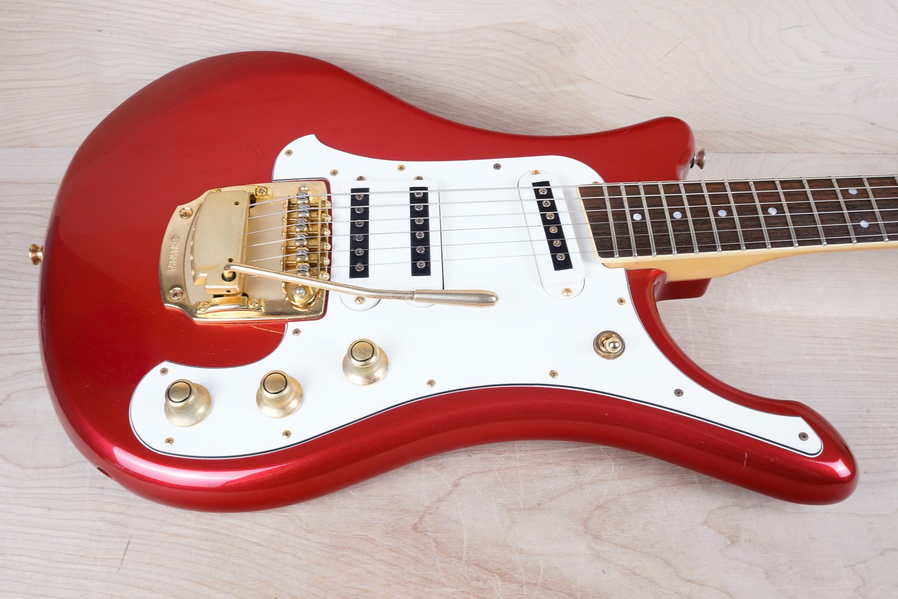 This Yamaha Flying Samurai SGV-700 plays and sounds great! This is a really cool reissue of the the 1960s Flying Samurai and are very hard to come by outside of Japan.