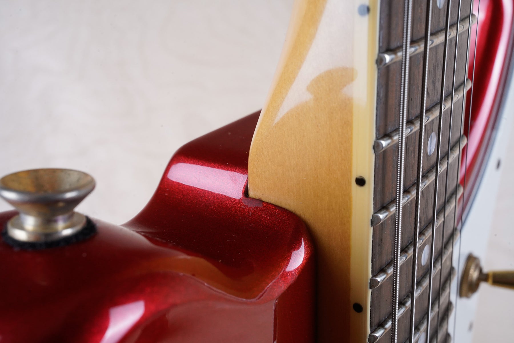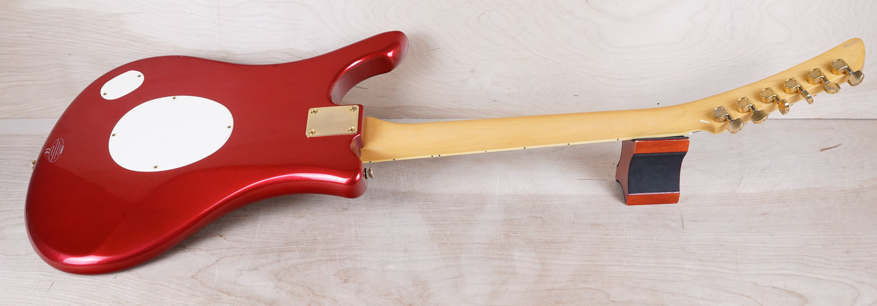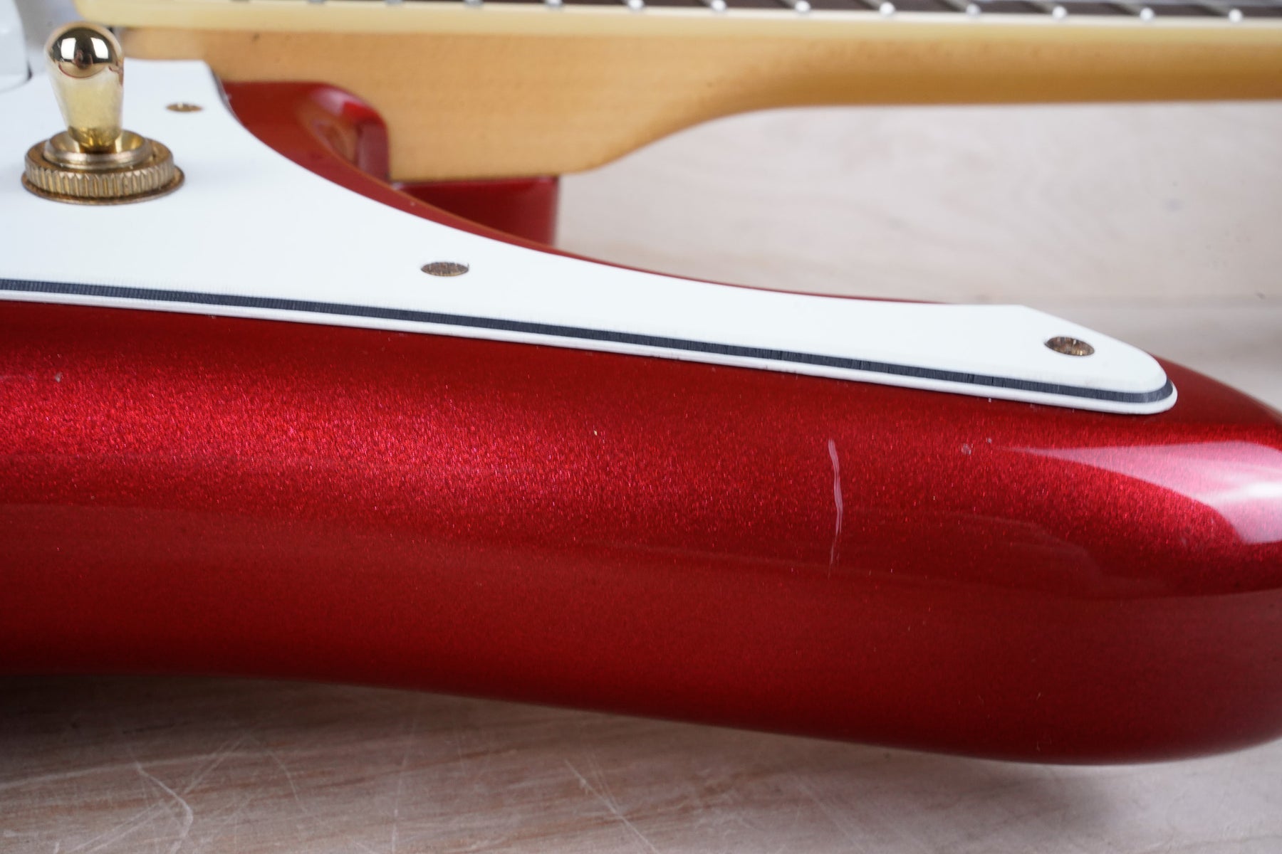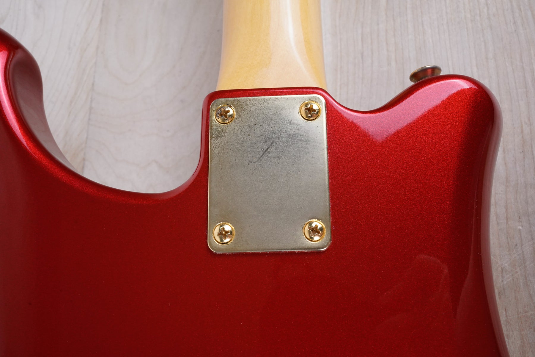 This guitar does show some cosmetic wear from over the years that includes various surface scratches and light scuffs throughout the body. The gold hardware shows normal tarnishing and the binding the neck has also aged from over time. The frets in nice shape ands play great, exhibiting only light play wear and the electronics work as they should.