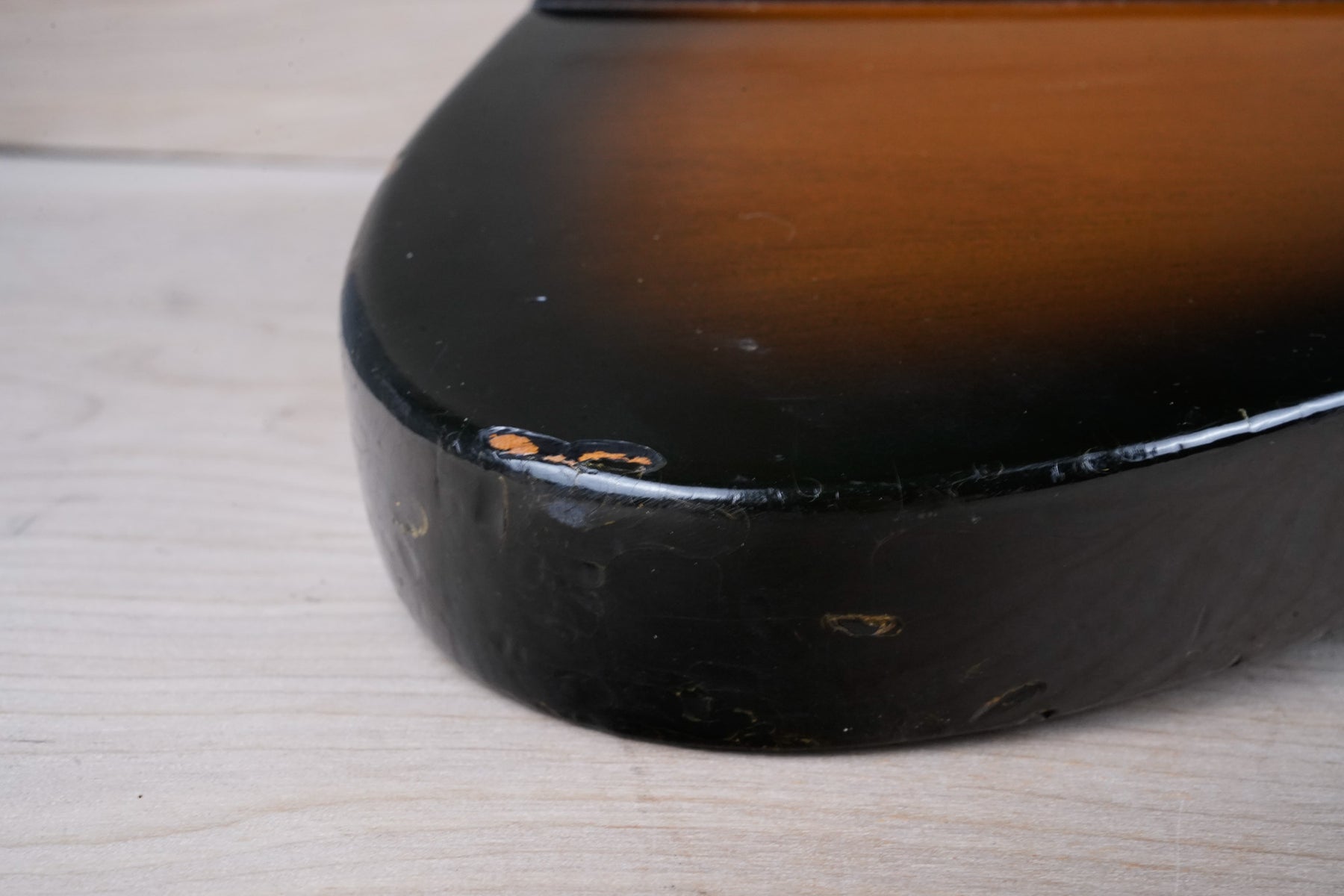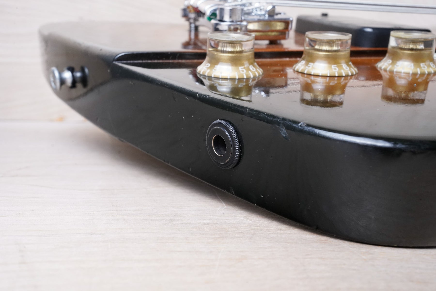 This bass does show some cosmetic wear from over the years that includes various surface scratches, scuffs, dents, and finish chips throughout the body with additional with additional minor dings along the back of the neck and headstock. The finish on the back of the headstock also shows some light checking and the hardware has normal light tarnishing. The white pickguard has also yellowed from over time. The frets are used but otherwise still play great along the neck and the electronics work as they should.