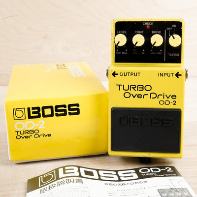 Boss OD-2 Turbo OverDrive (Black Label) 1991 Yellow ACA w/ Box, Manual