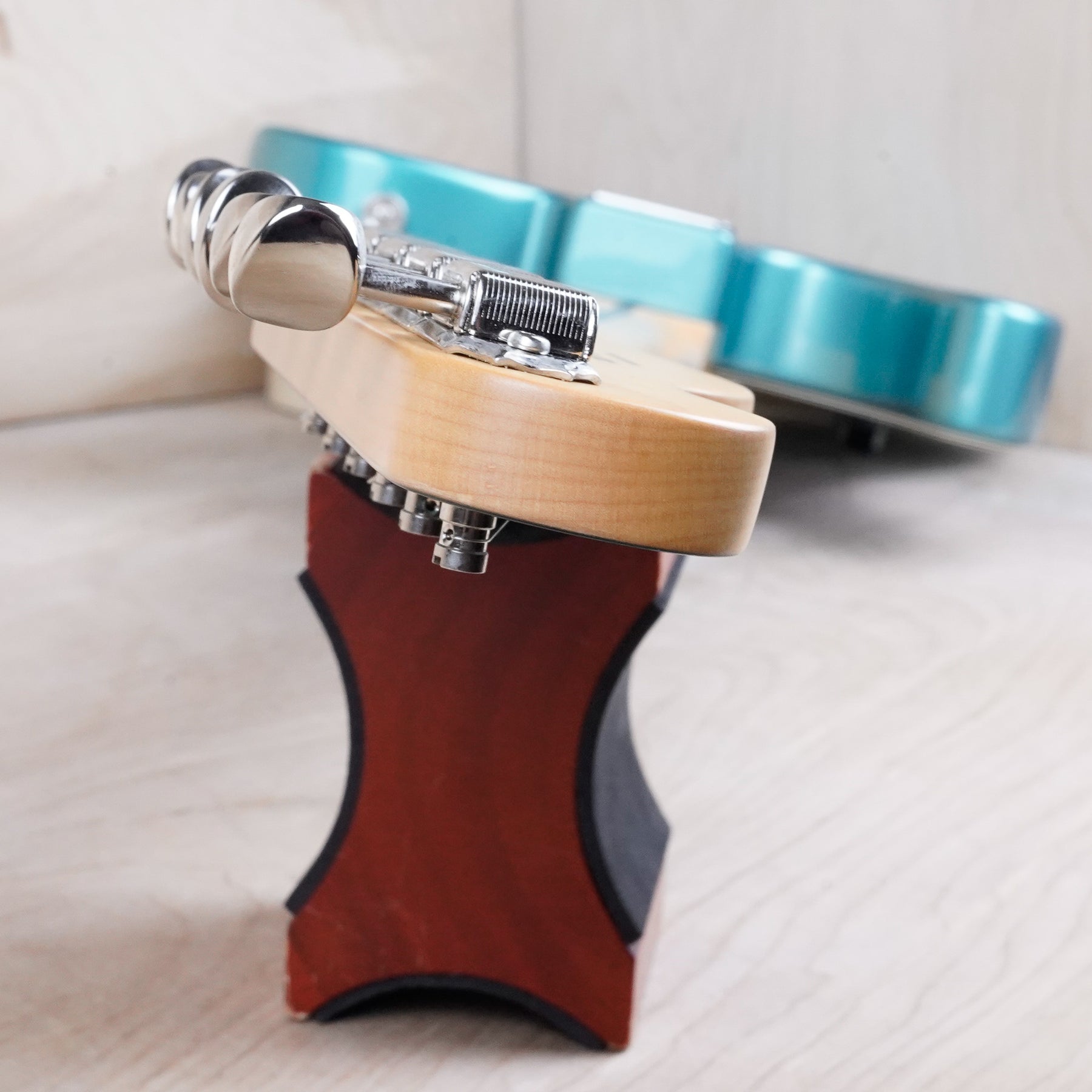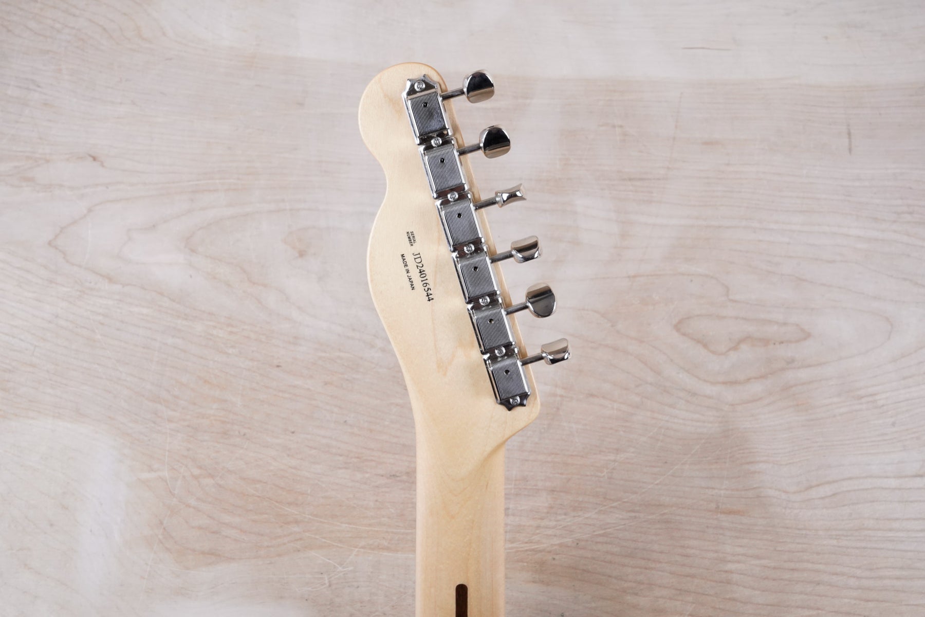 This made in Japan FSR Hybrid II Telecaster plays and sounds great! The guitar is comprised of an alder body, modern "C" shape maple neck with a satin urethane finish, and a dark rosewood fretboard. The Teal Green Metallic finish with matching headstock looks great!