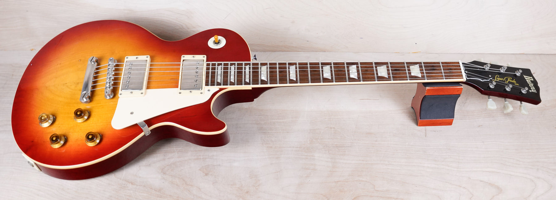 This vintage Burny Super Grade RLG-50 plays and sounds great! This is an excellent recreation of the iconic '59 Les Paul. This one dates to 1985 based on its pot codes, specs and catalog listings. The factory-equipped L8000 PAF style Humbuckers sound awesome!