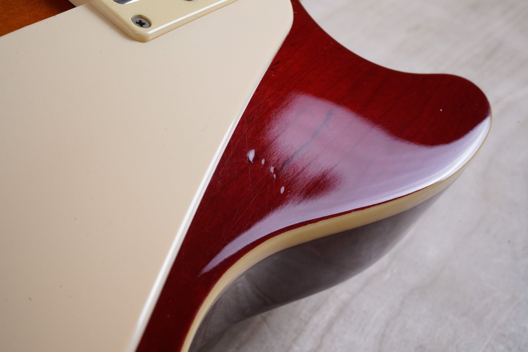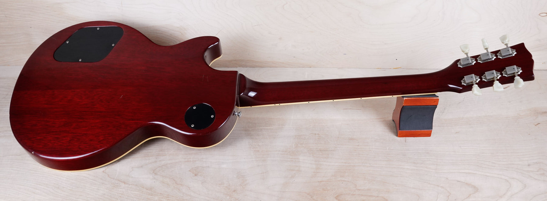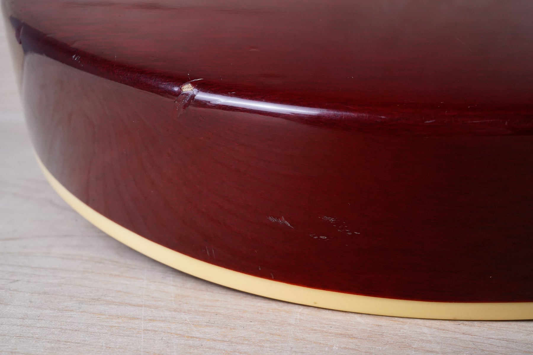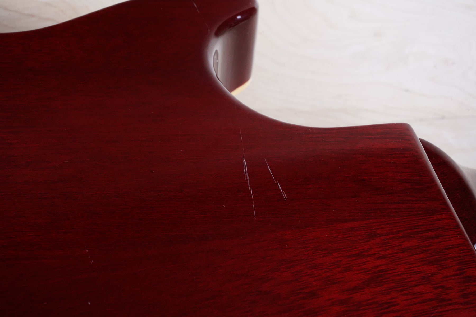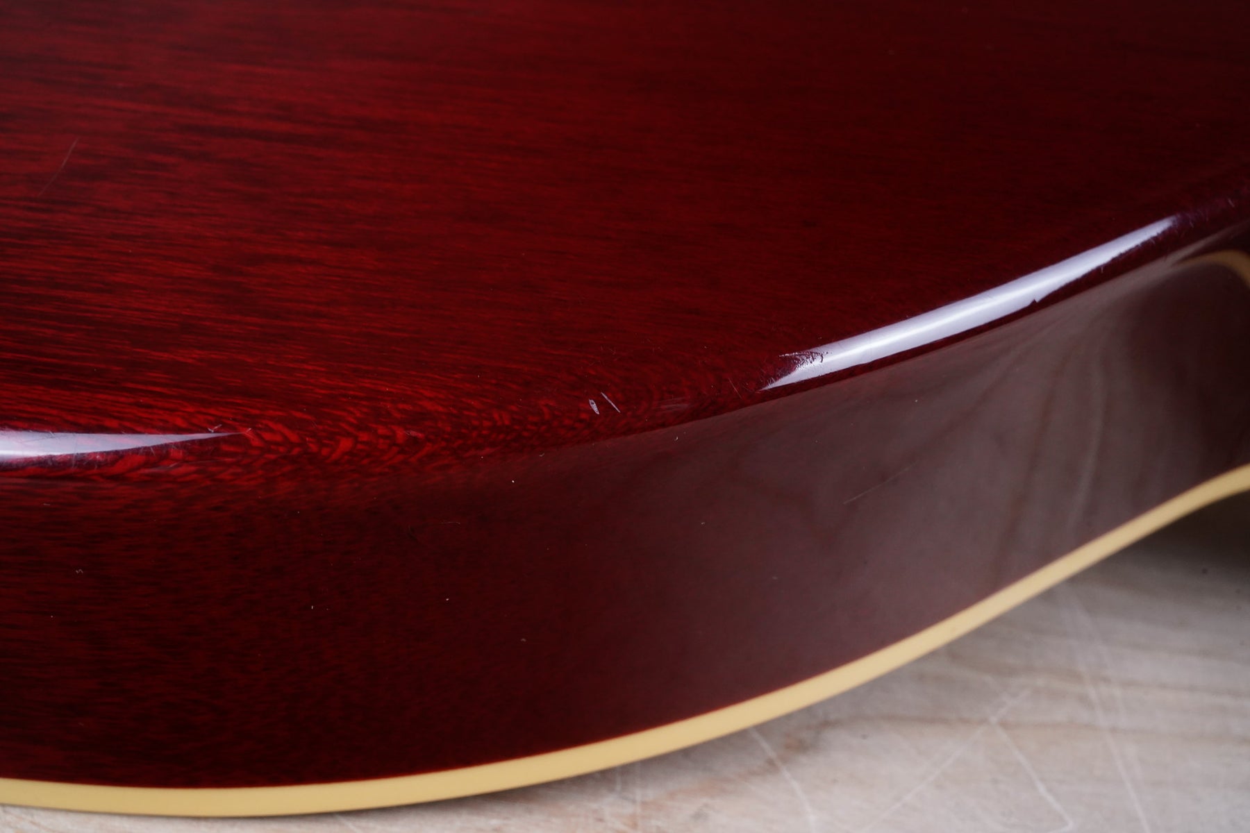 This guitar does show some cosmetic wear from over the years that includes various surface scratches, scuffs, and dents throughout the body with additional dings along the back of the neck and headstock. The binding and plastics have yellowed from over time and the hardware shows normal tarnishing. The frets are used but still play great and the electronics work as they should.