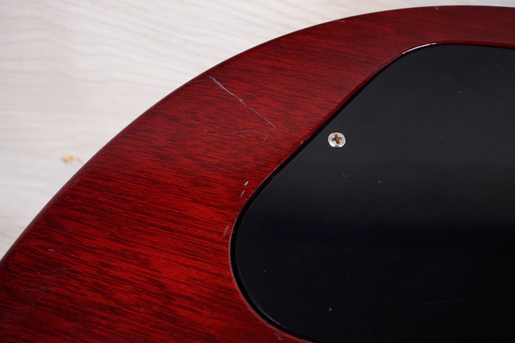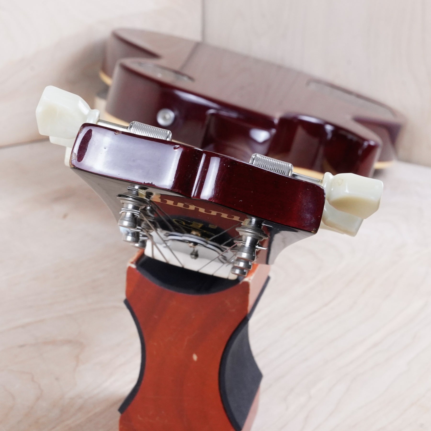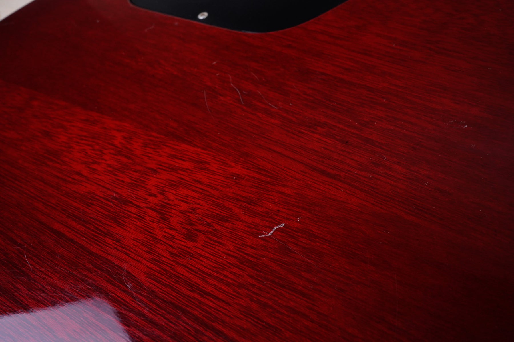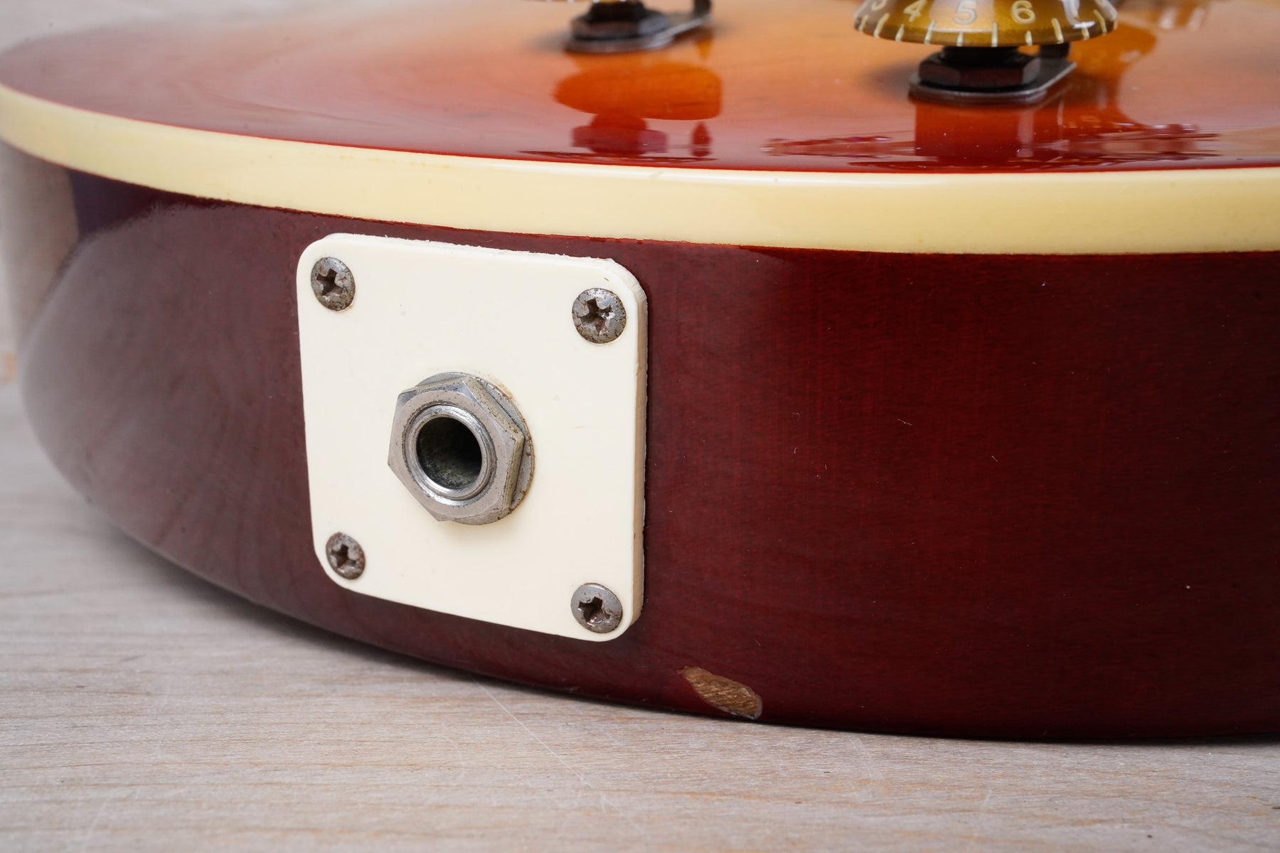 This guitar does show some cosmetic wear from over the years that includes various surface scratches, scuffs, and dents throughout the body with additional dings along the back of the neck and headstock. The binding and plastics have yellowed from over time and the hardware shows normal tarnishing. The frets are used but still play great and the electronics work as they should.
