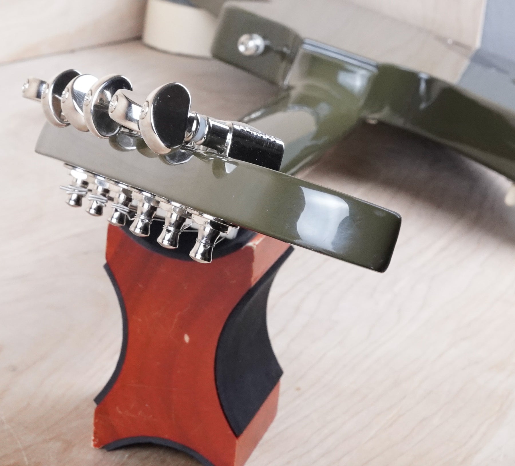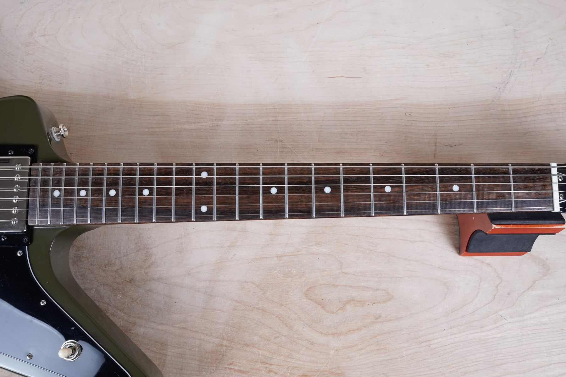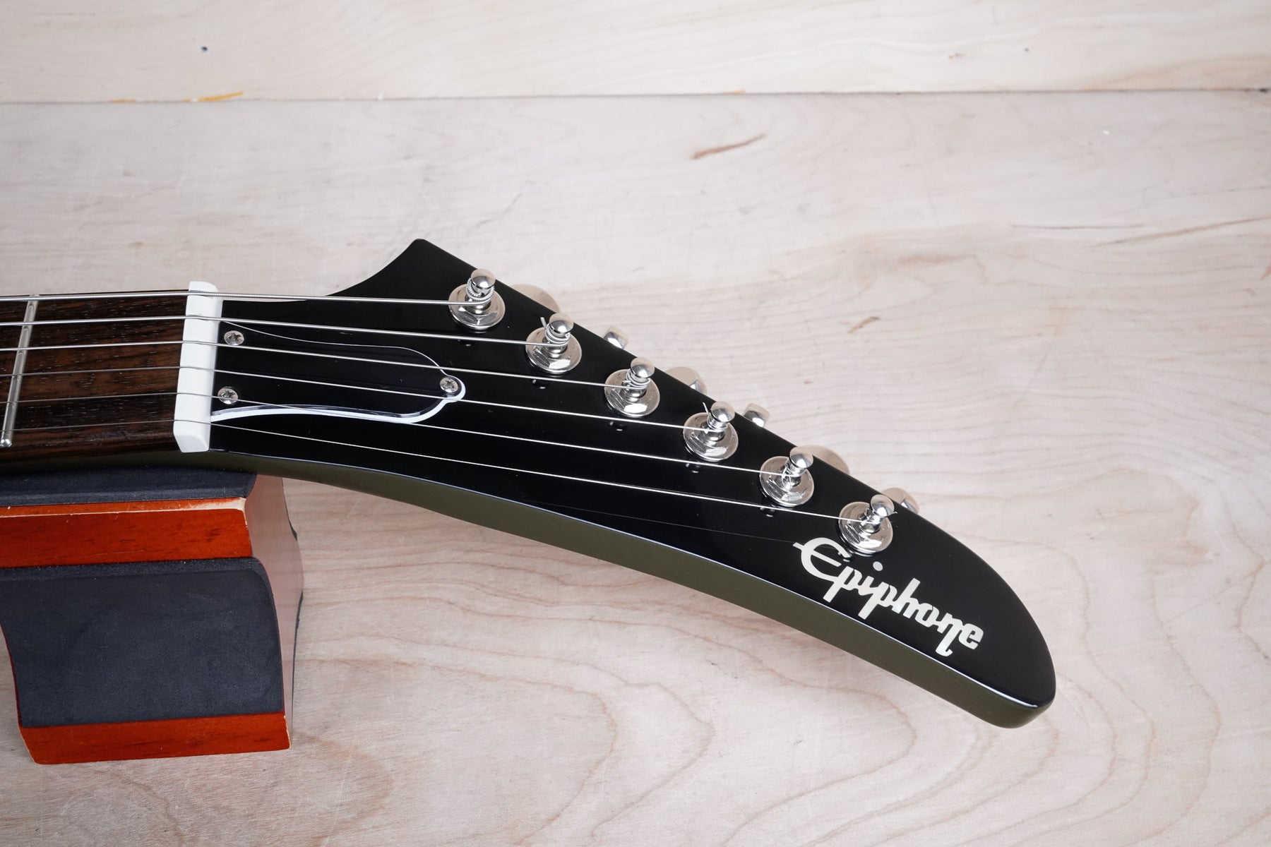 This is a super cool limited run Epiphone Explorer in Olive Drab Green! The guitar plays and sounds great. The neck has a comfortably slim "C" shape profile. Includes a great quality fitted Epiphone hard case.